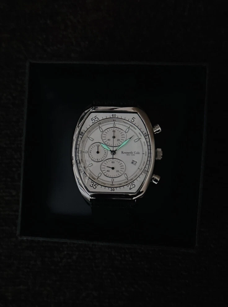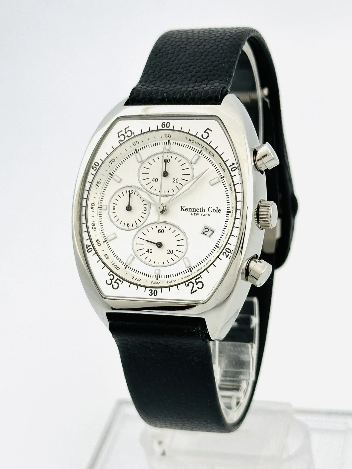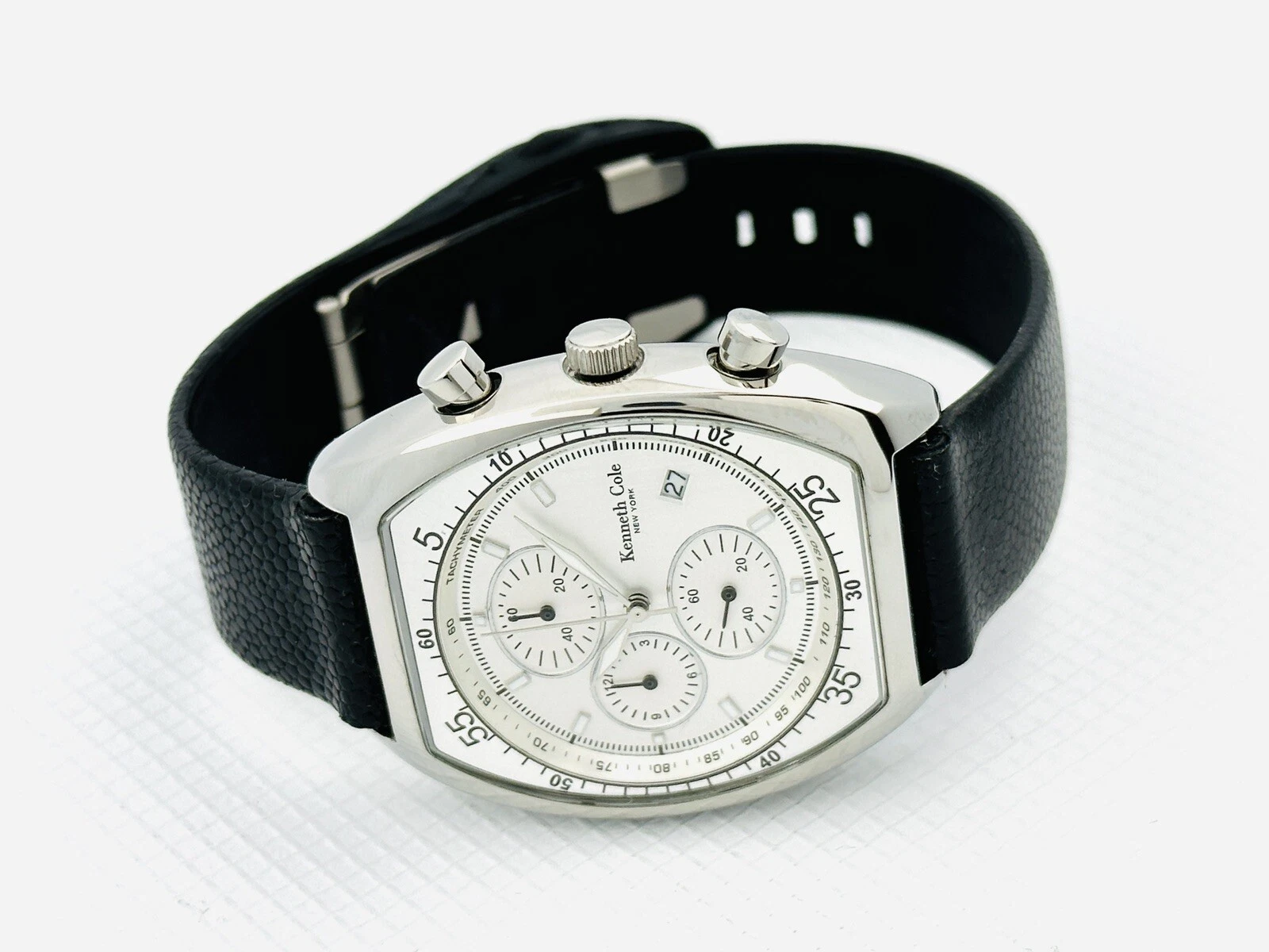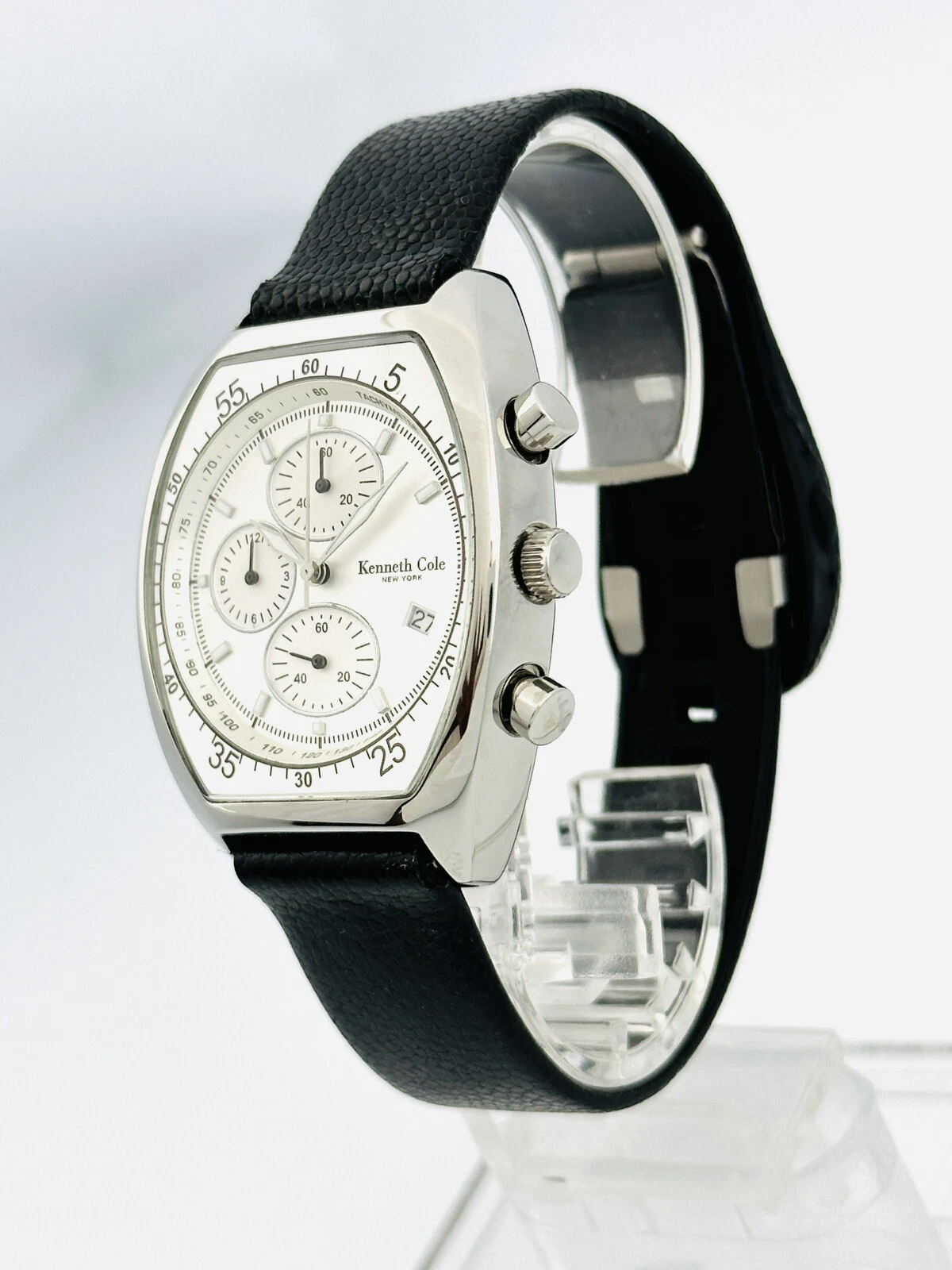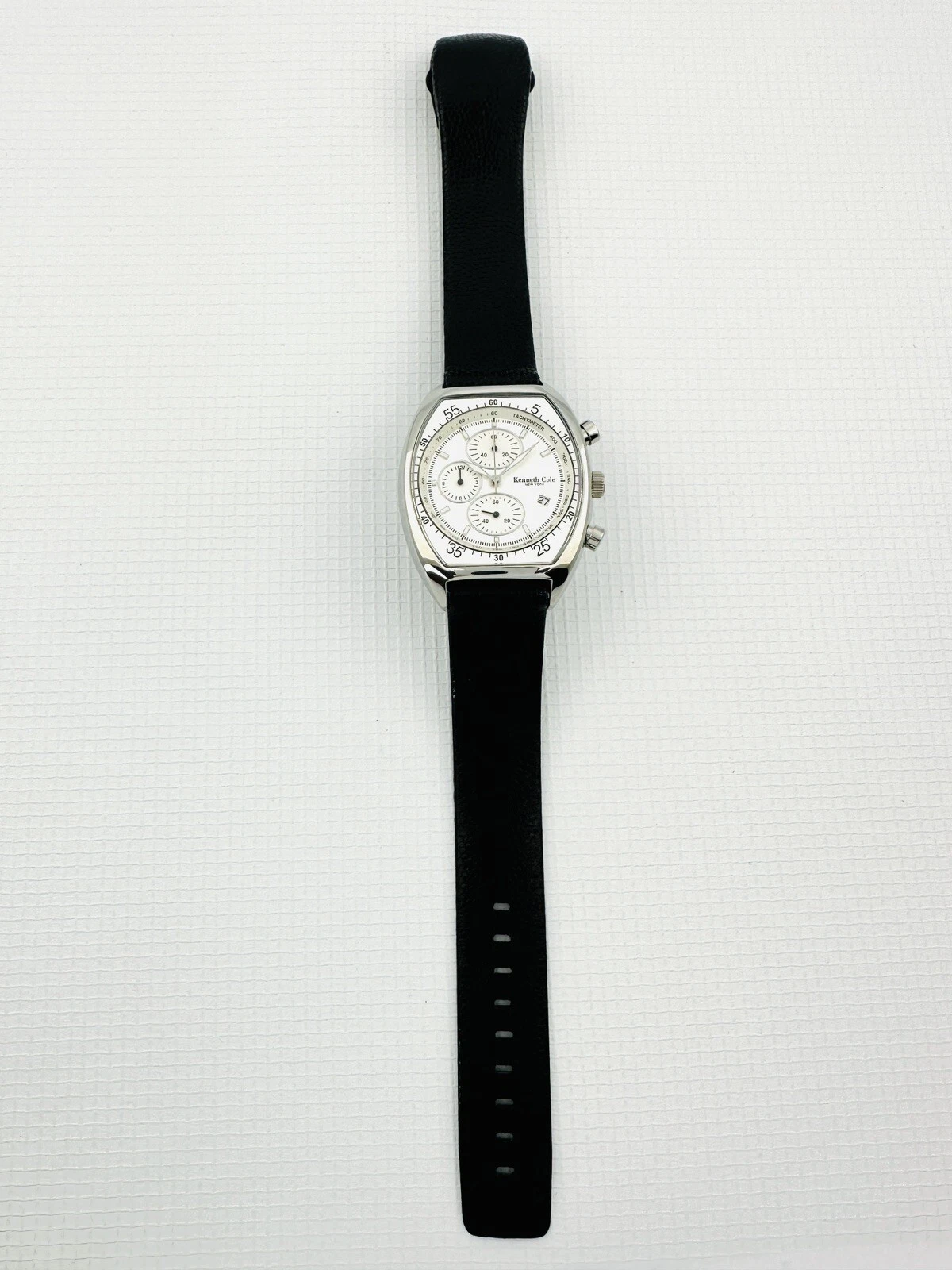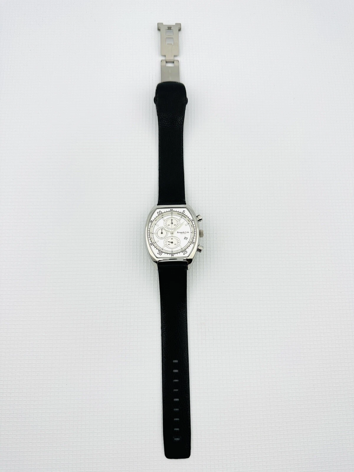 Kenneth Cole KC1207 Tonneau Barrel ChunkyCase Silver White Dial Black StrapWatch