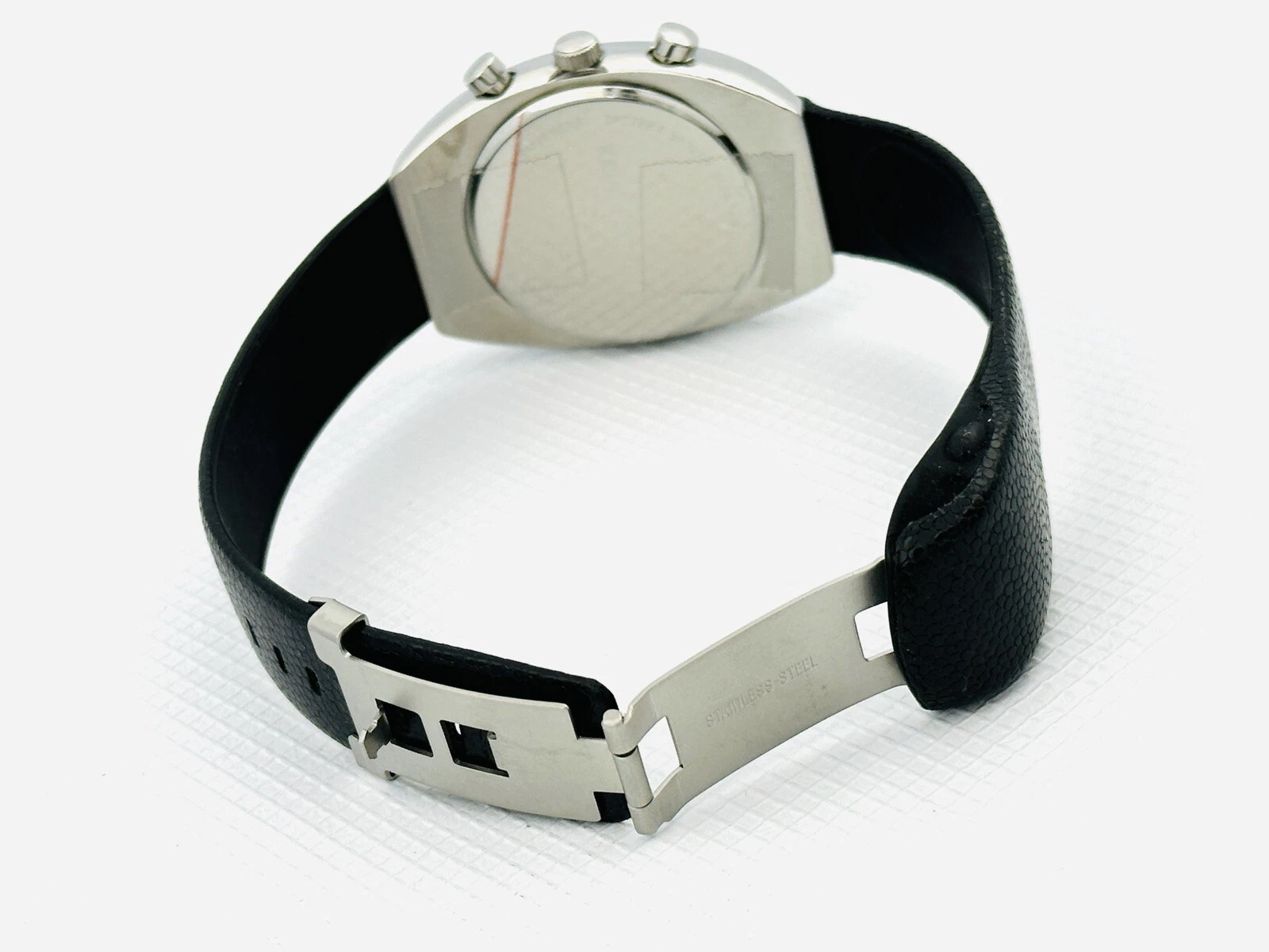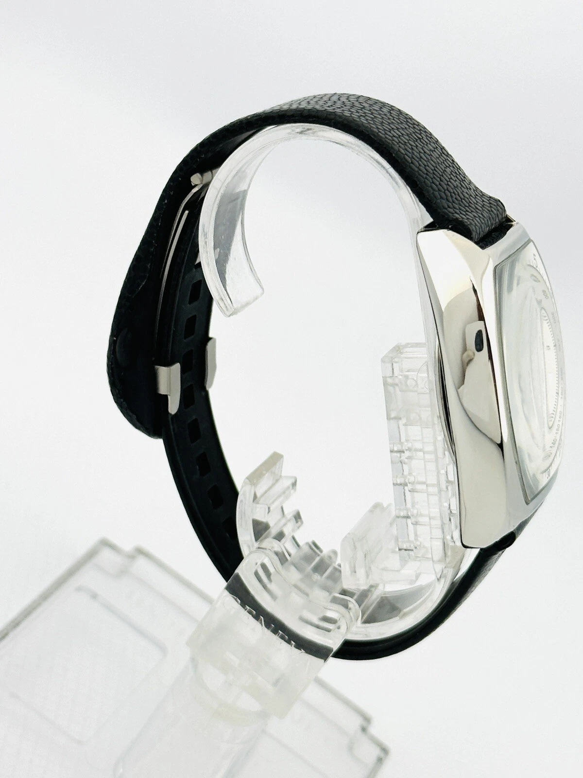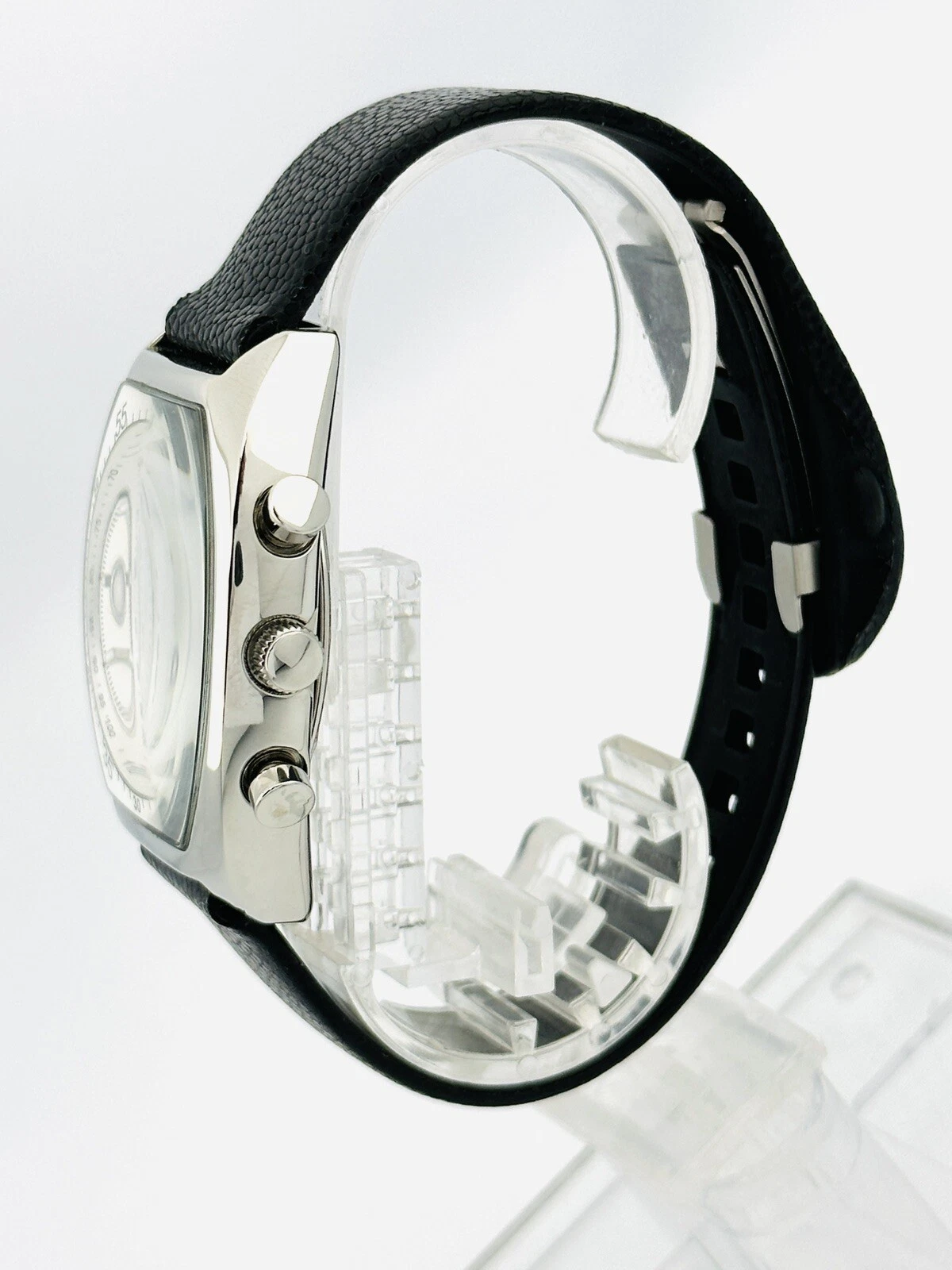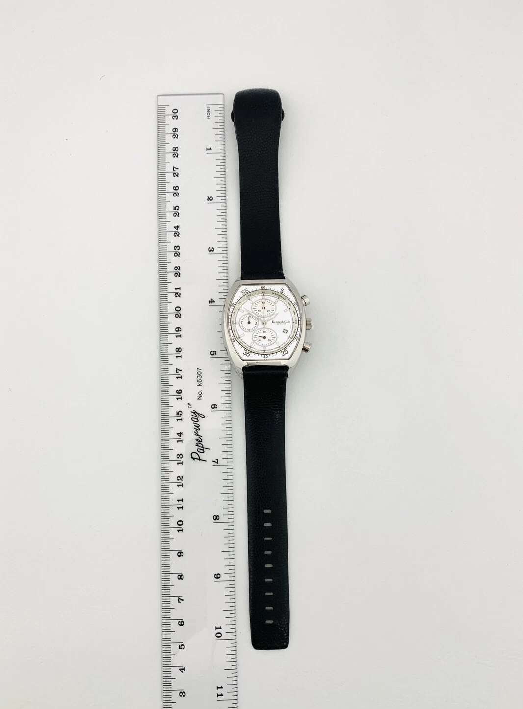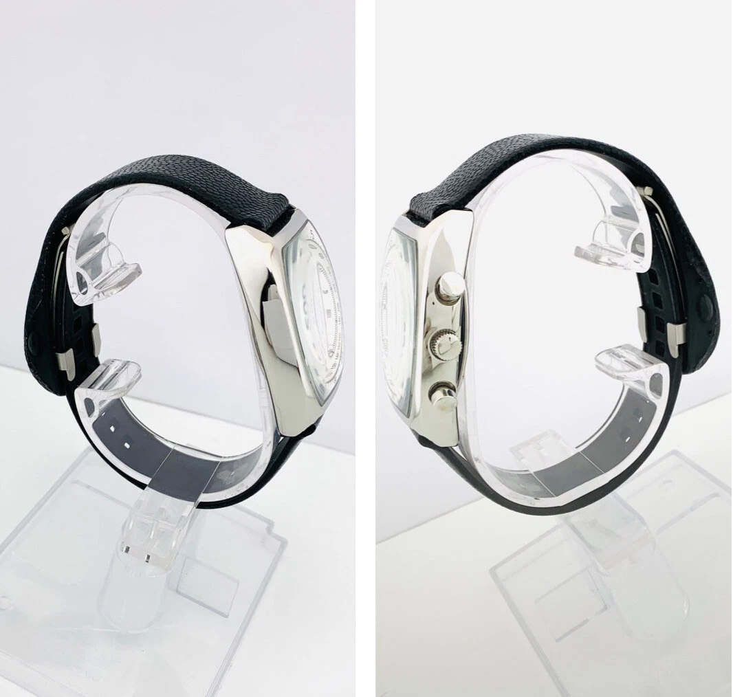 Kenneth Cole KC1207 Tonneau Barrel ChunkyCase Silver White Dial Black StrapWatch