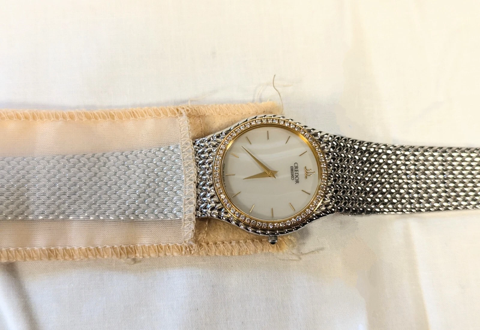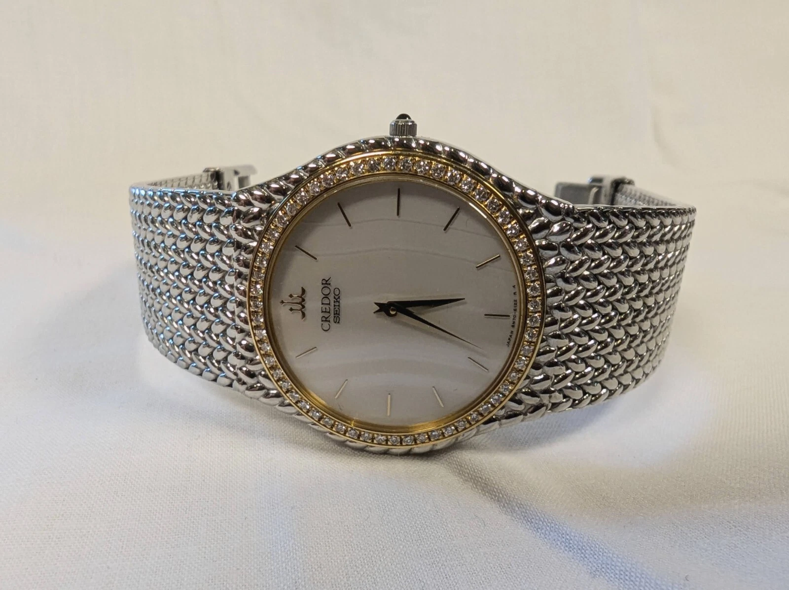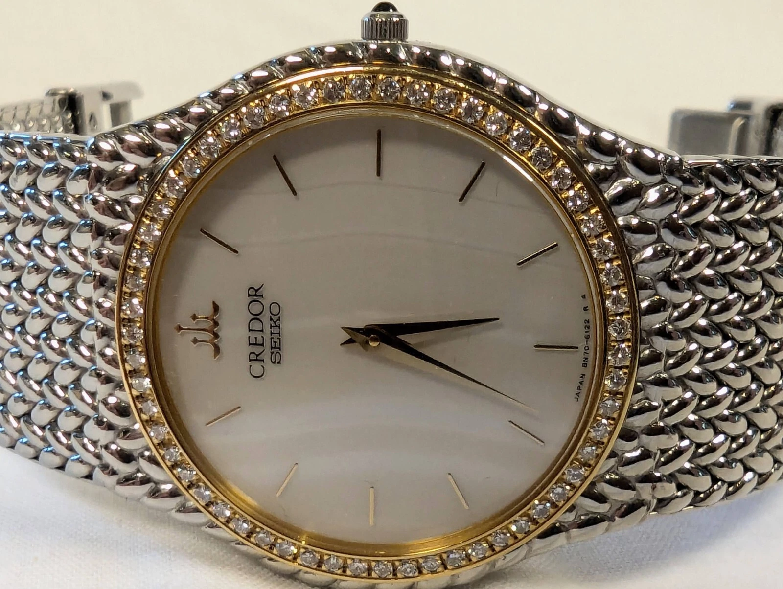 Men's Seiko Credor 8N70-6141 Diamond Bezel Yellow Gold 18k Dress Watch