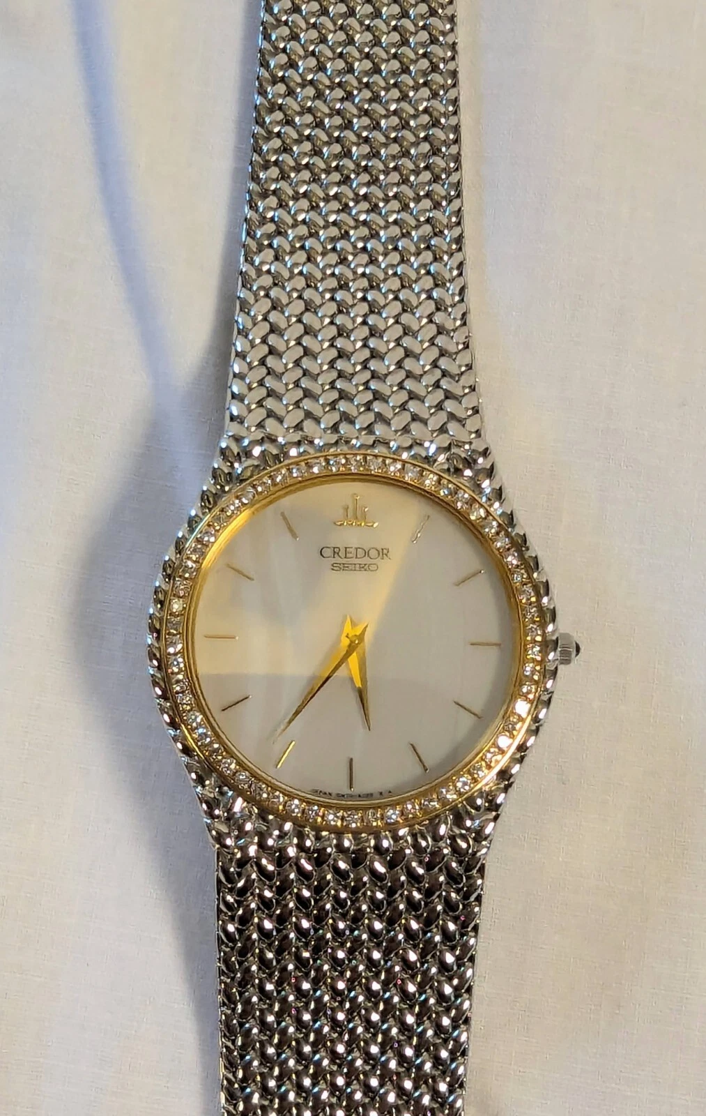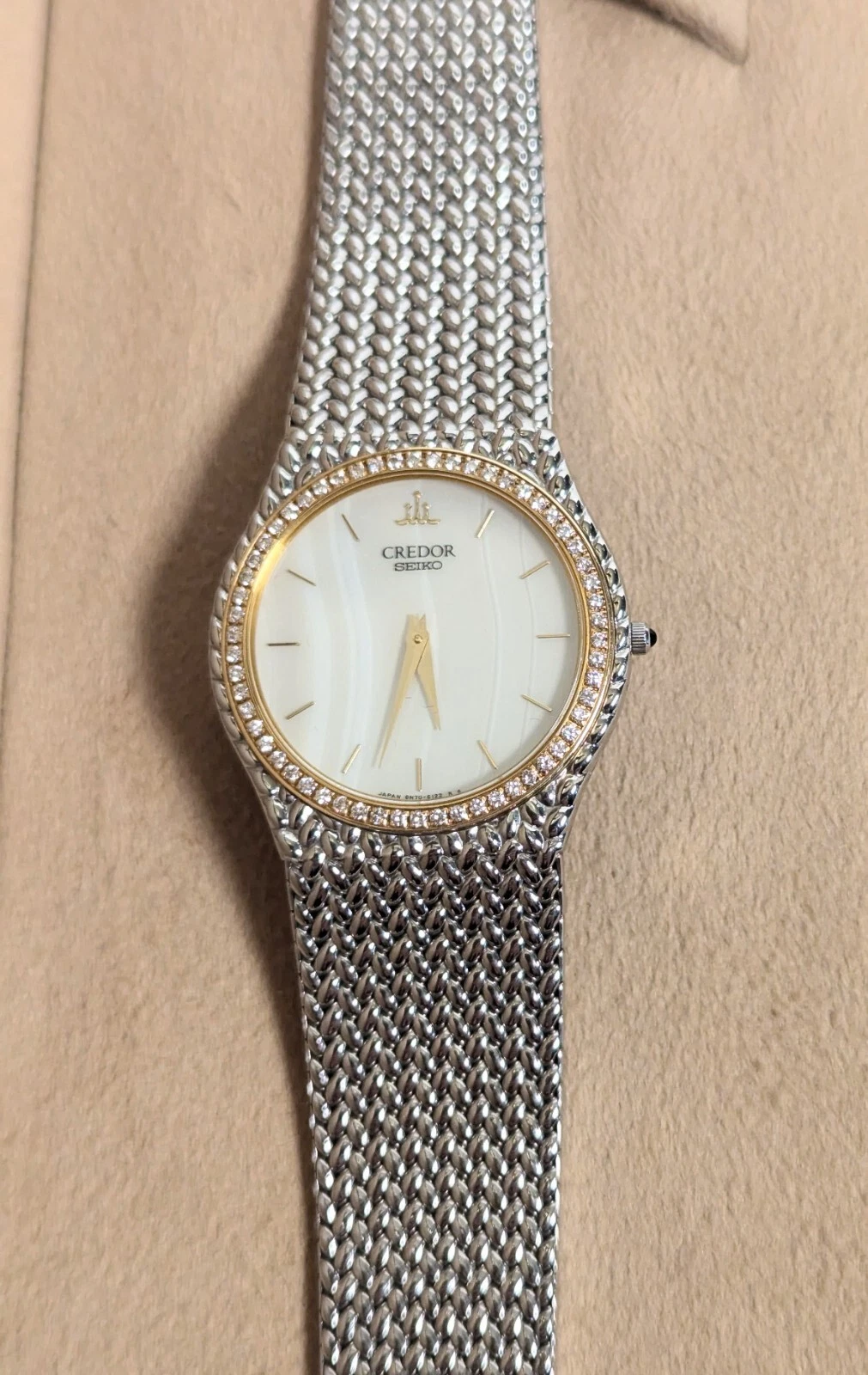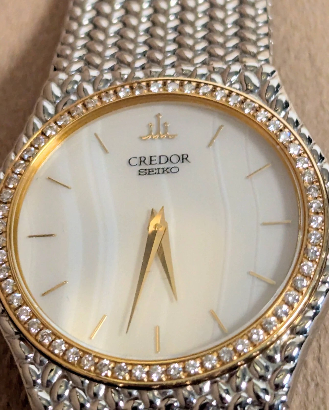 Men's Seiko Credor 8N70-6141 Diamond Bezel Yellow Gold 18k Dress Watch