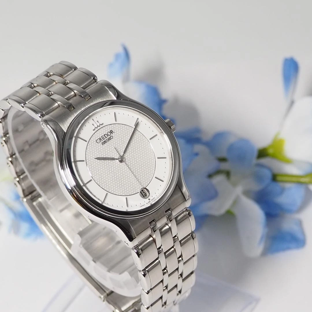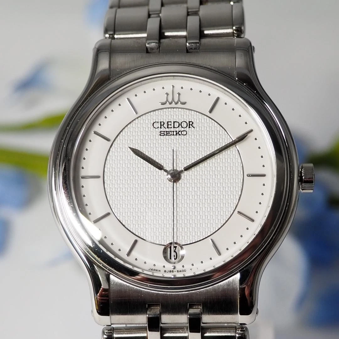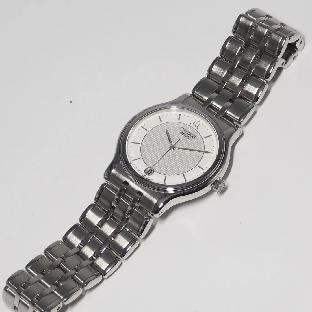 Credor 8J86-6A00 Analog Quartz Men Seiko Date Men'S Watch Silver C786 Vintage 80