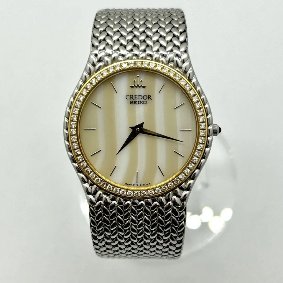 Seiko Credor Quartz Watch 8N70-6140 18K Gold with Diamonds