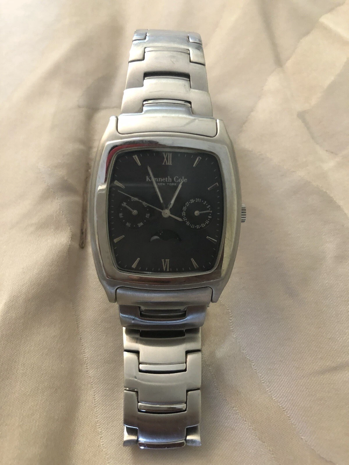 Kenneth Cole Men's Silver Quartz Watch Moon Phase Blue w/ Stainless Band KC3627