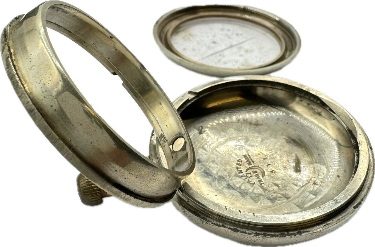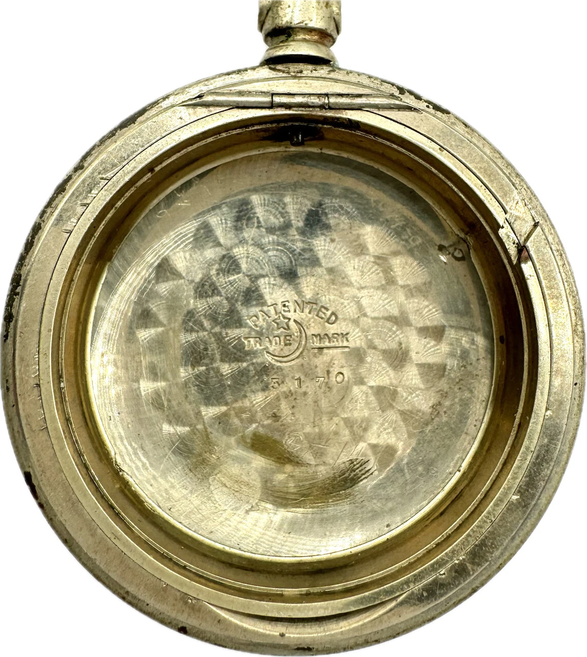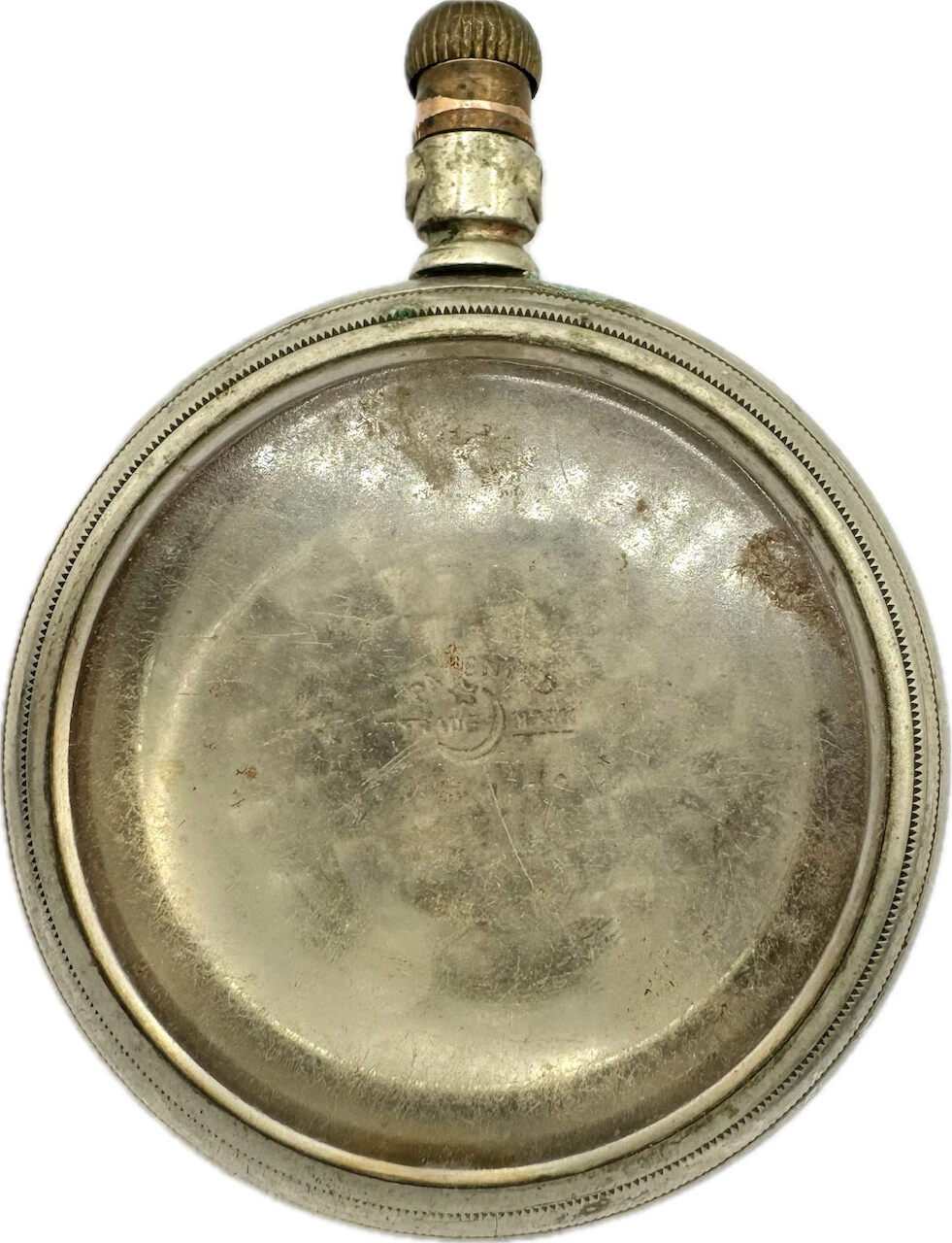 Antique 18 Size Crescent Swing Out Open Face Pocket Watch Case Nickel USA