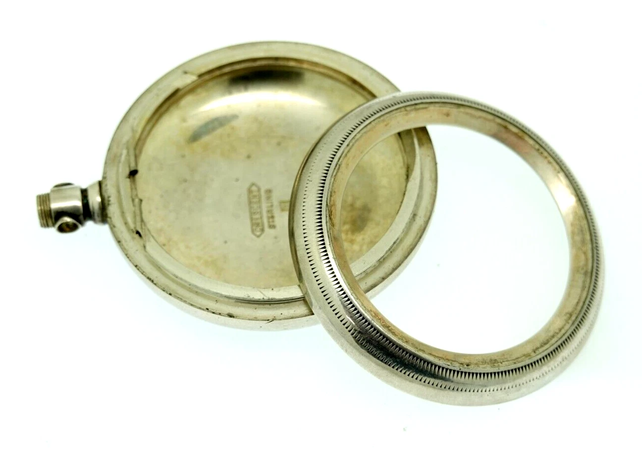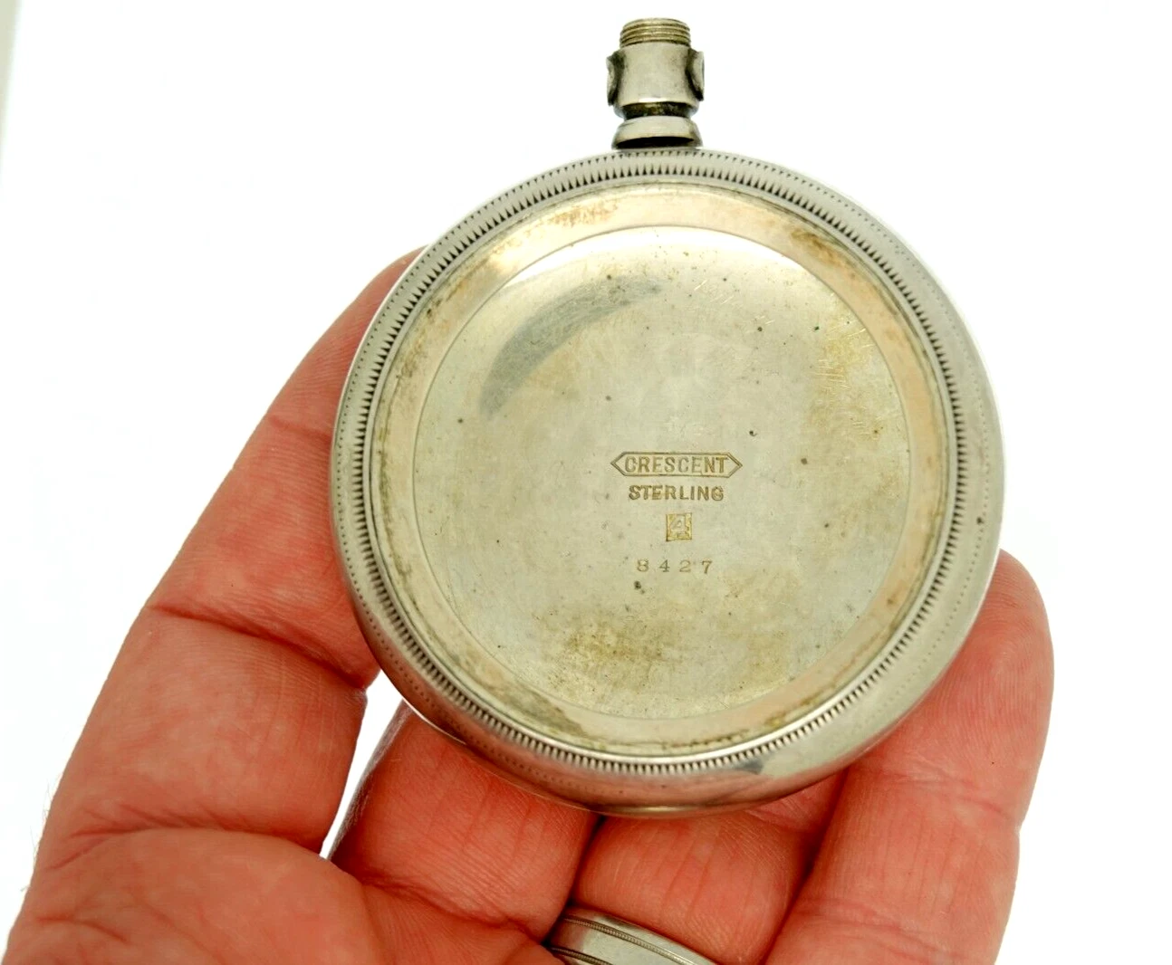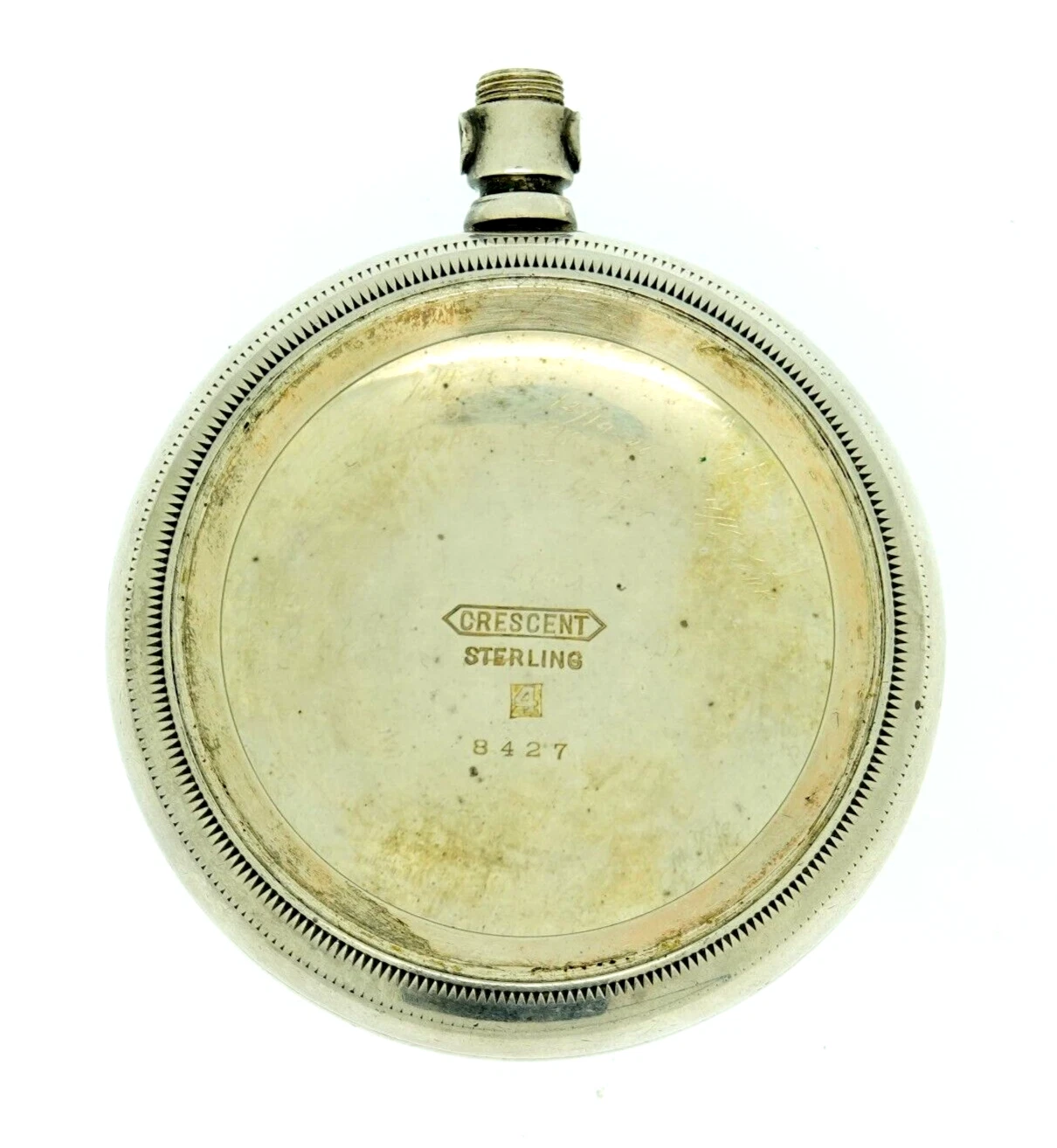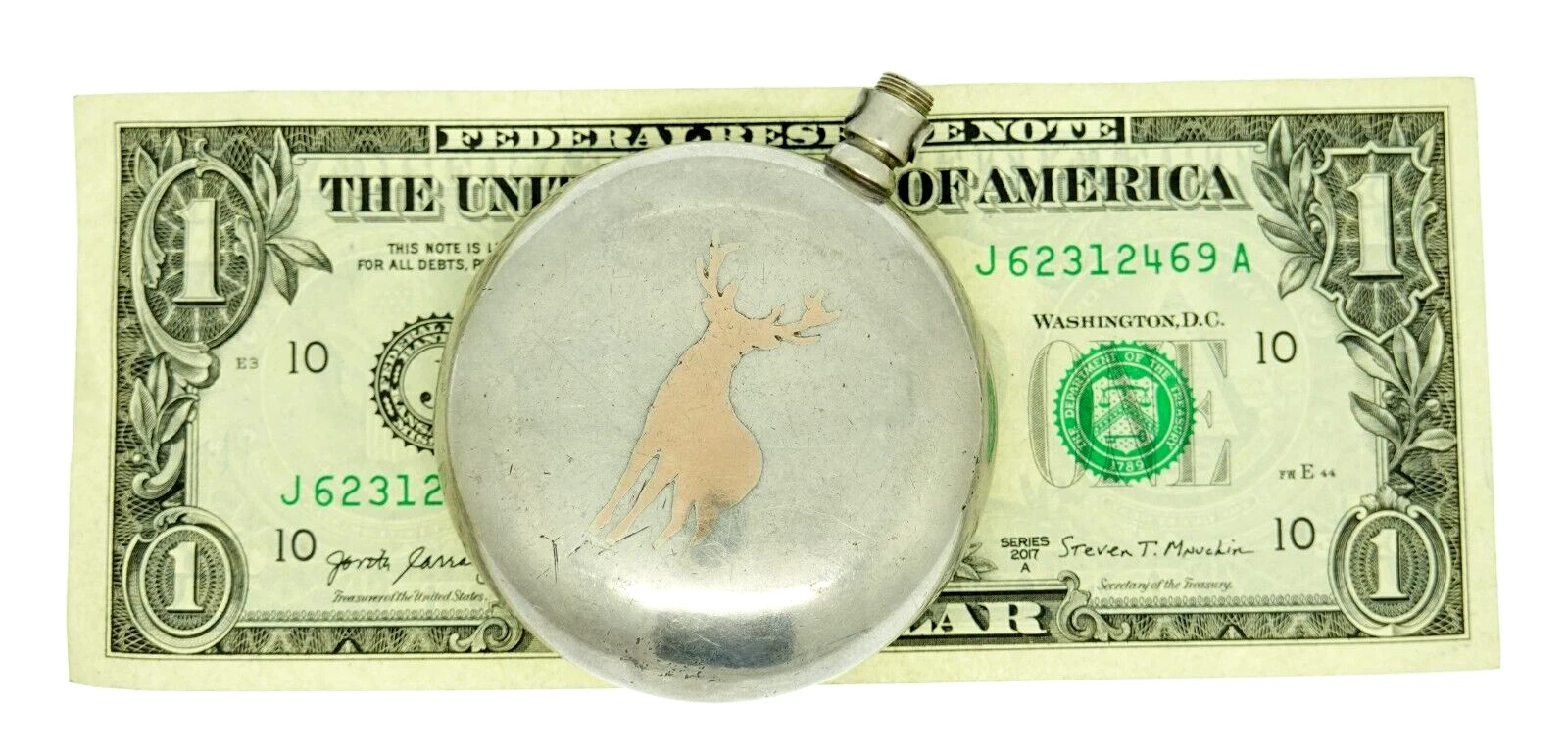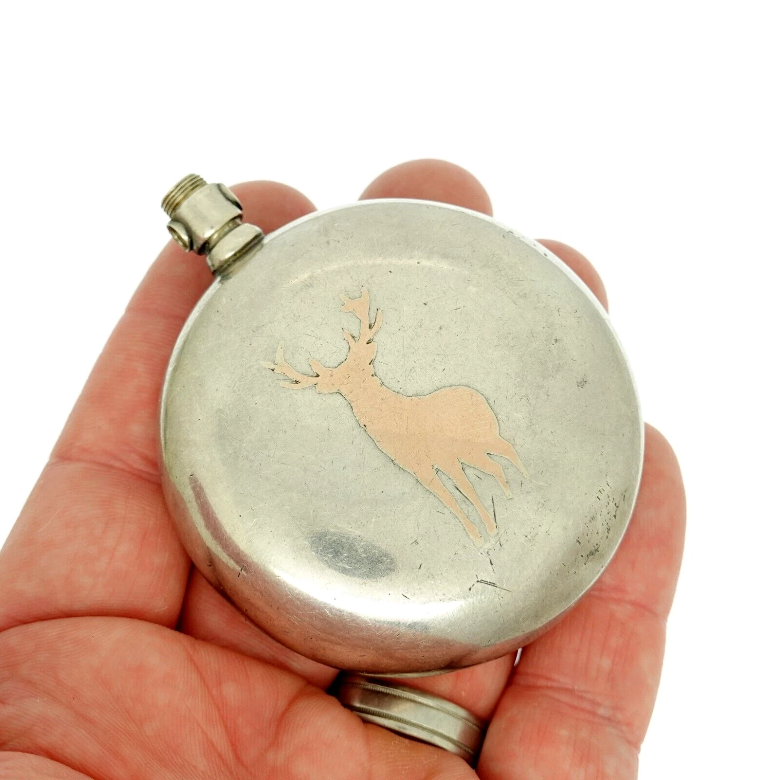 Antique Crescent TWO TONE Sterling and Gold Inlay Stag Deer Pocket Watch Case