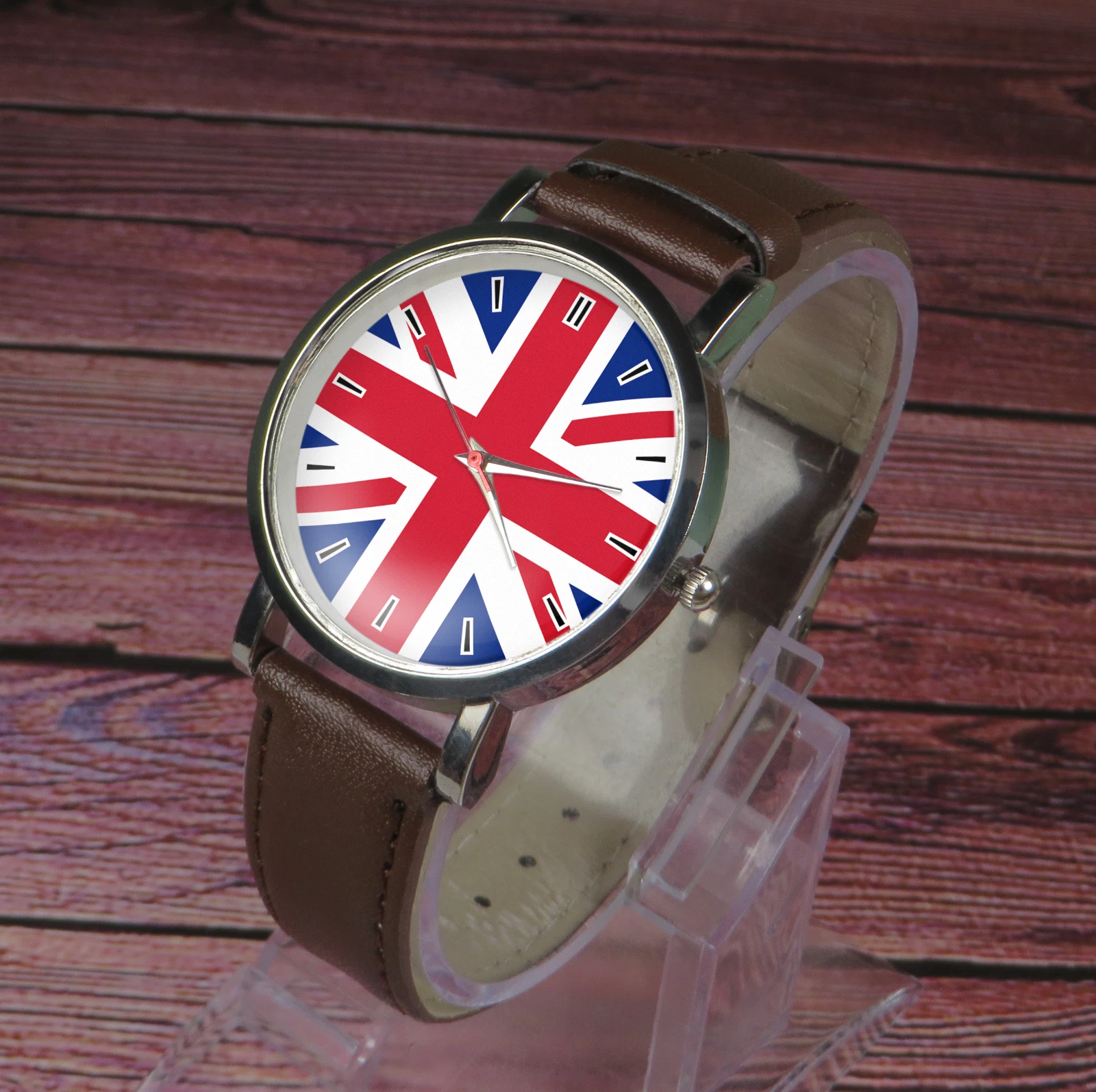 UK flag wristwatch. Classy & stylish watch. Black or brown strap