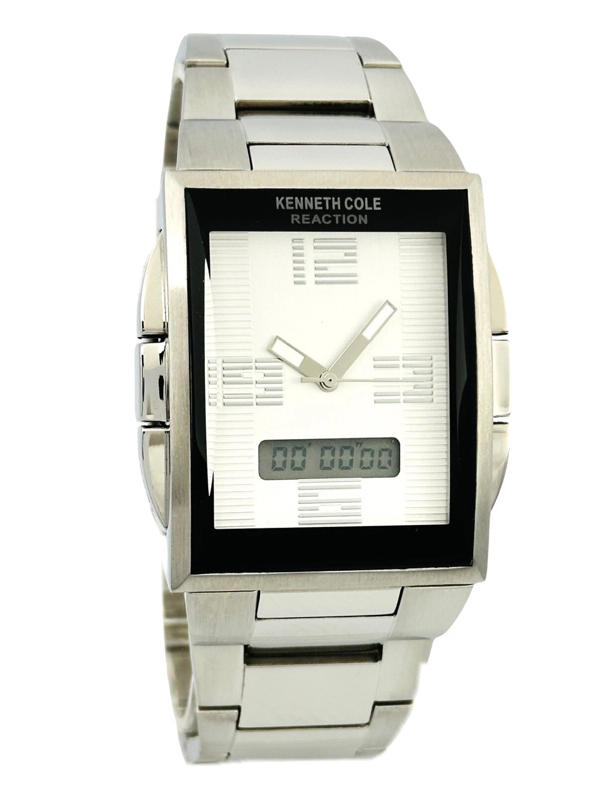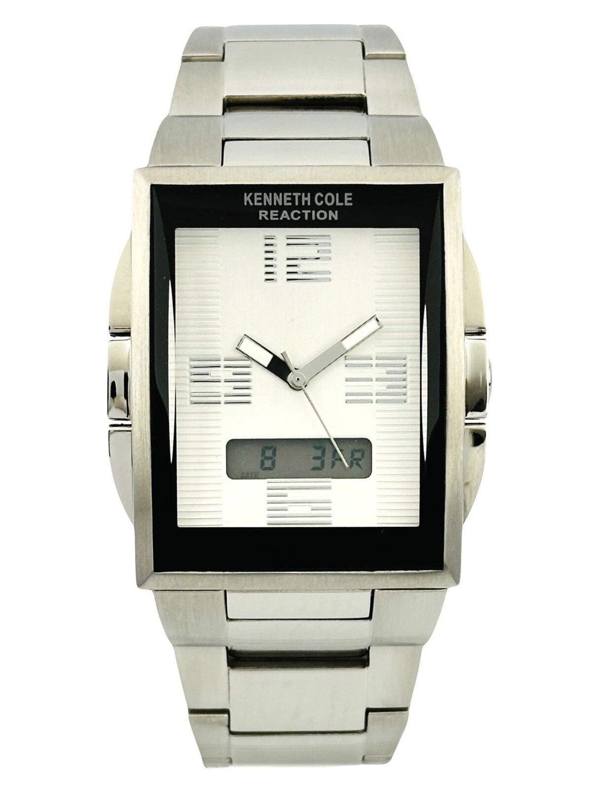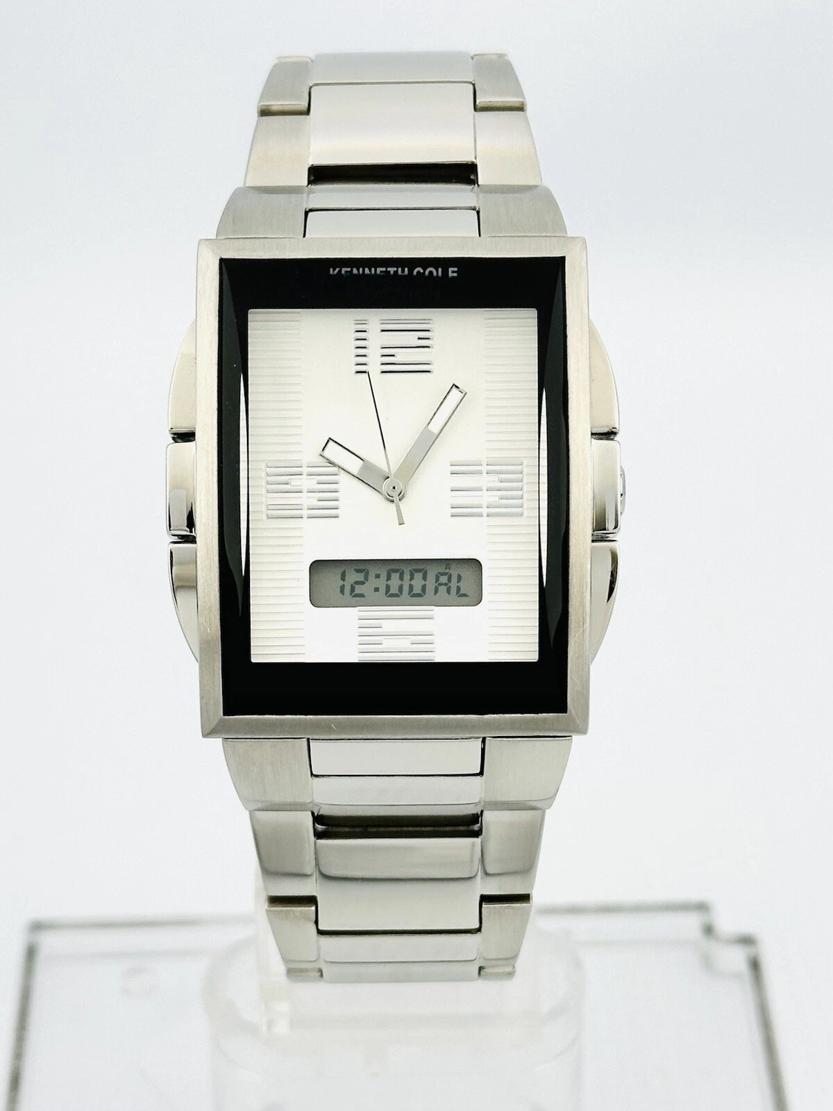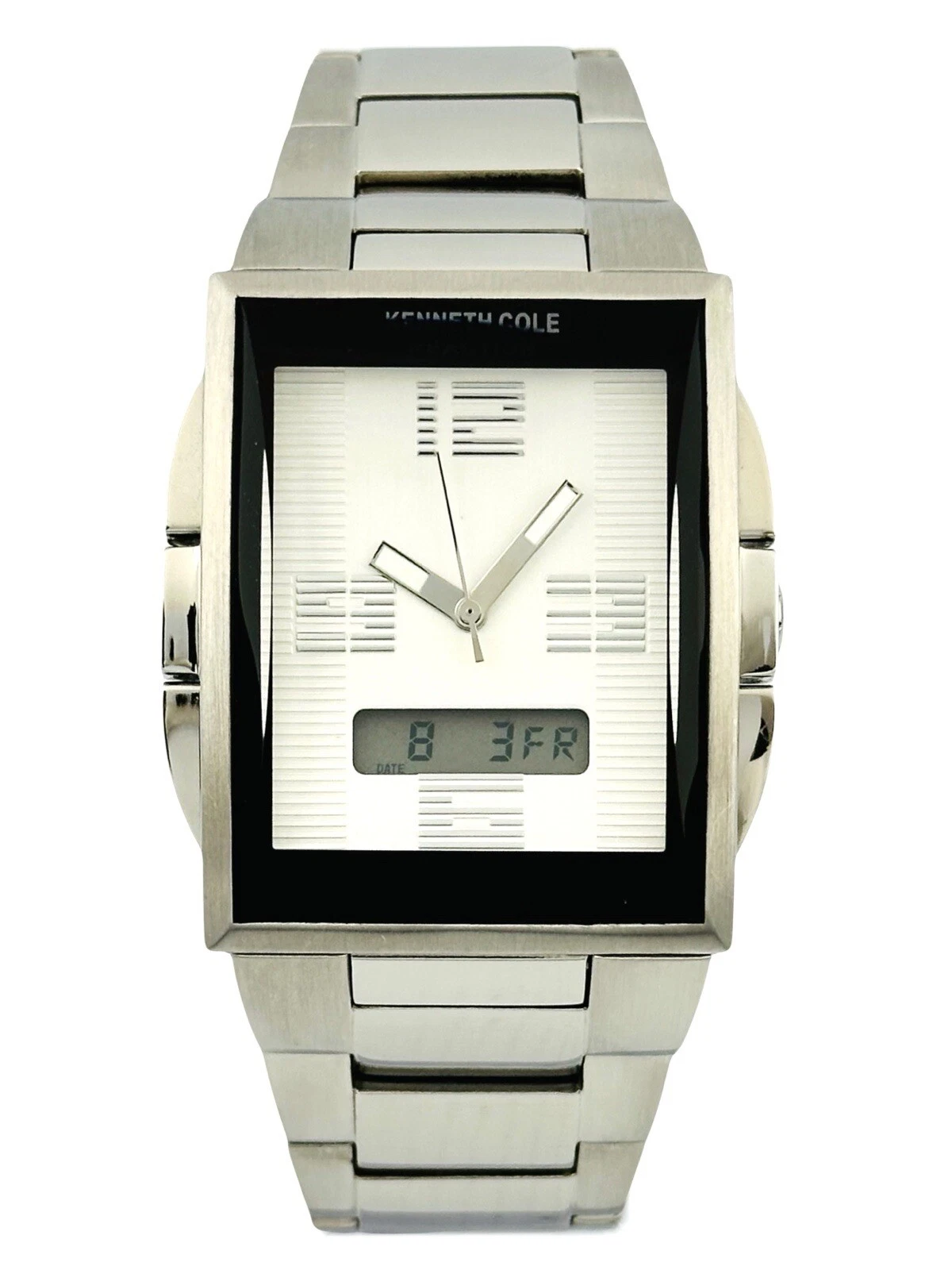 Kenneth Cole KC3721  Rectangle DualAnalog & Digital Stainless Steel Chunky Watch