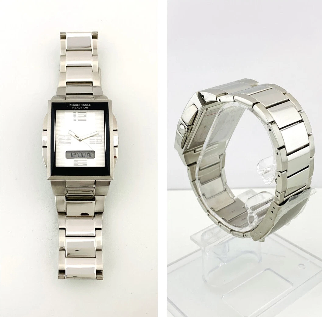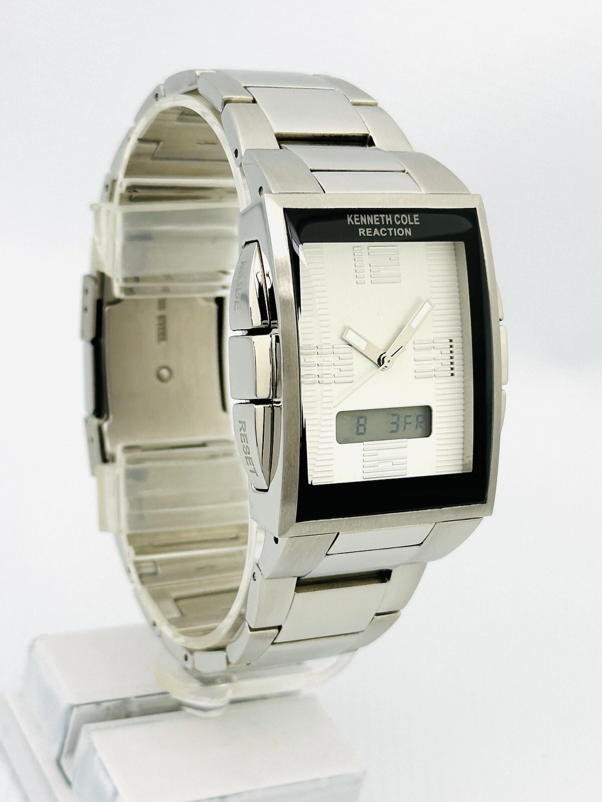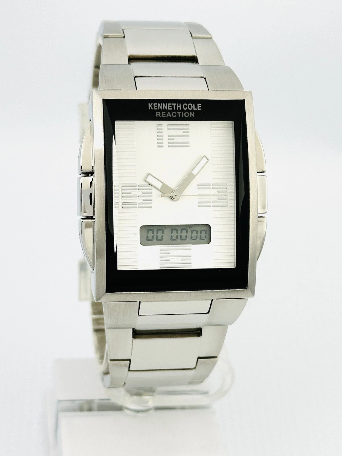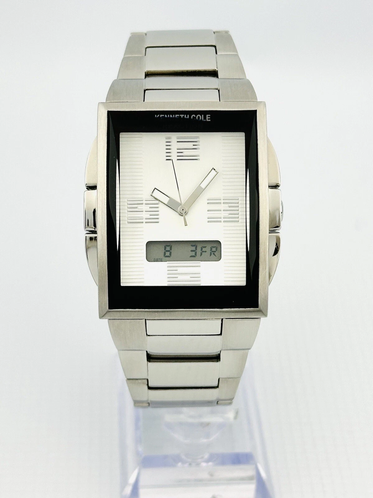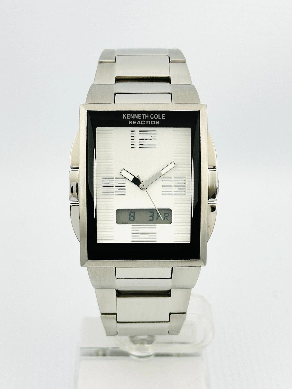 Kenneth Cole KC3721  Rectangle DualAnalog & Digital Stainless Steel Chunky Watch