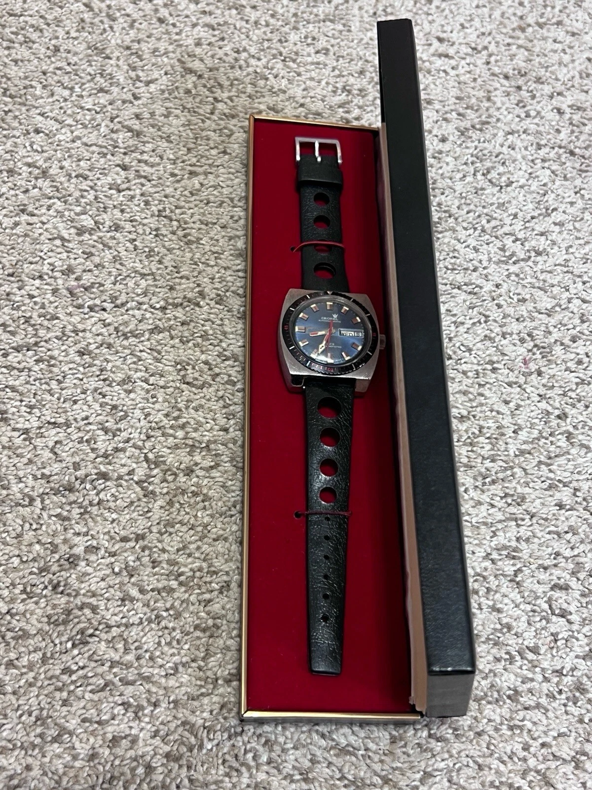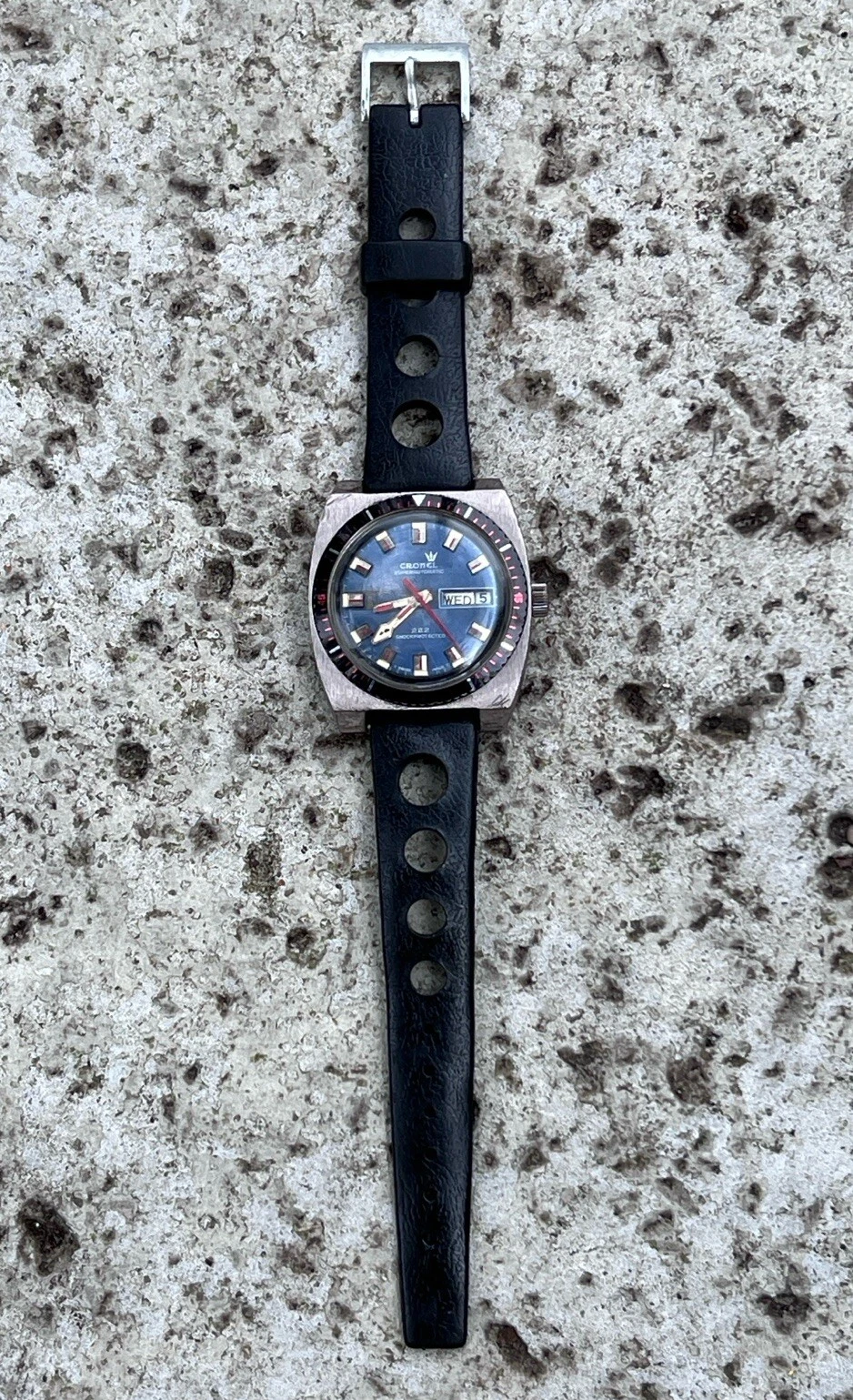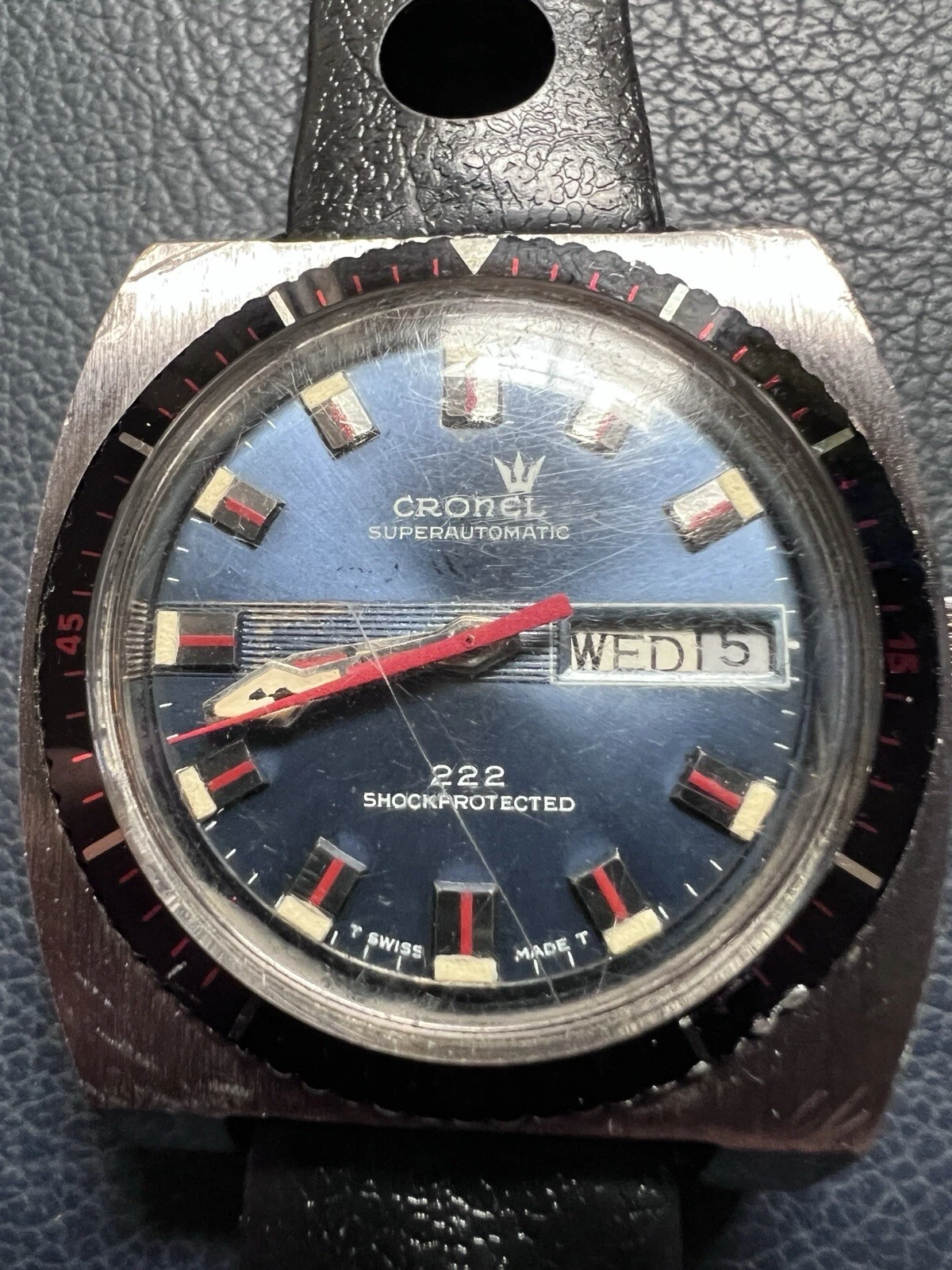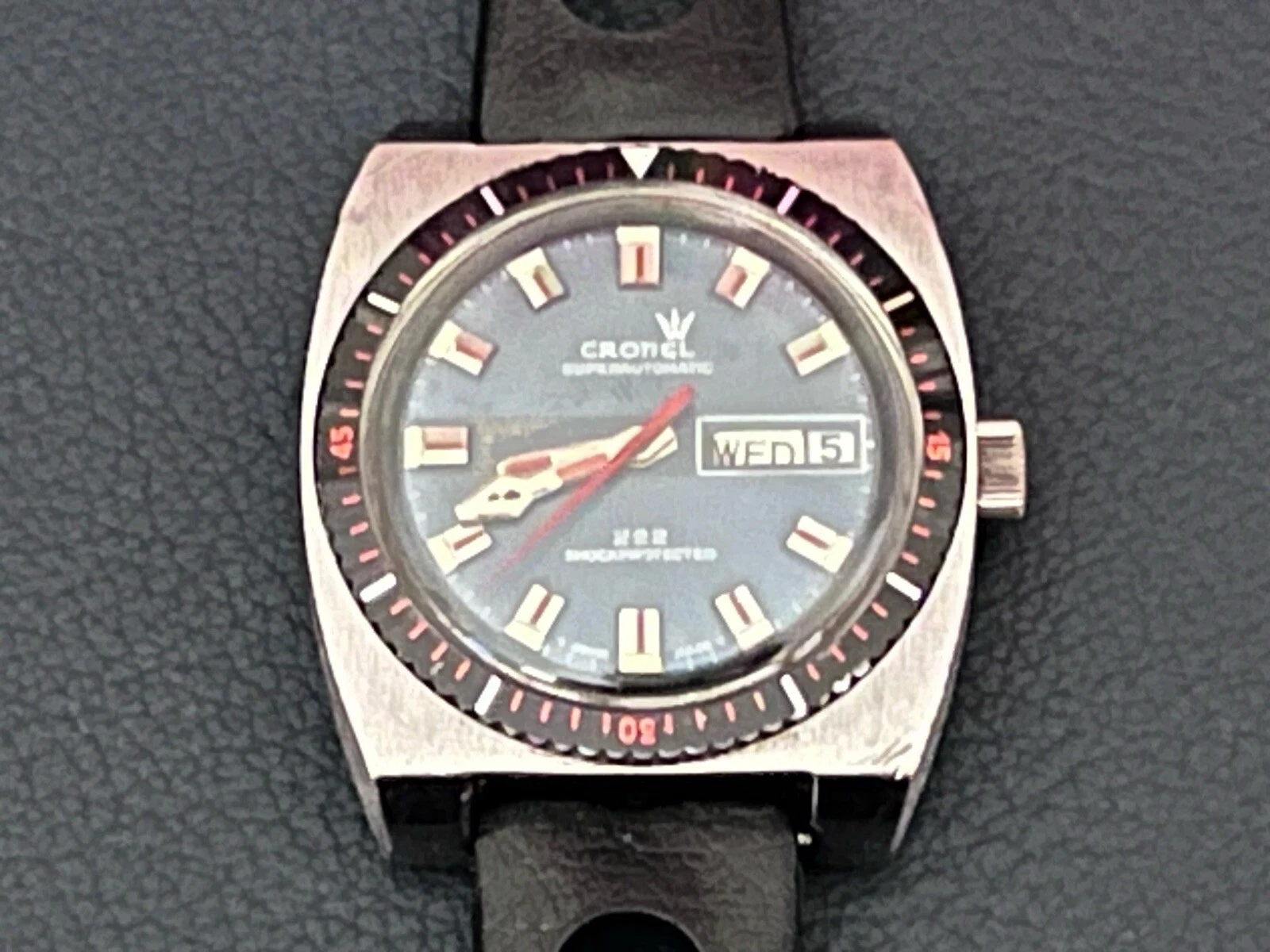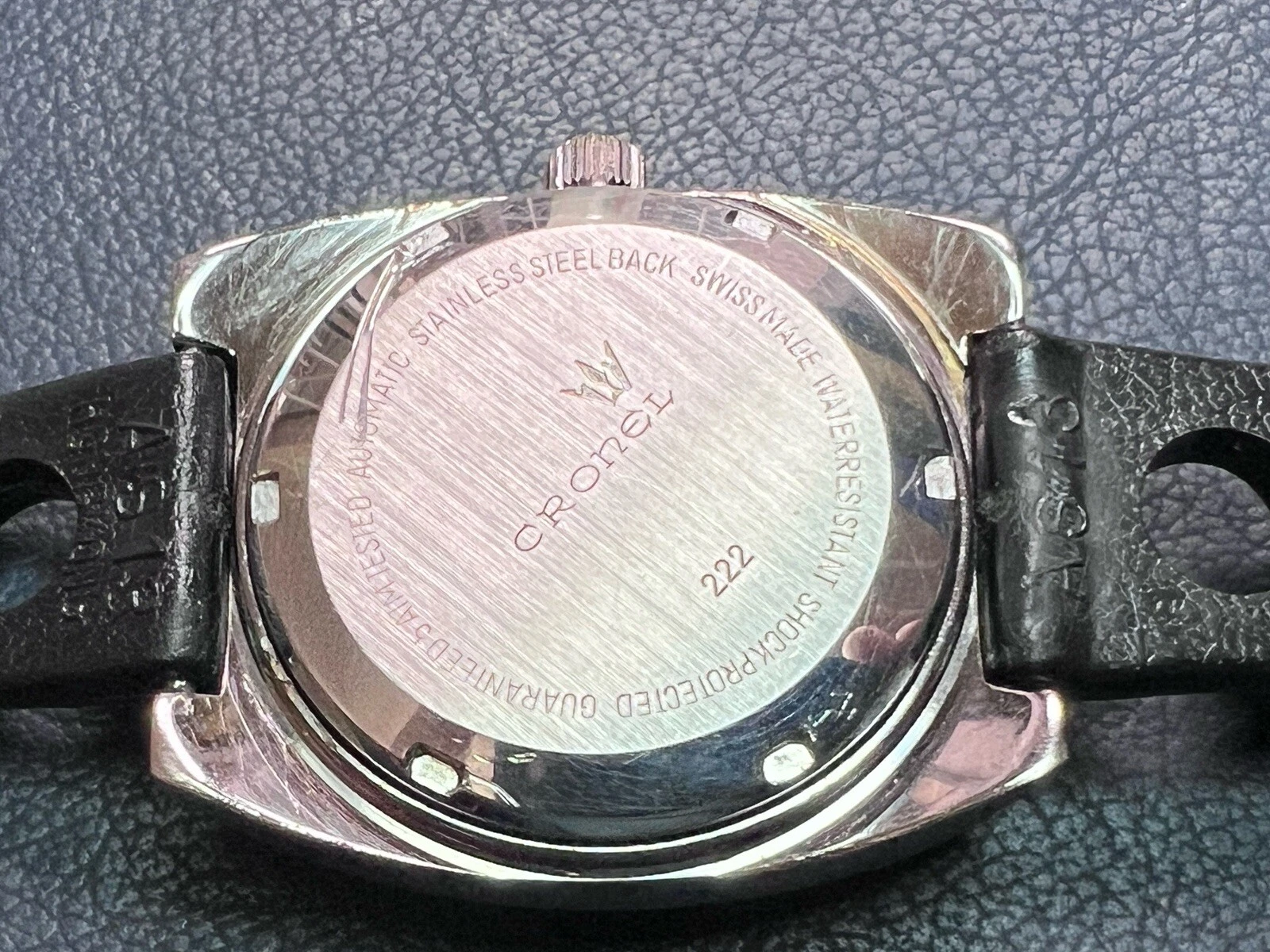 CRONEL 60's 222 AUTOMATIC 38mm Watch ORIGINAL CASE + STRAP VINTAGE RUNNING