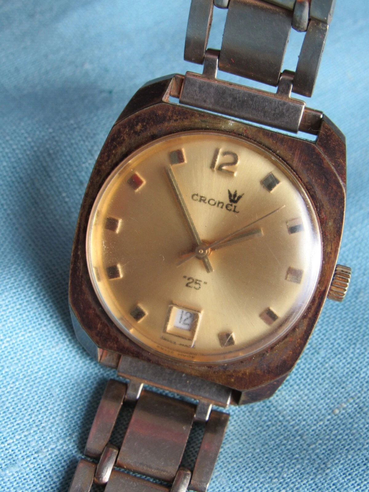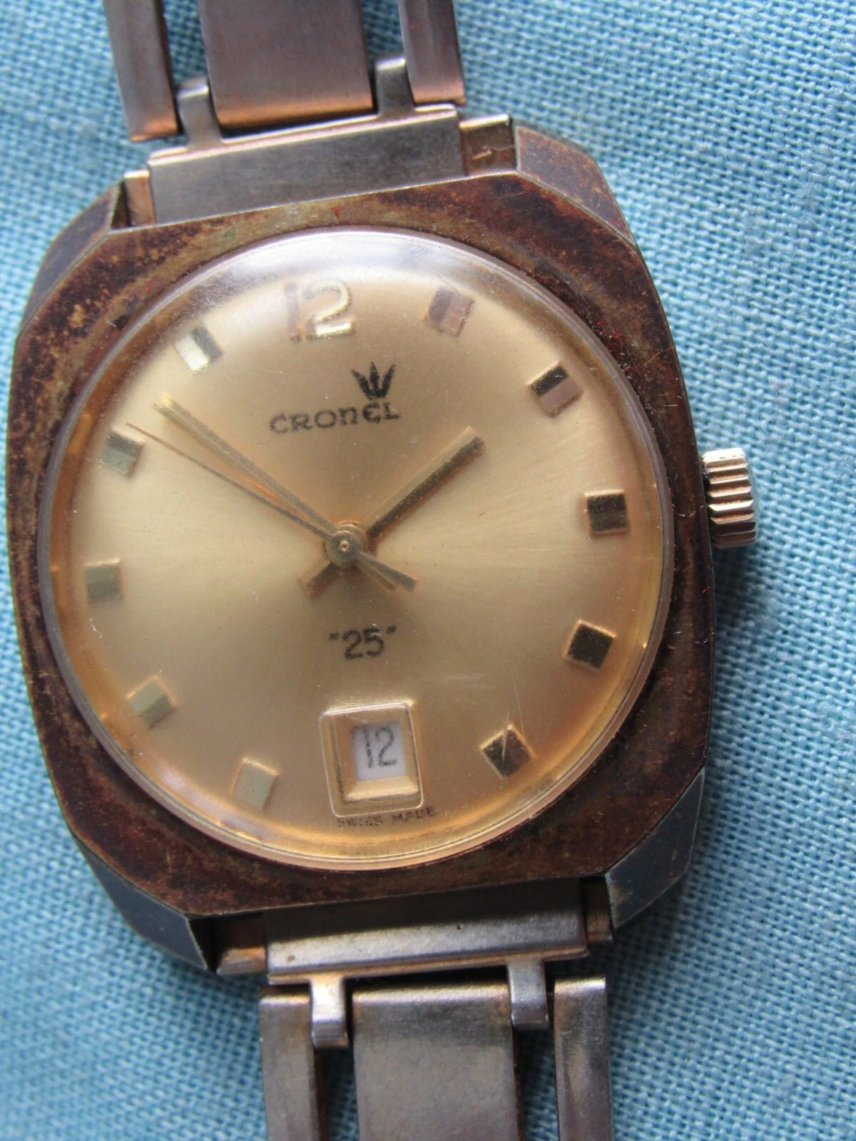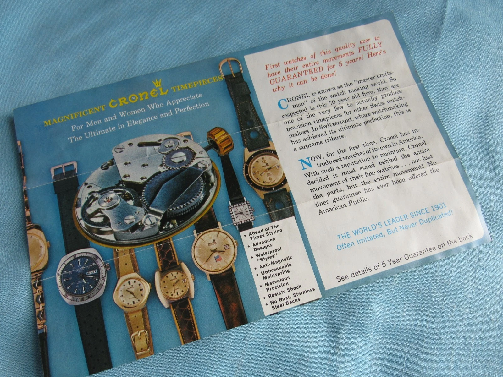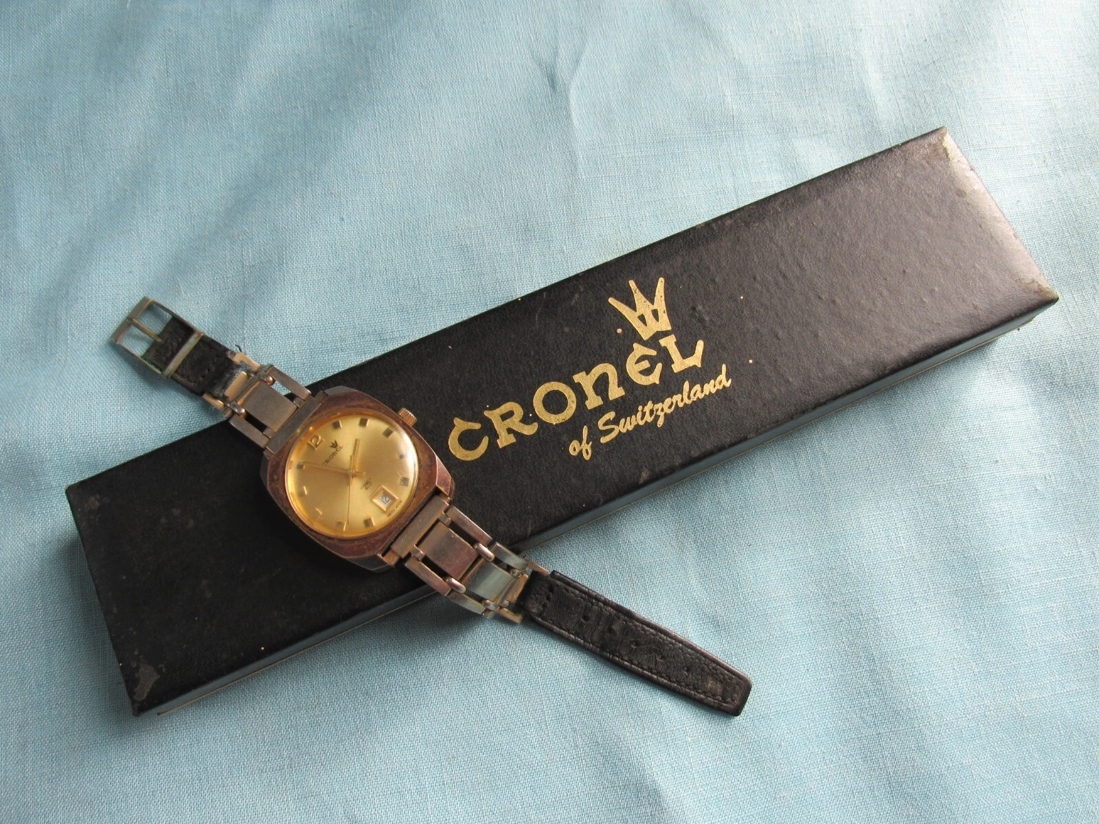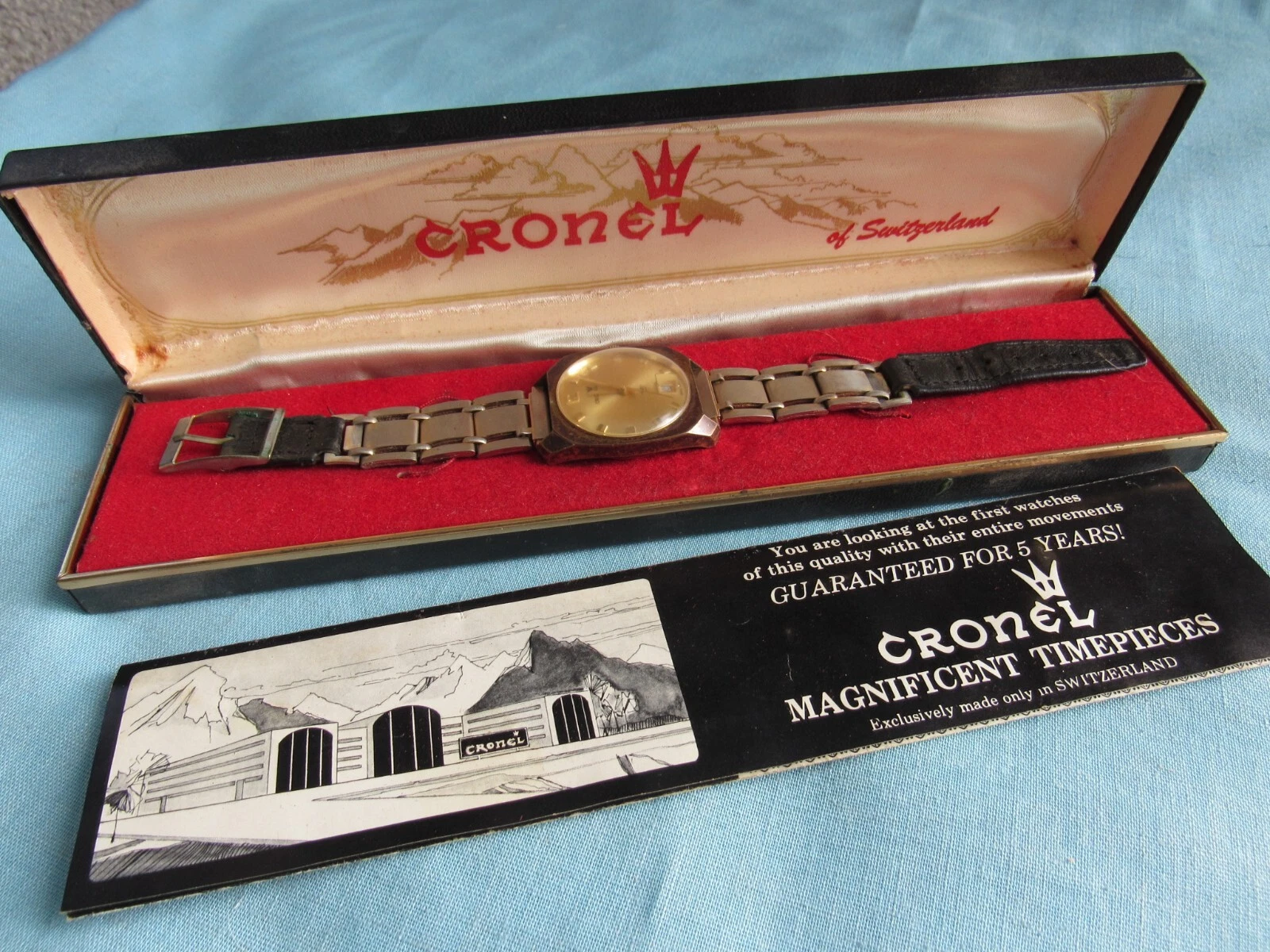 CRONEL 25 34mm Vintage Wristwatch. WORKS. With Orig. Box & Info. Swiss Made.