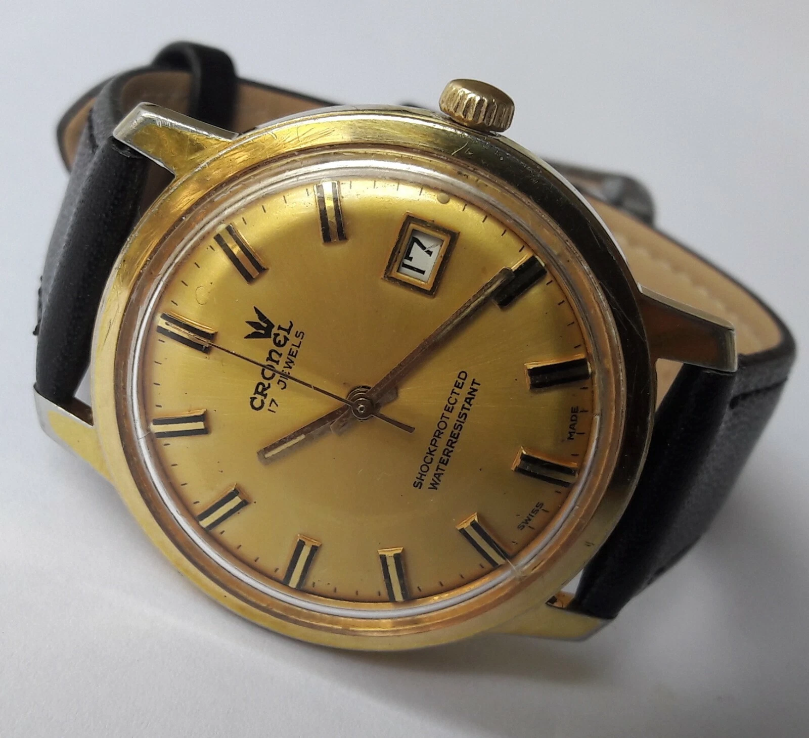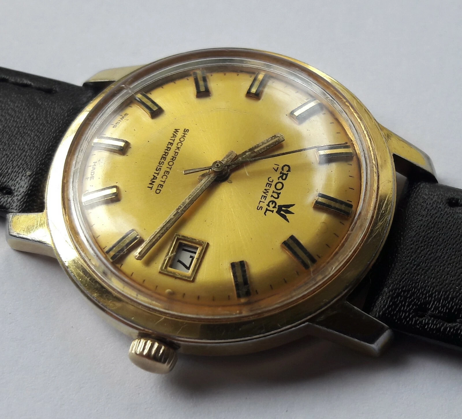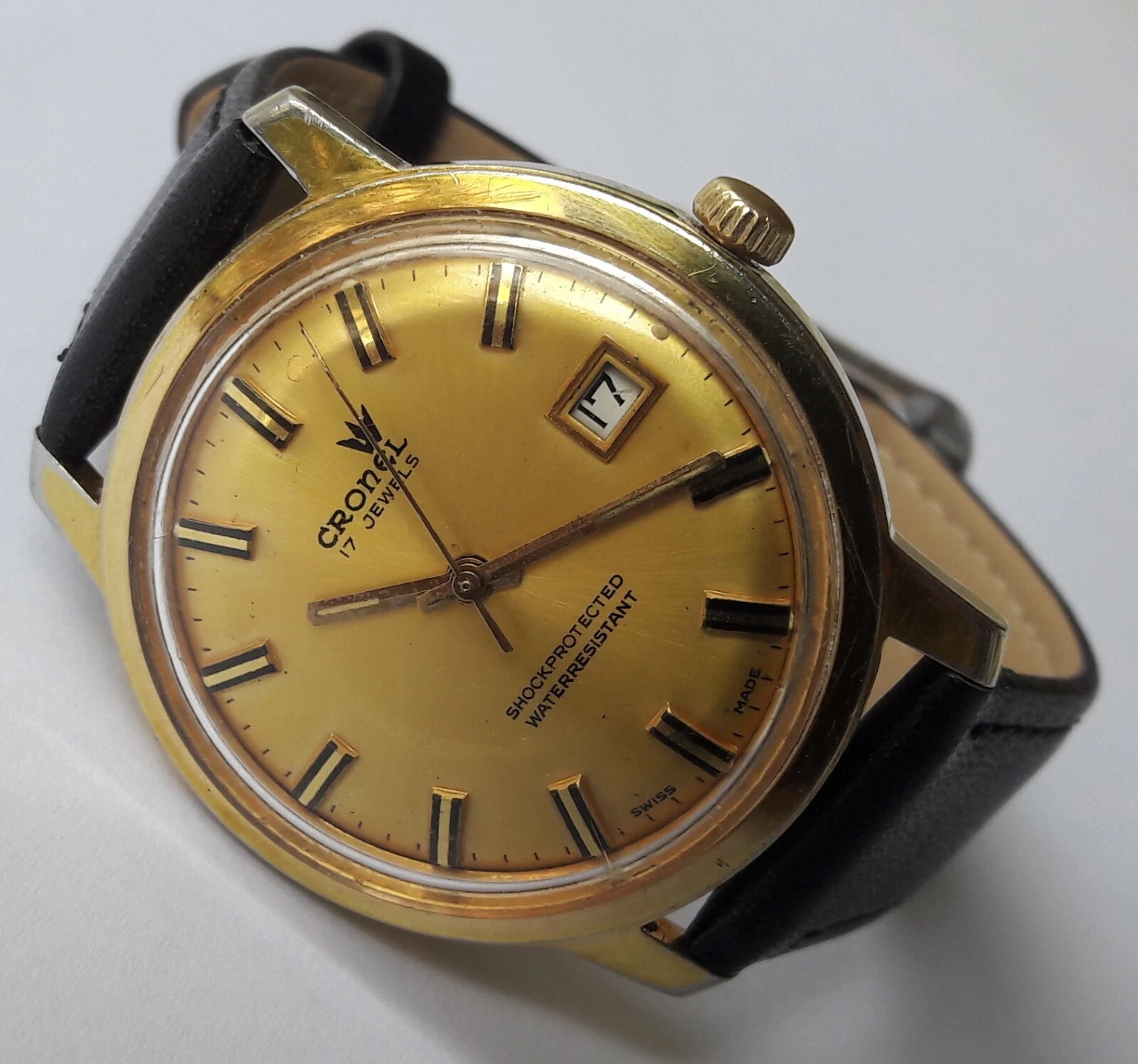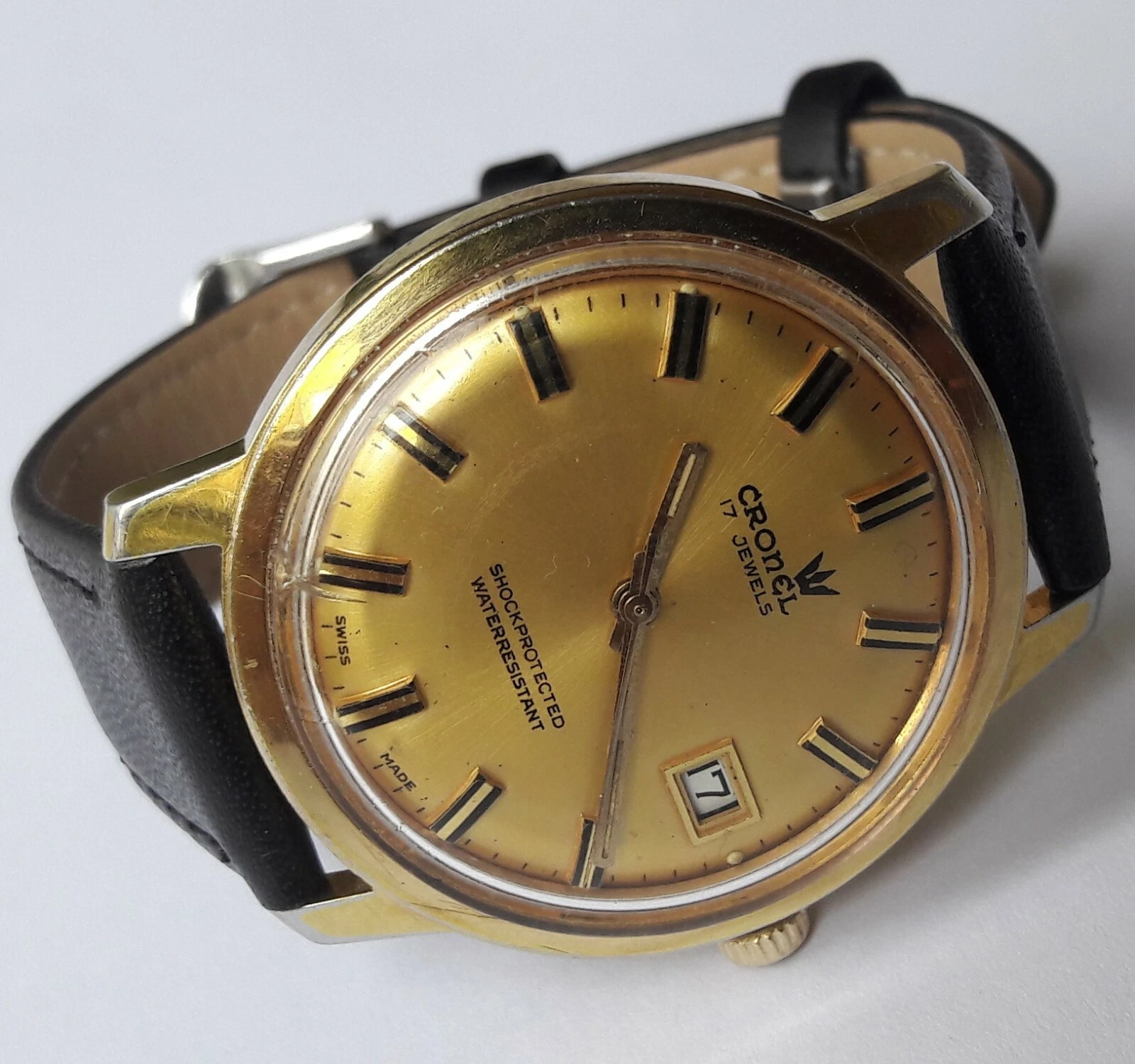 Vintage CRONEL Gold Plated Date Displaying Cal. FE140-1C Swiss Made From 70's