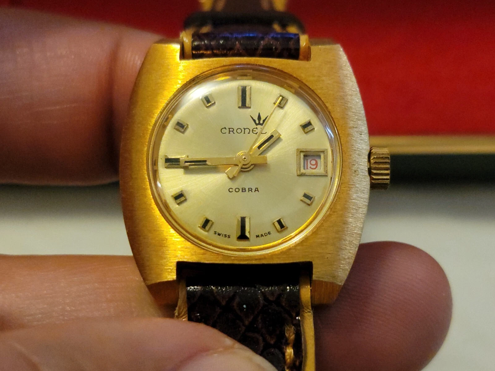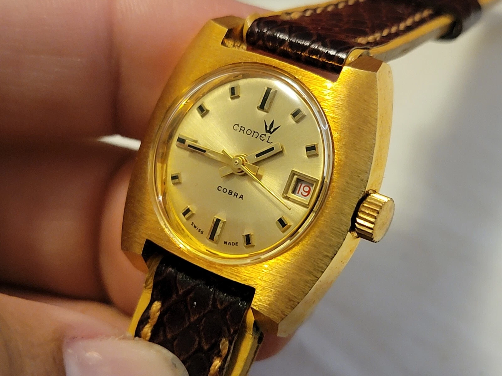 Vintage Cronel Cobra #836 Gokd Plated Swiss Made Rectangular Manual Wind Ladies