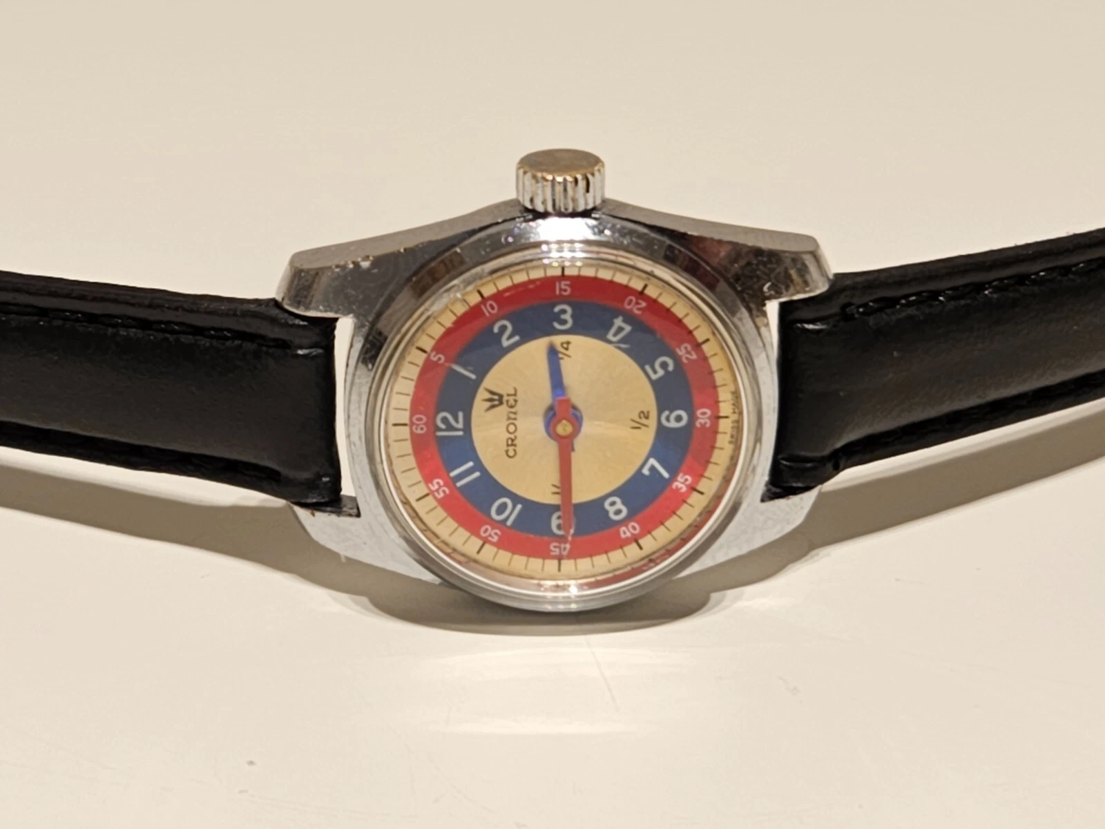 VINTAGE SMALL 24mm SPORT MULTI COLOR DIAL SWISS LADIES MECHANICAL WATCH"CRONEL"