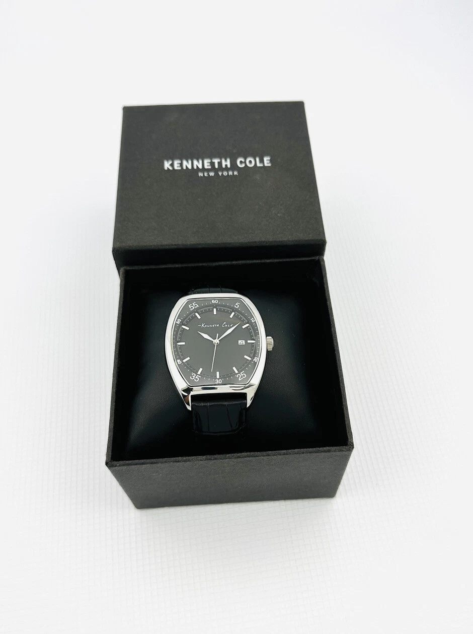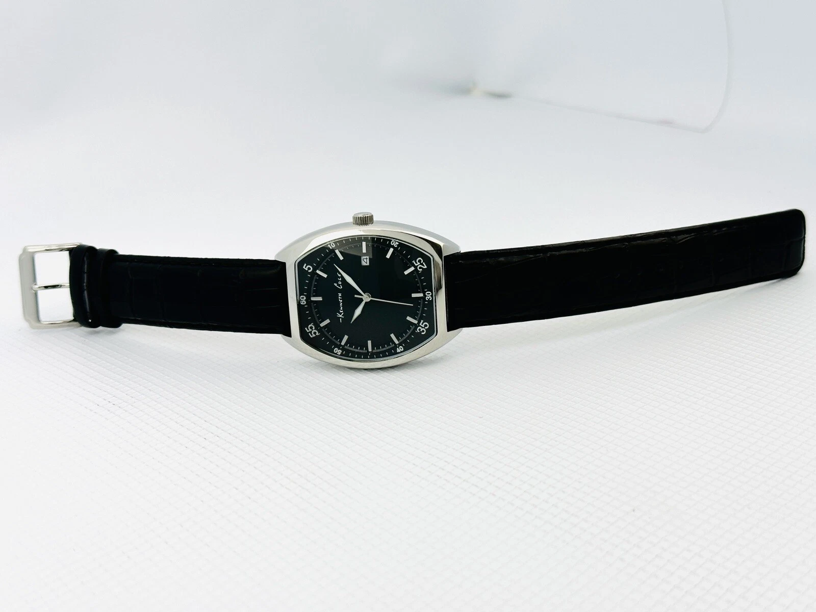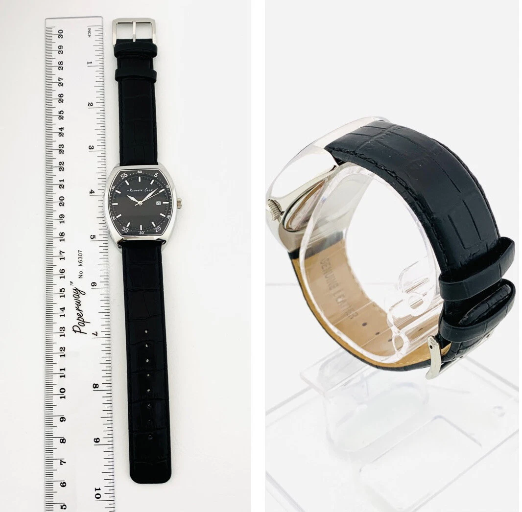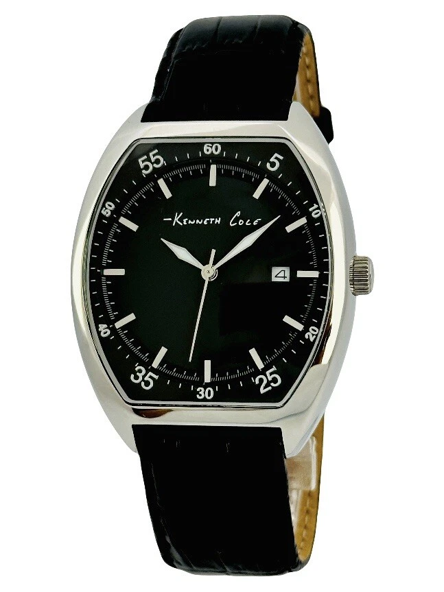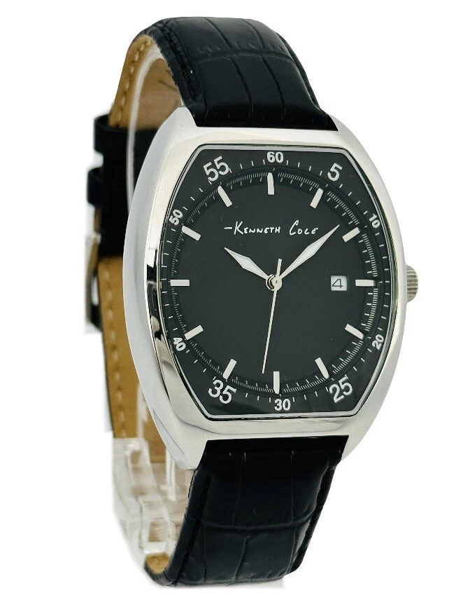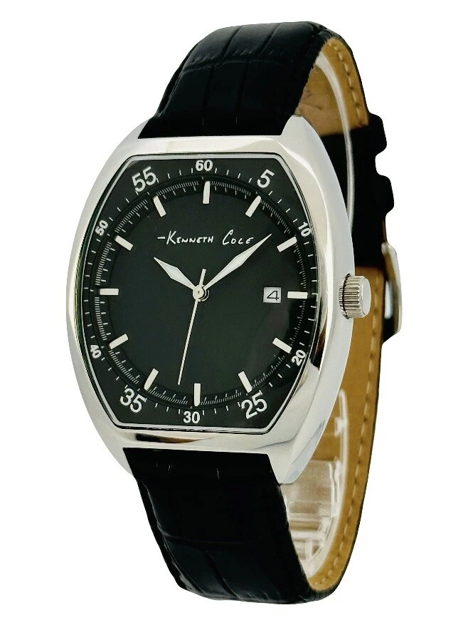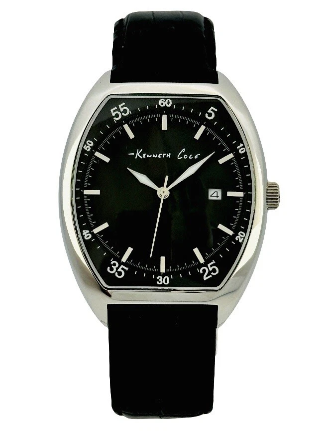 Kenneth Cole KC1227 Tonneau / Barrel Shape Case Black Leather Strap Watch