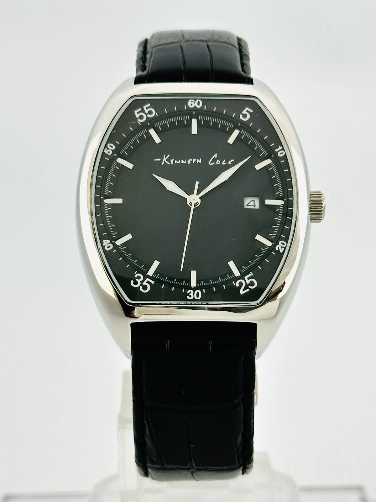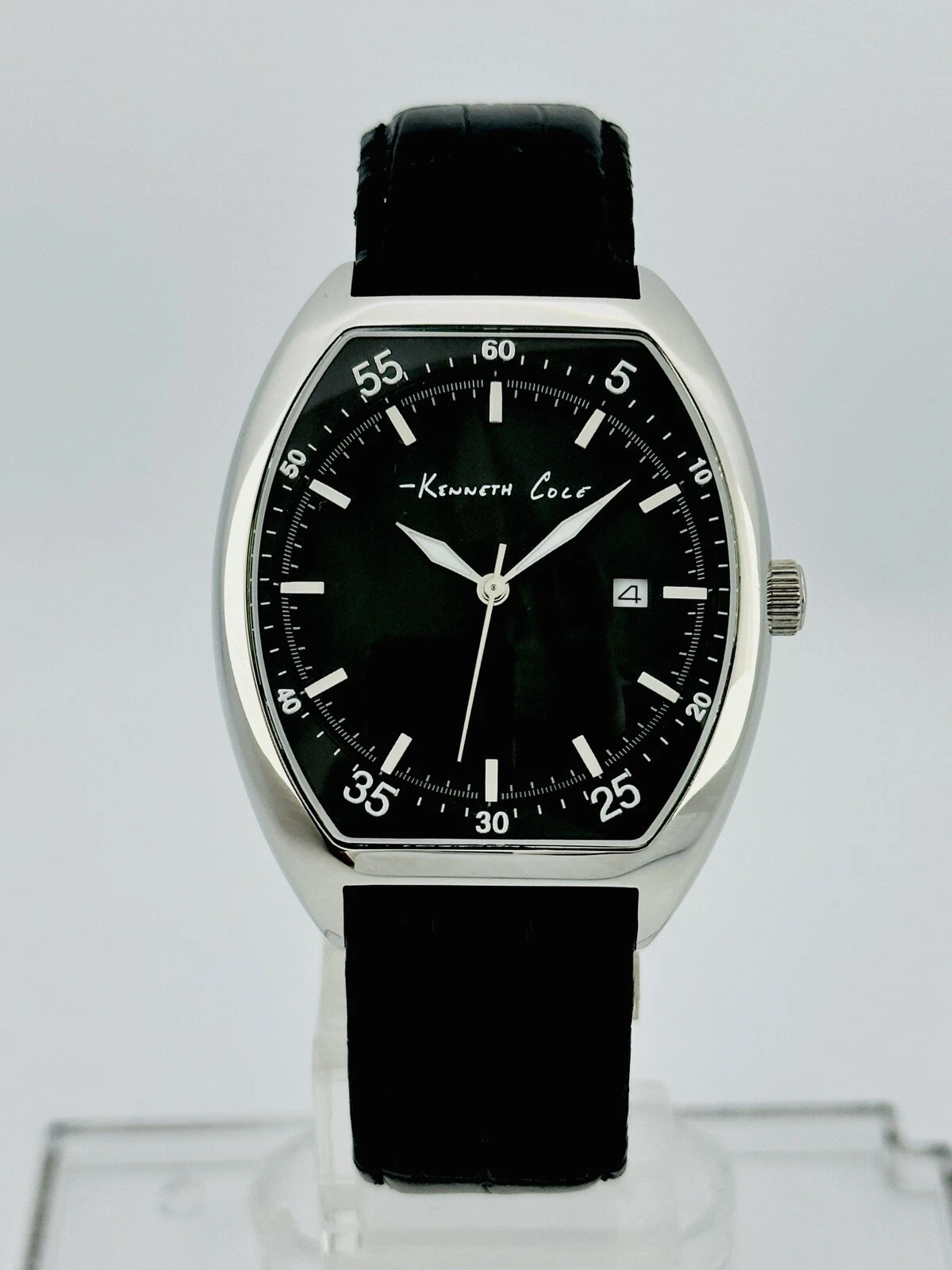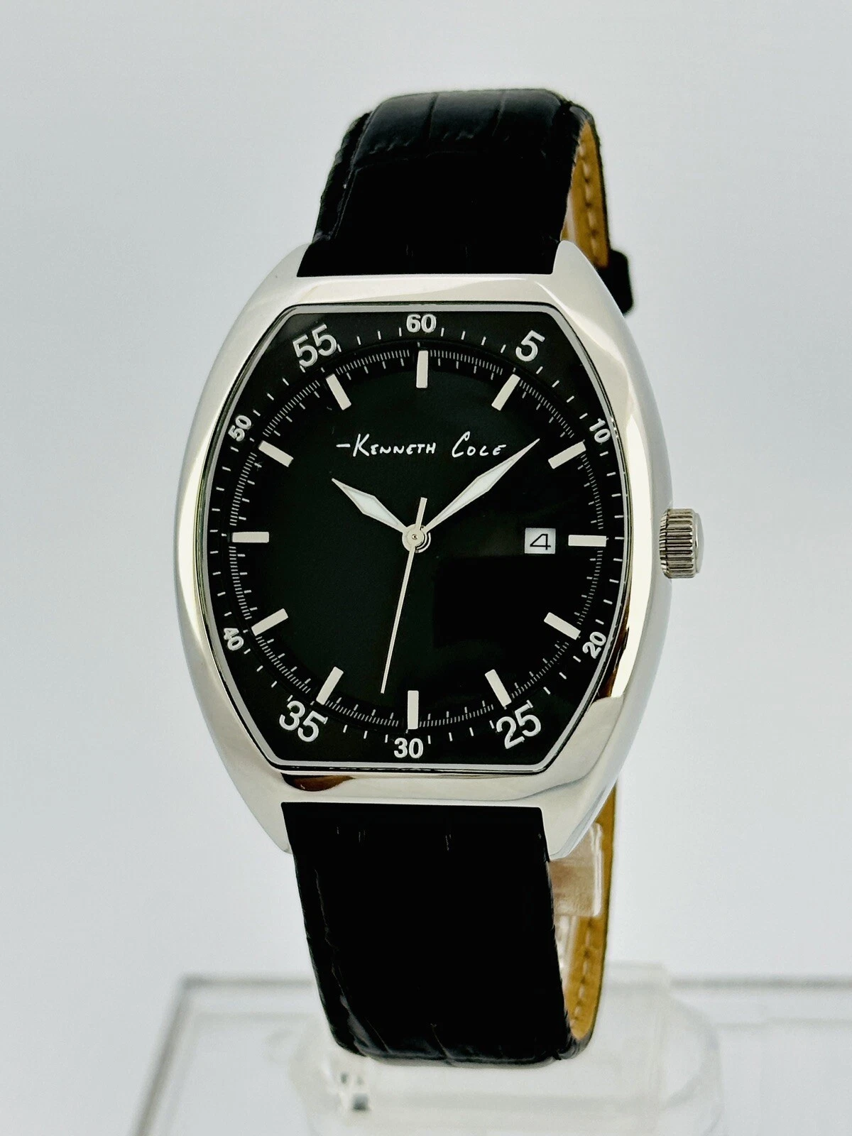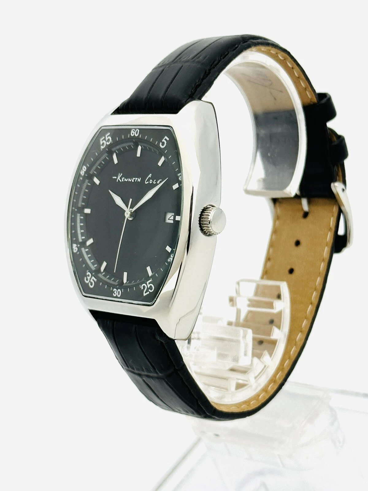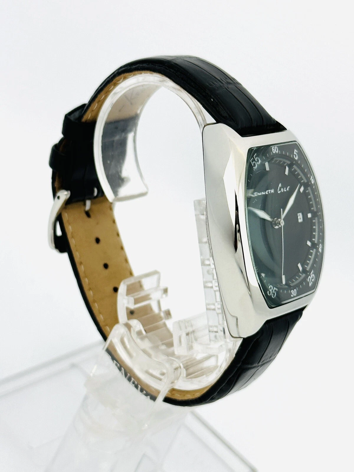 Kenneth Cole KC1227 Tonneau / Barrel Shape Case Black Leather Strap Watch