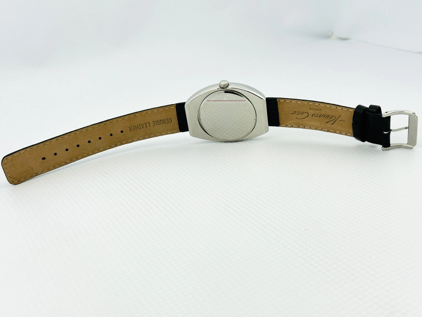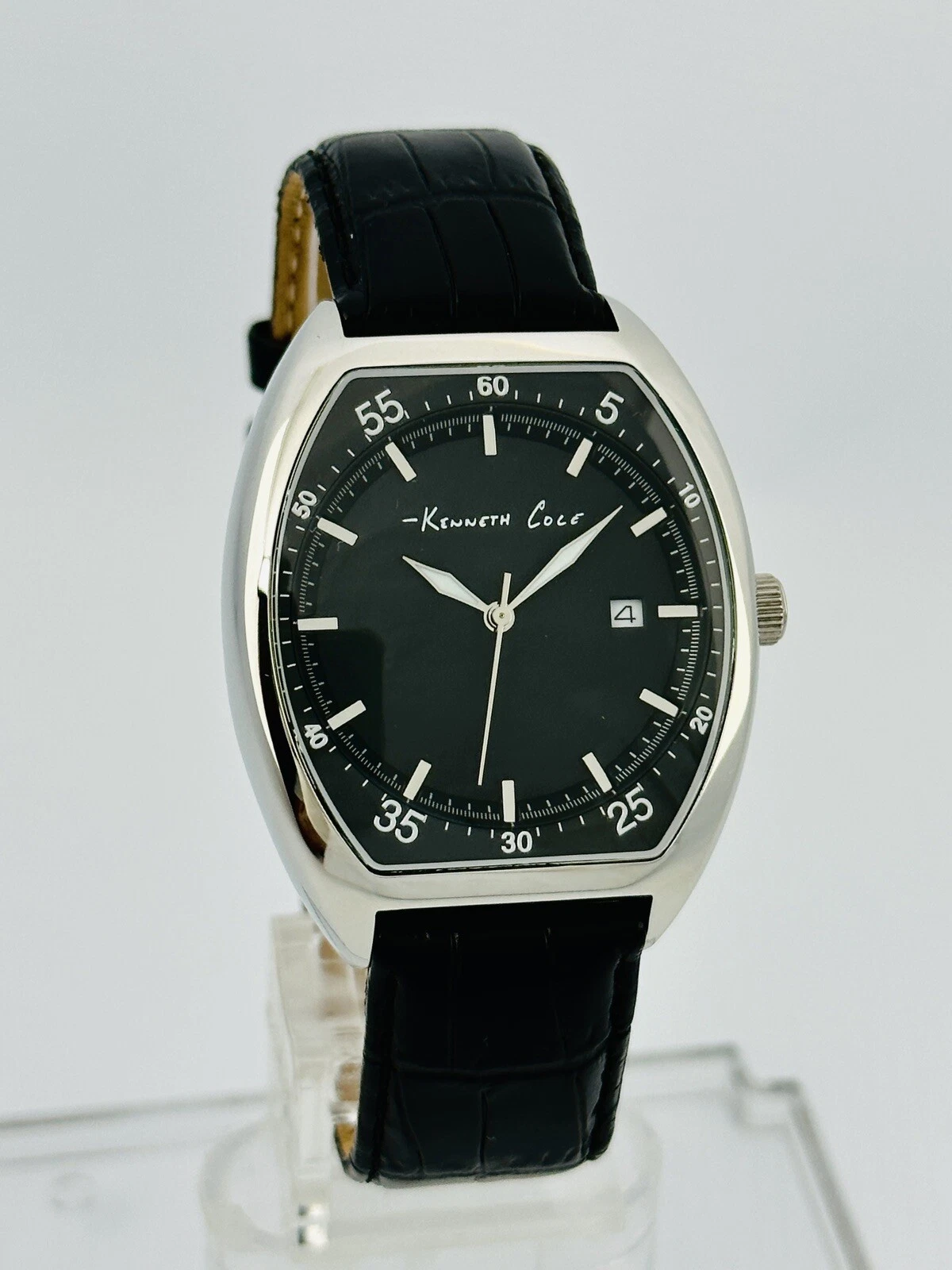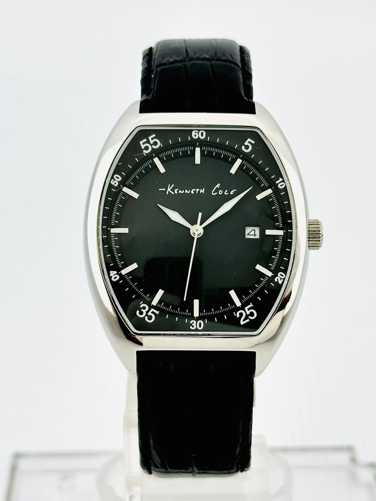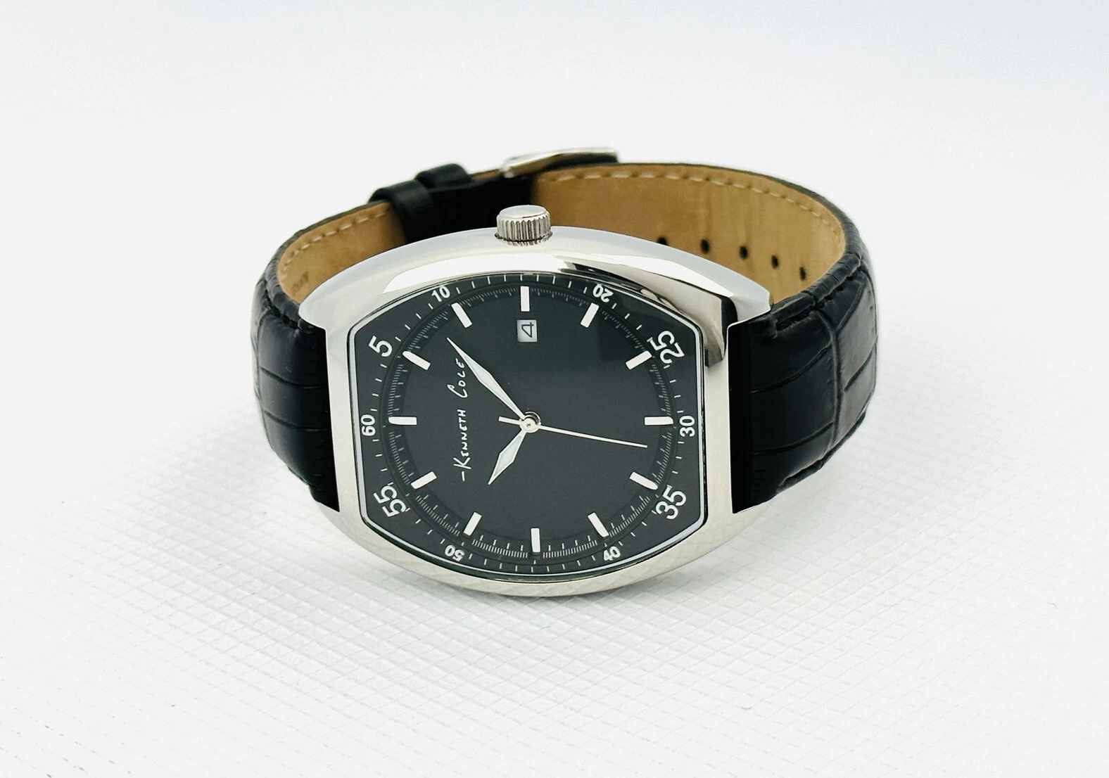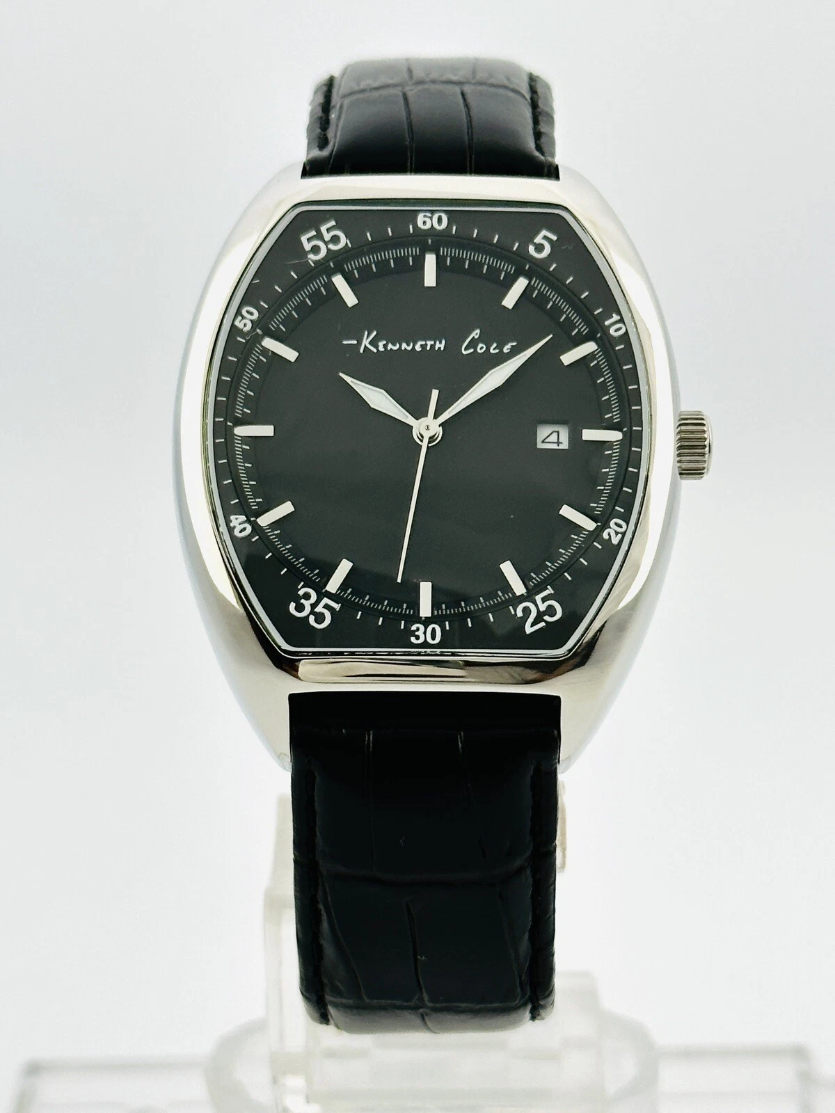 Kenneth Cole KC1227 Tonneau / Barrel Shape Case Black Leather Strap Watch
