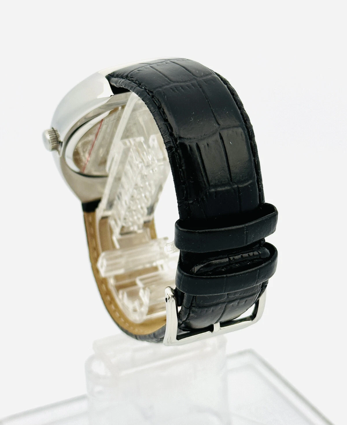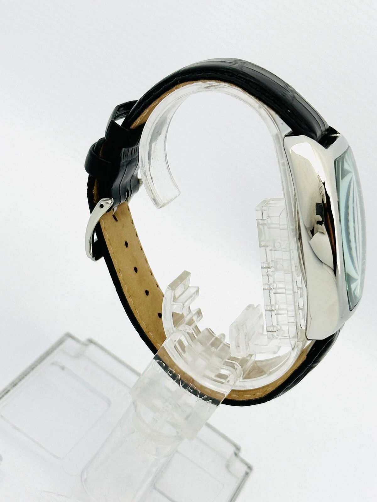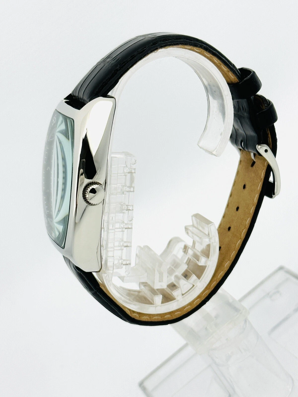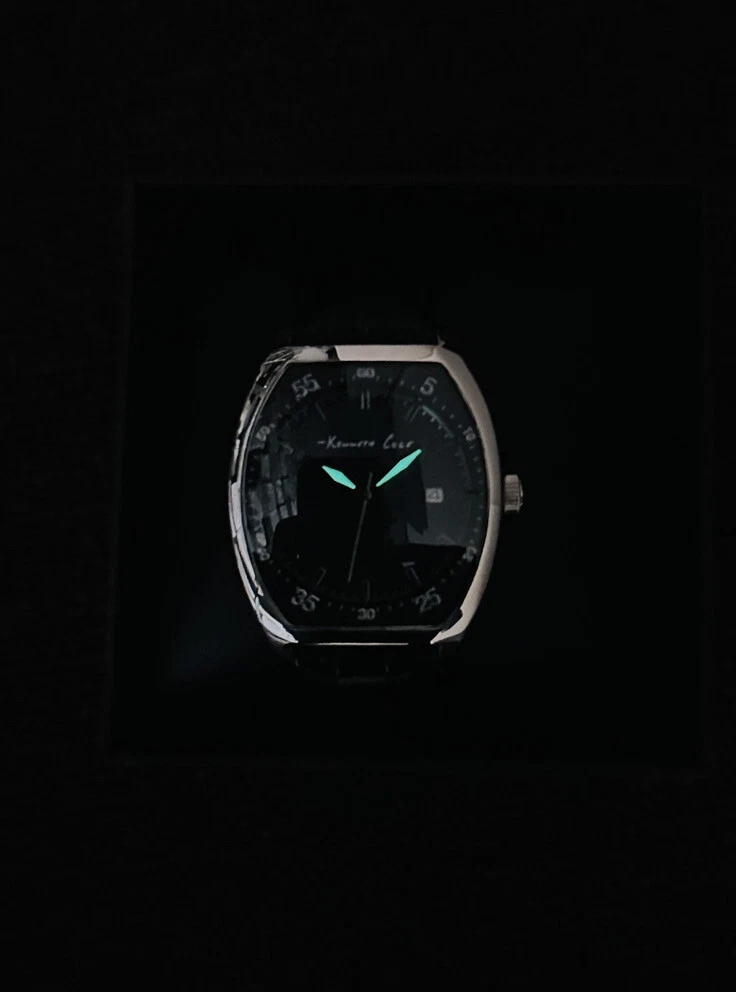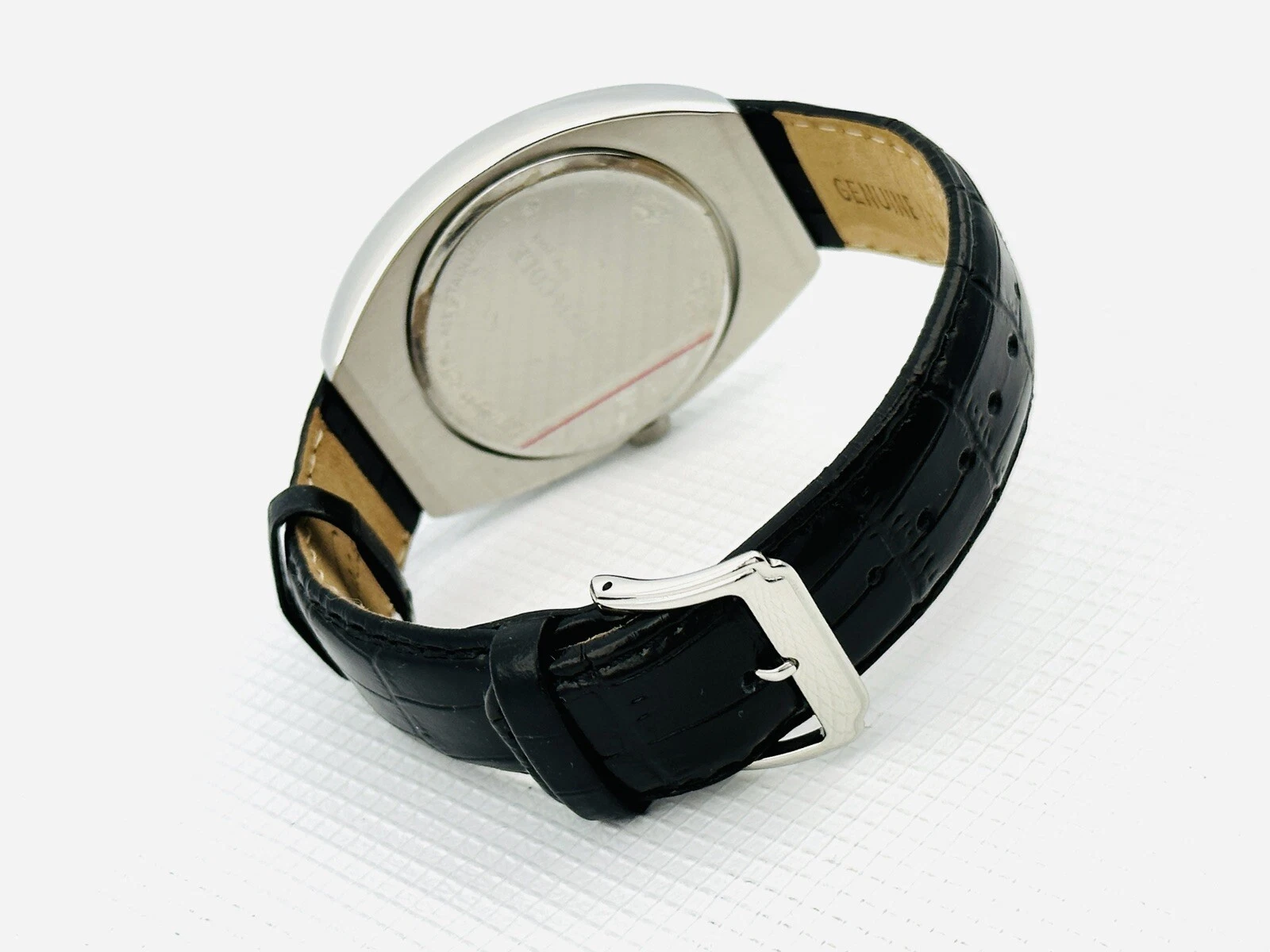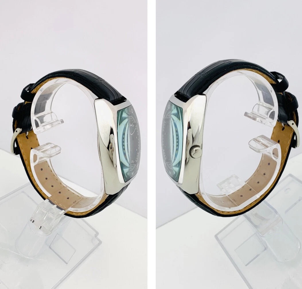 Kenneth Cole KC1227 Tonneau / Barrel Shape Case Black Leather Strap Watch