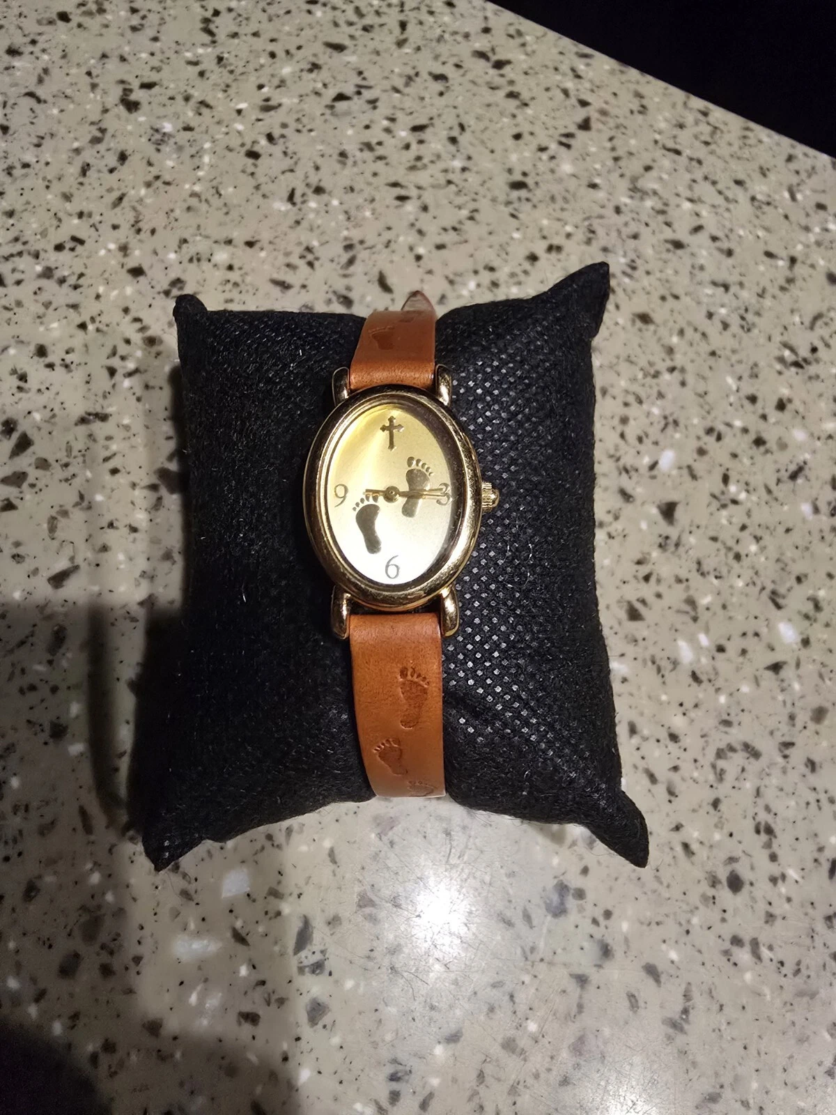 Ladies Footprints In The Sand Cross I Carried You Goldtone Watch New Battery