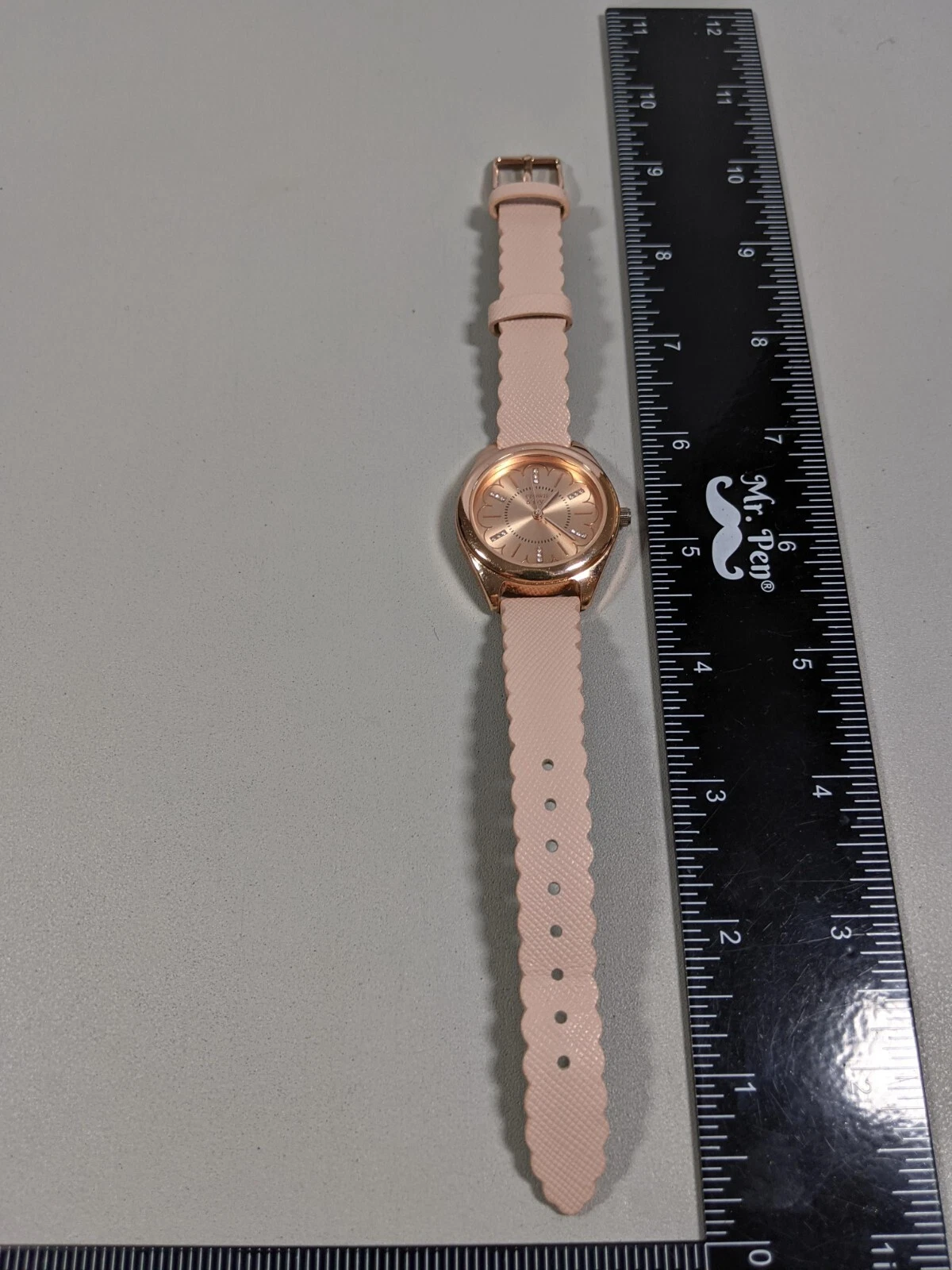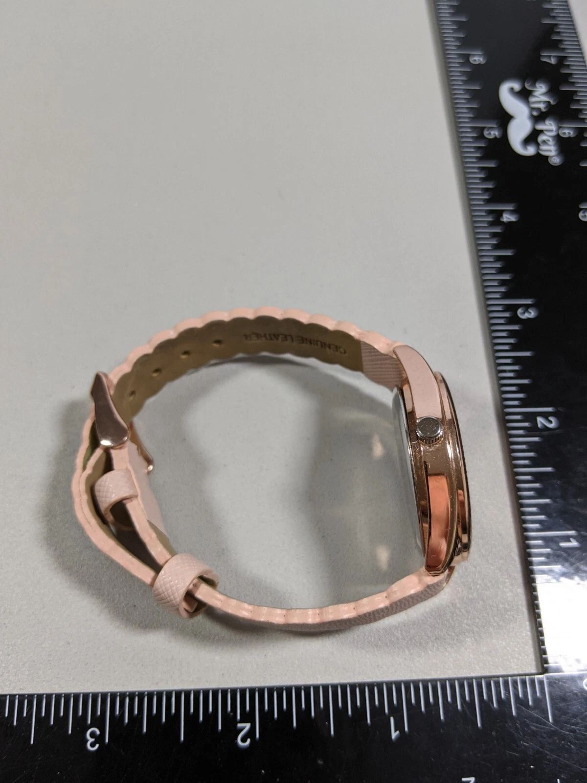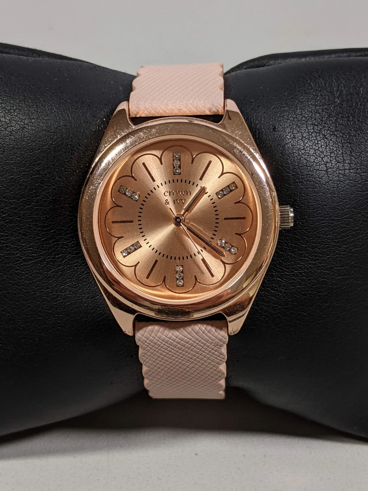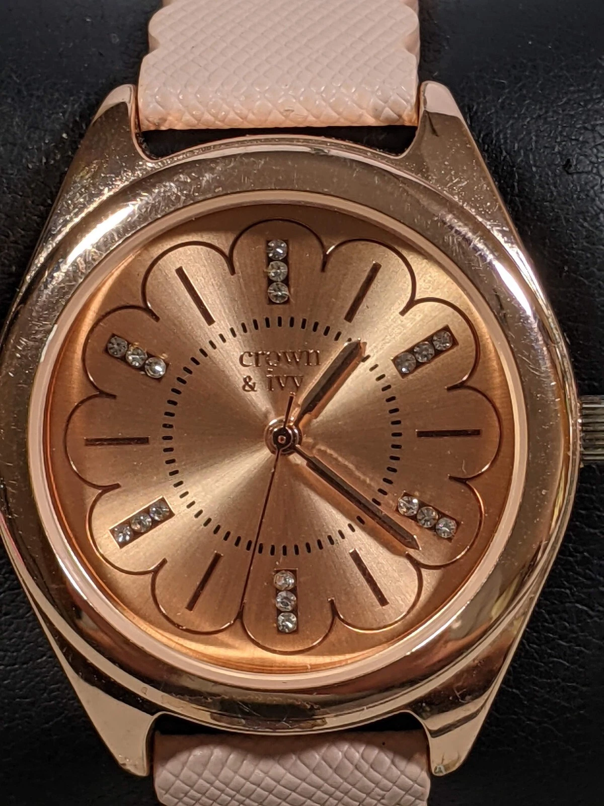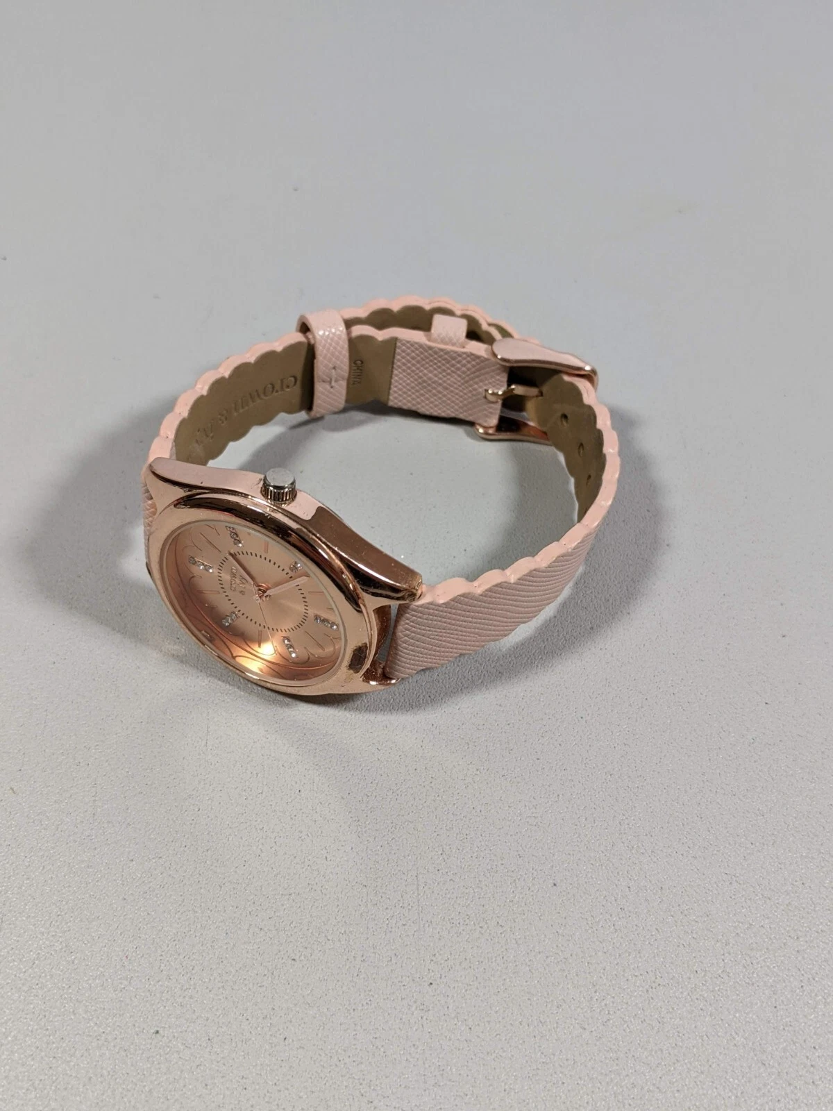 Crown & Ivy Rose Gold Tone Dial Round Case 34 mm Leather Band Watch