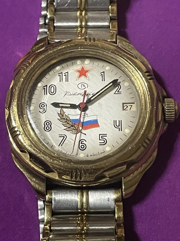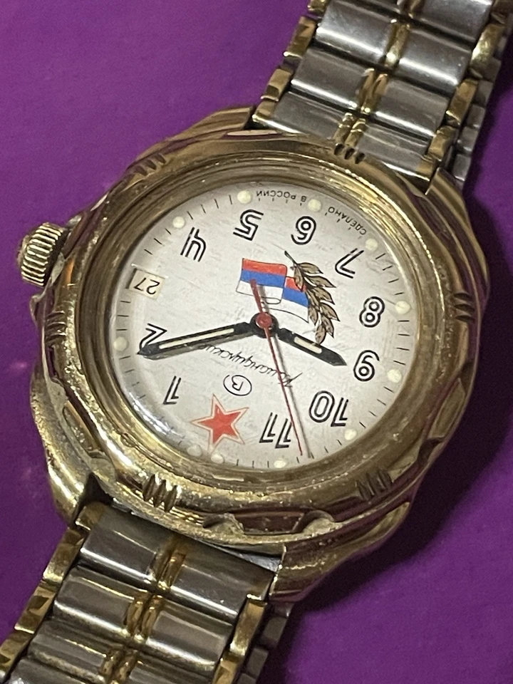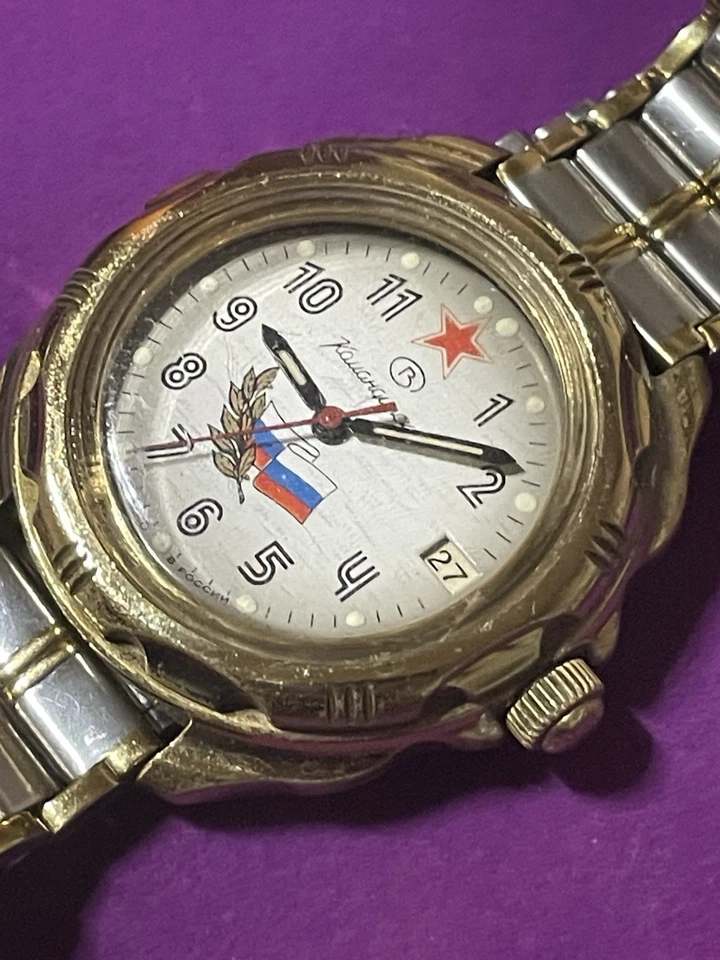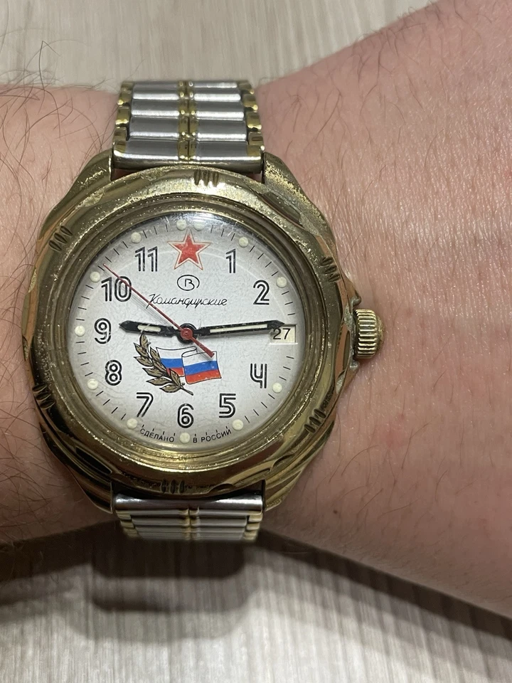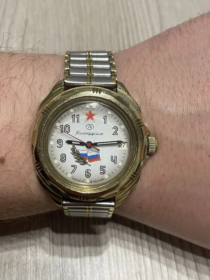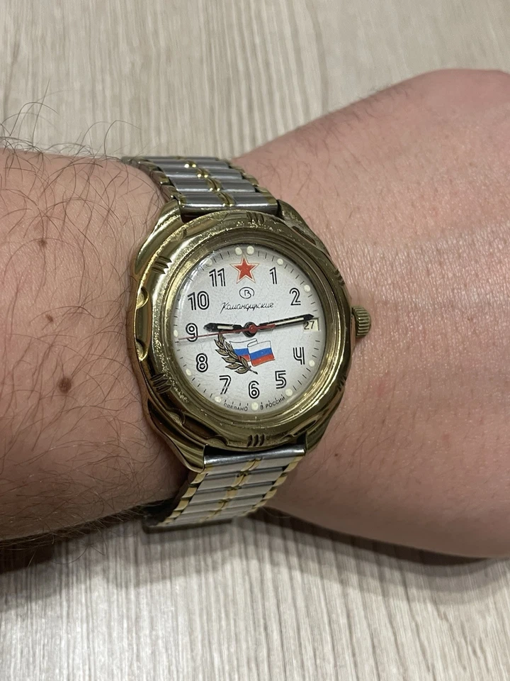 USSR Russian Mechanical Wristwatch Wostok Komandirskie 2414 Russia Flag