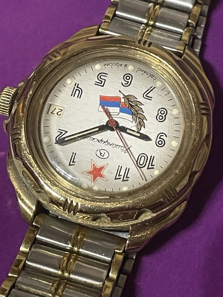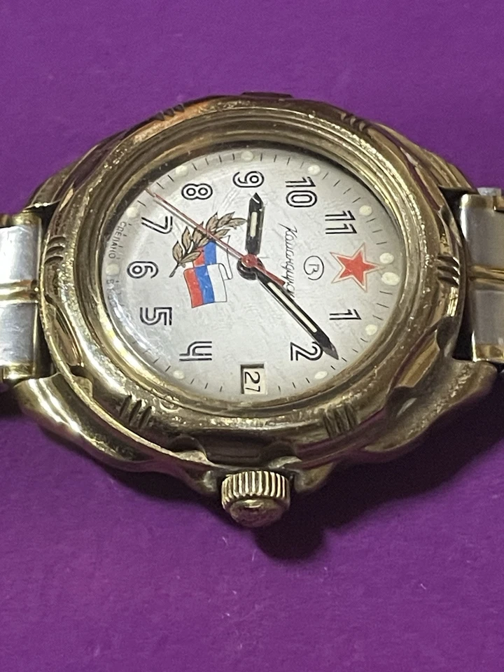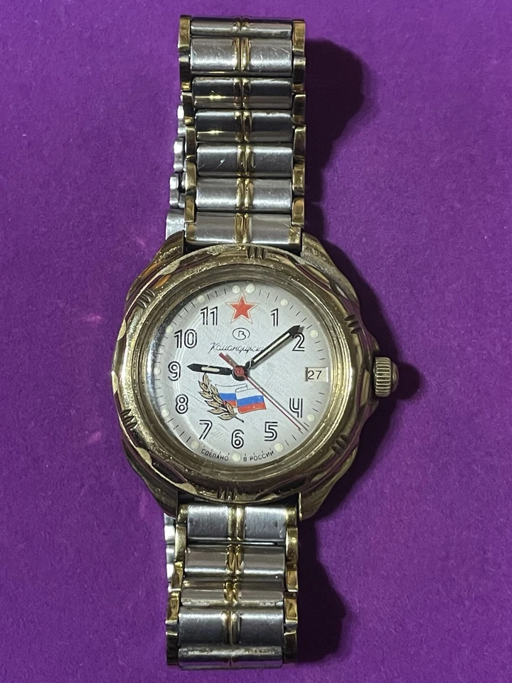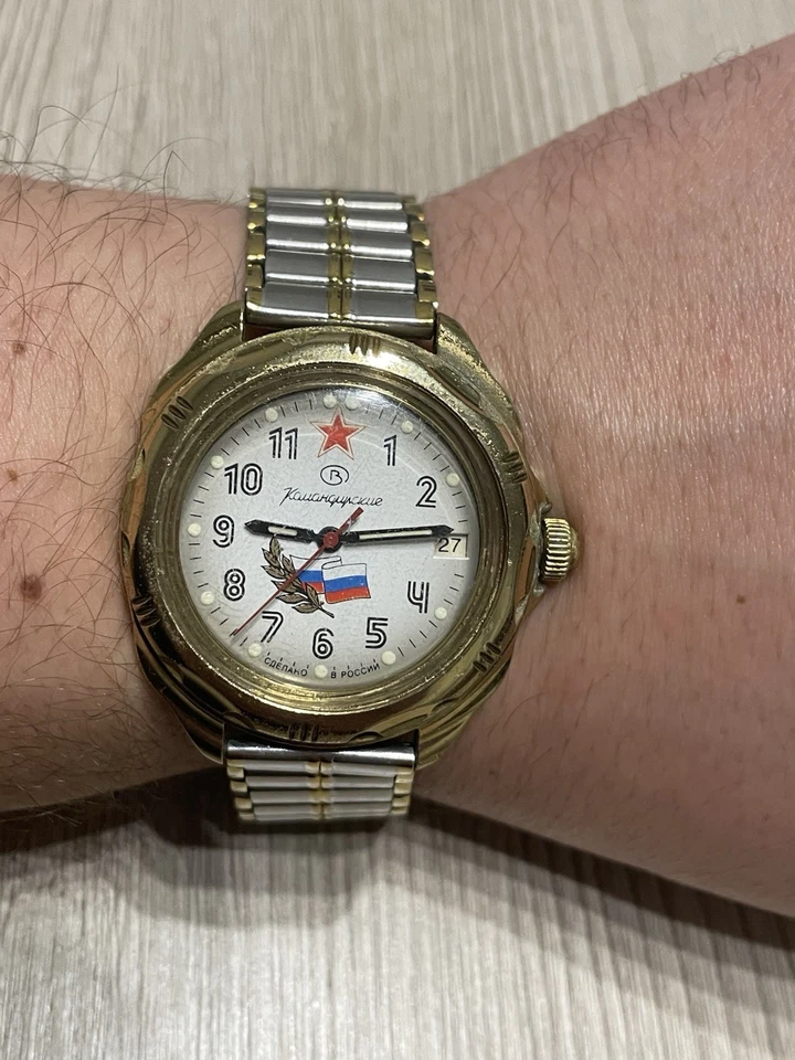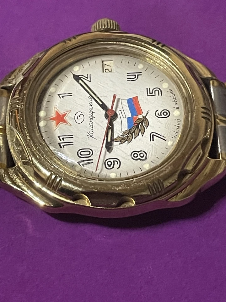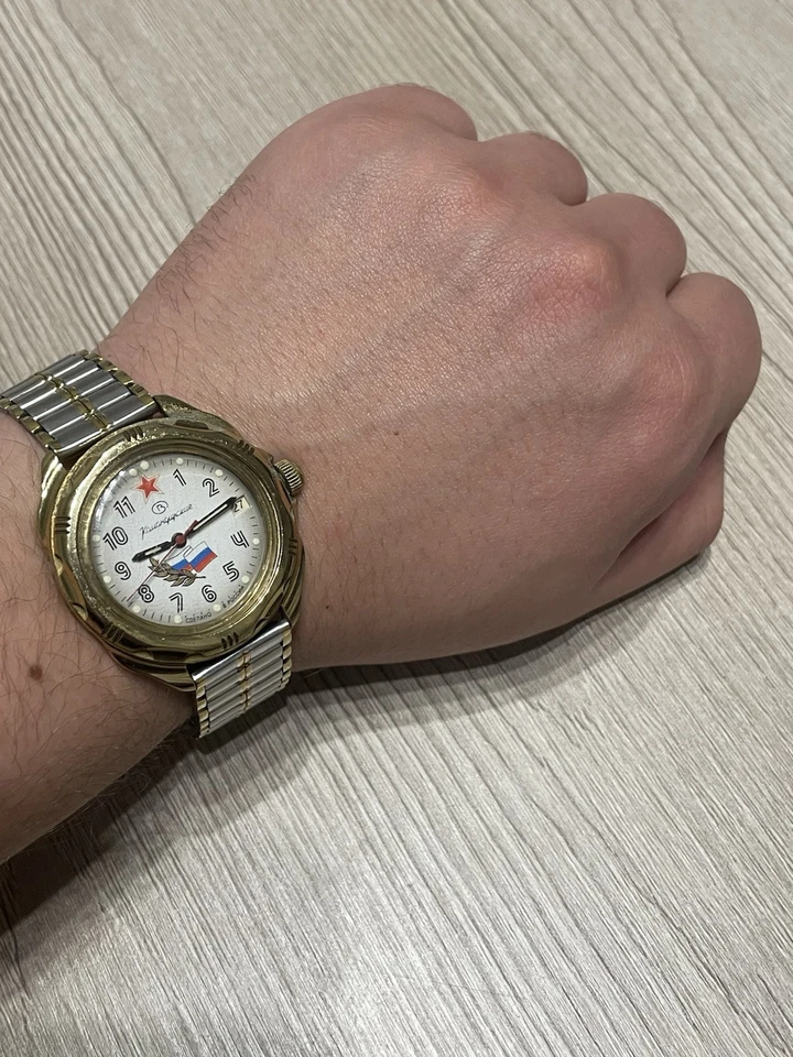 USSR Russian Mechanical Wristwatch Wostok Komandirskie 2414 Russia Flag