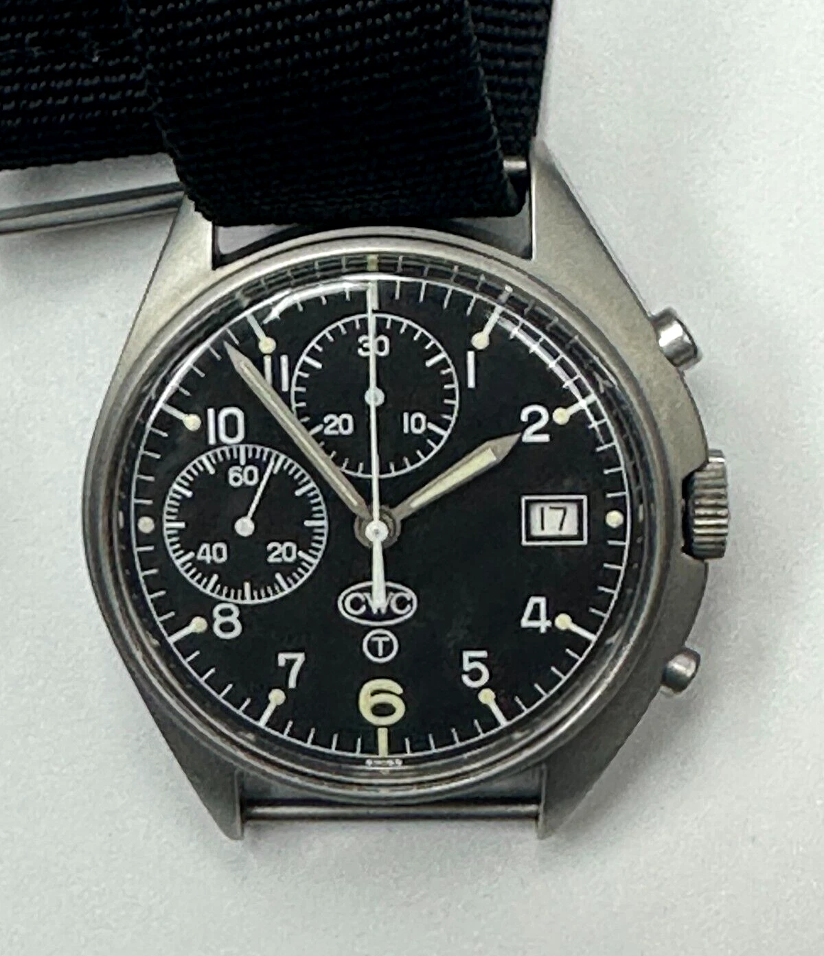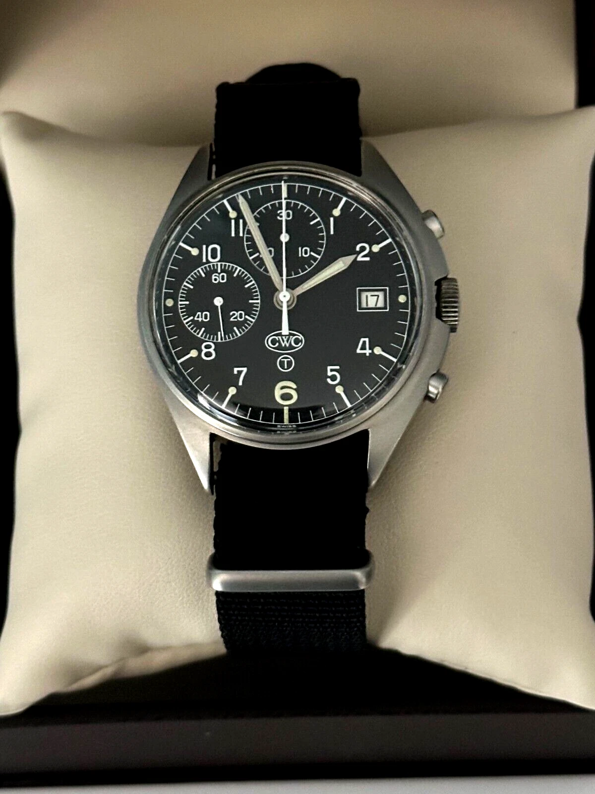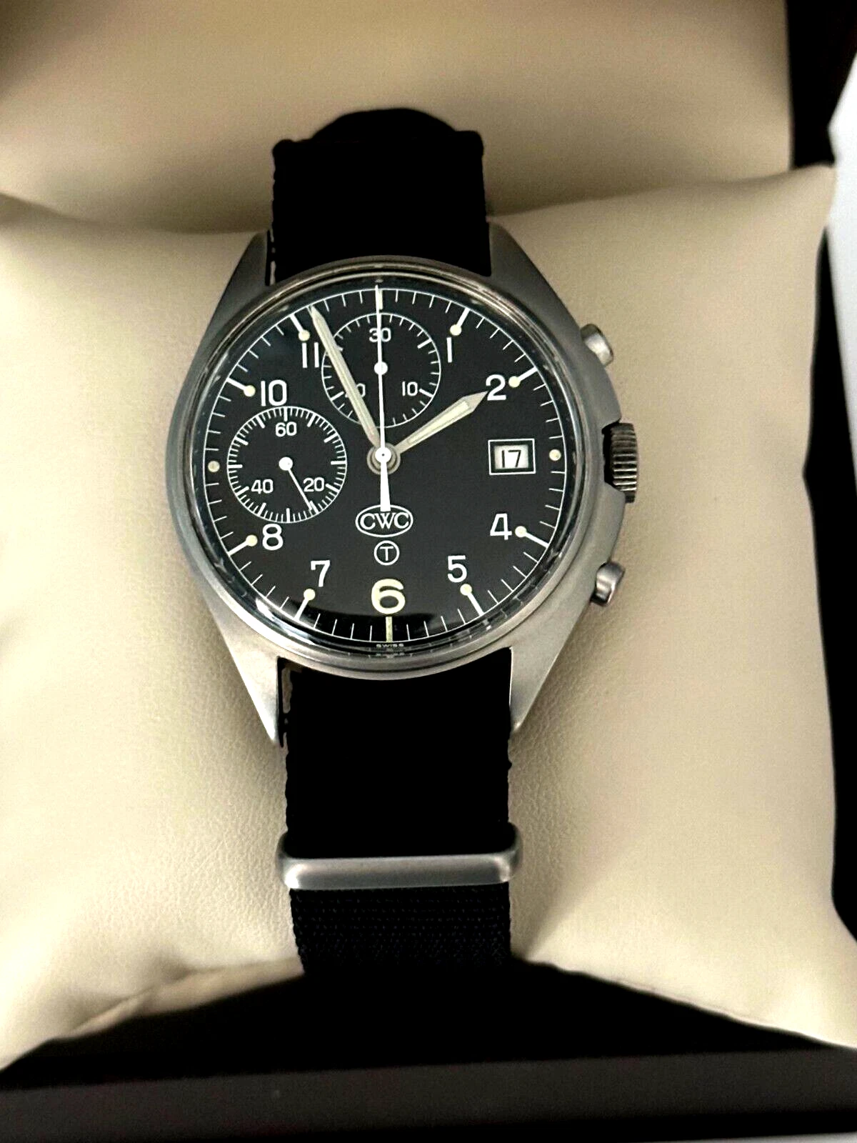 CWC Chronograph Date Cal.7765 Black Dial Stainless Steel Men's Watch WARRANTY