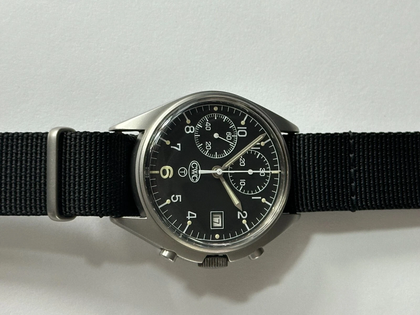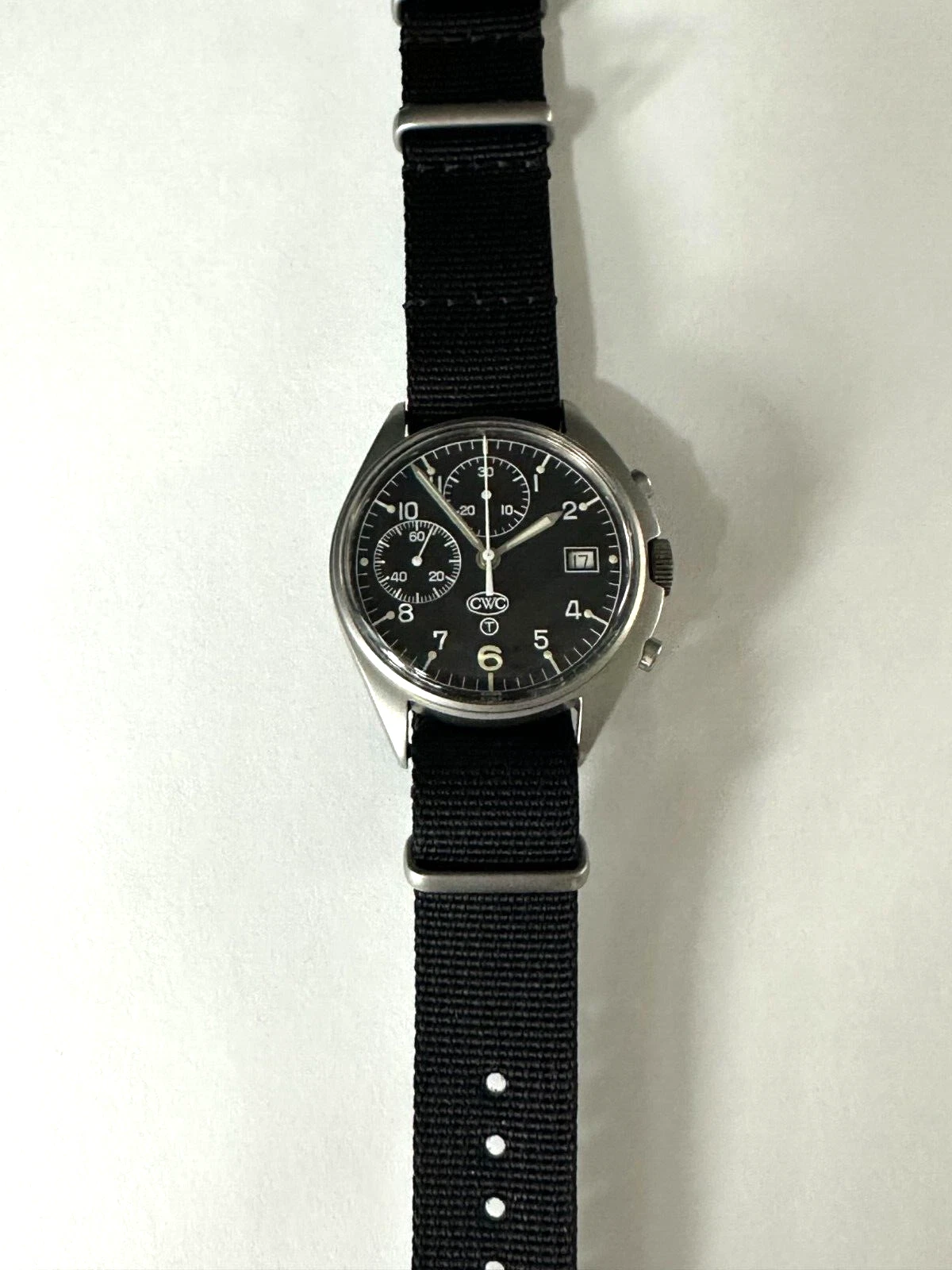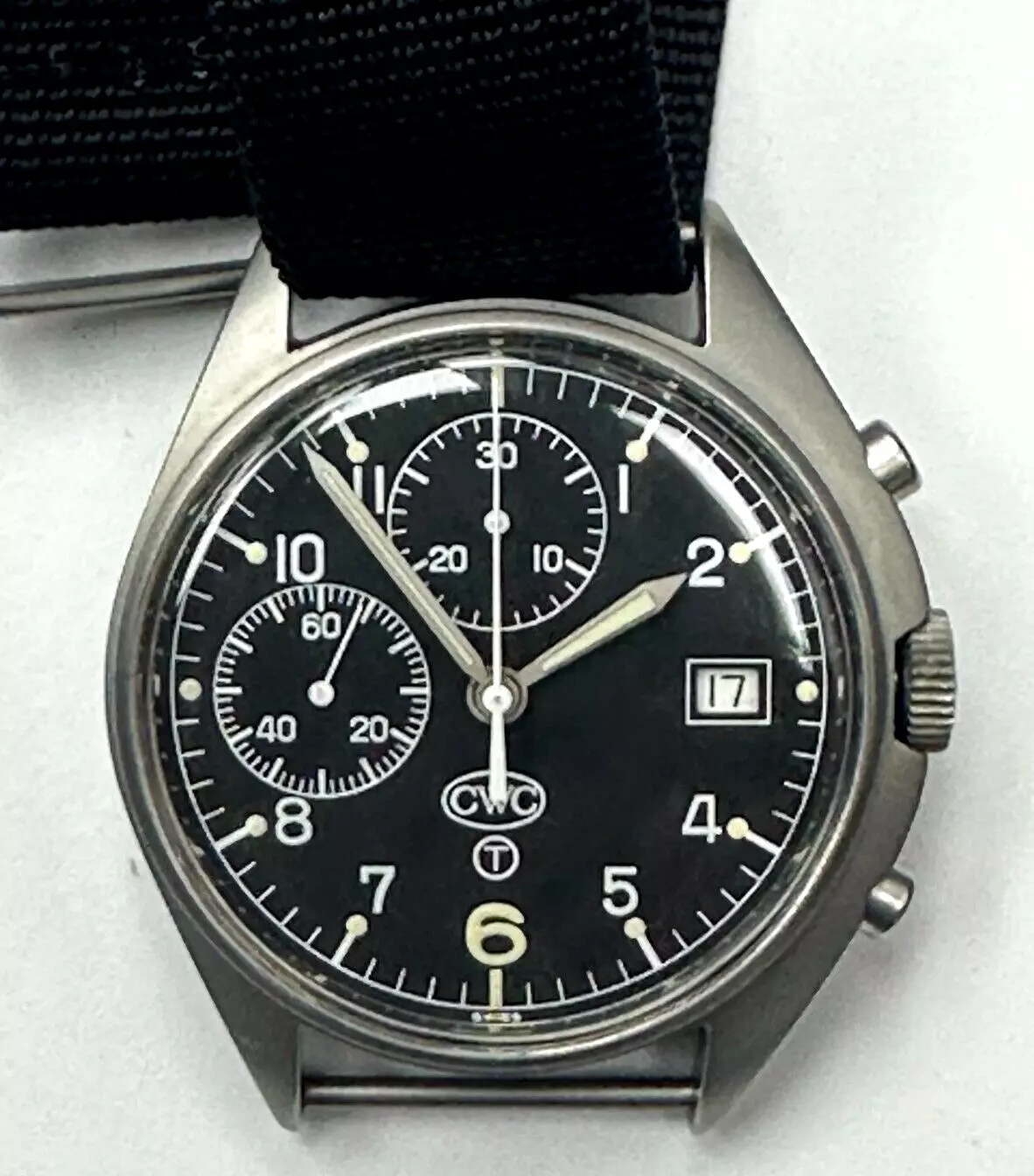 CWC Chronograph Date Cal.7765 Black Dial Stainless Steel Men's Watch WARRANTY