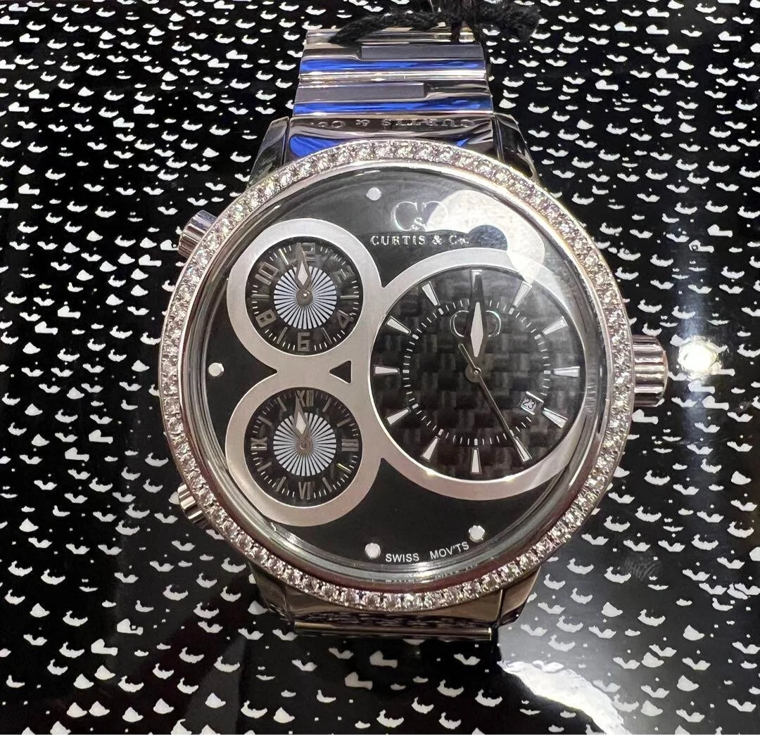 CURTIS & CO diamond bezel wristwatch 57mm quartz limited black men's analog Used