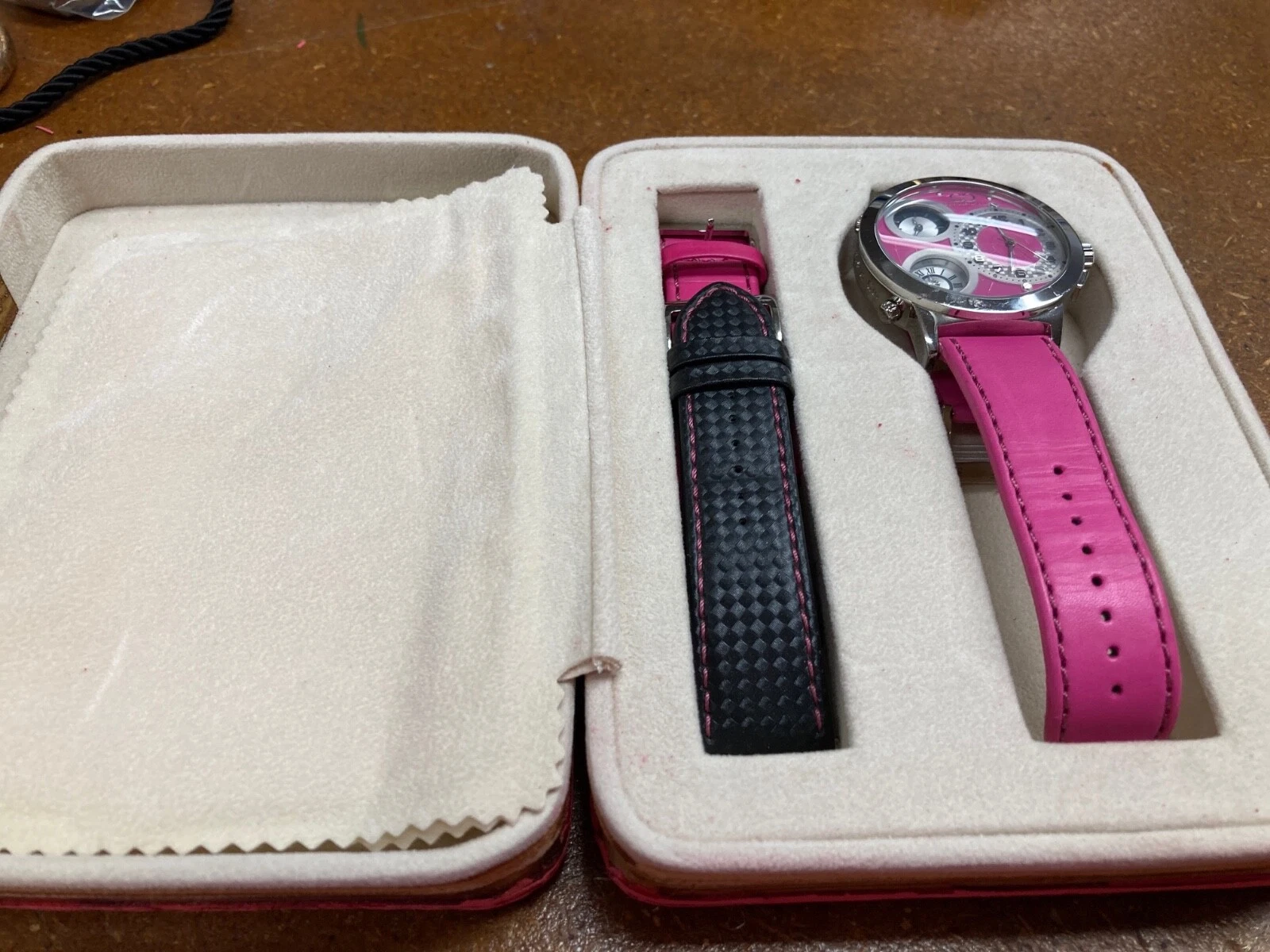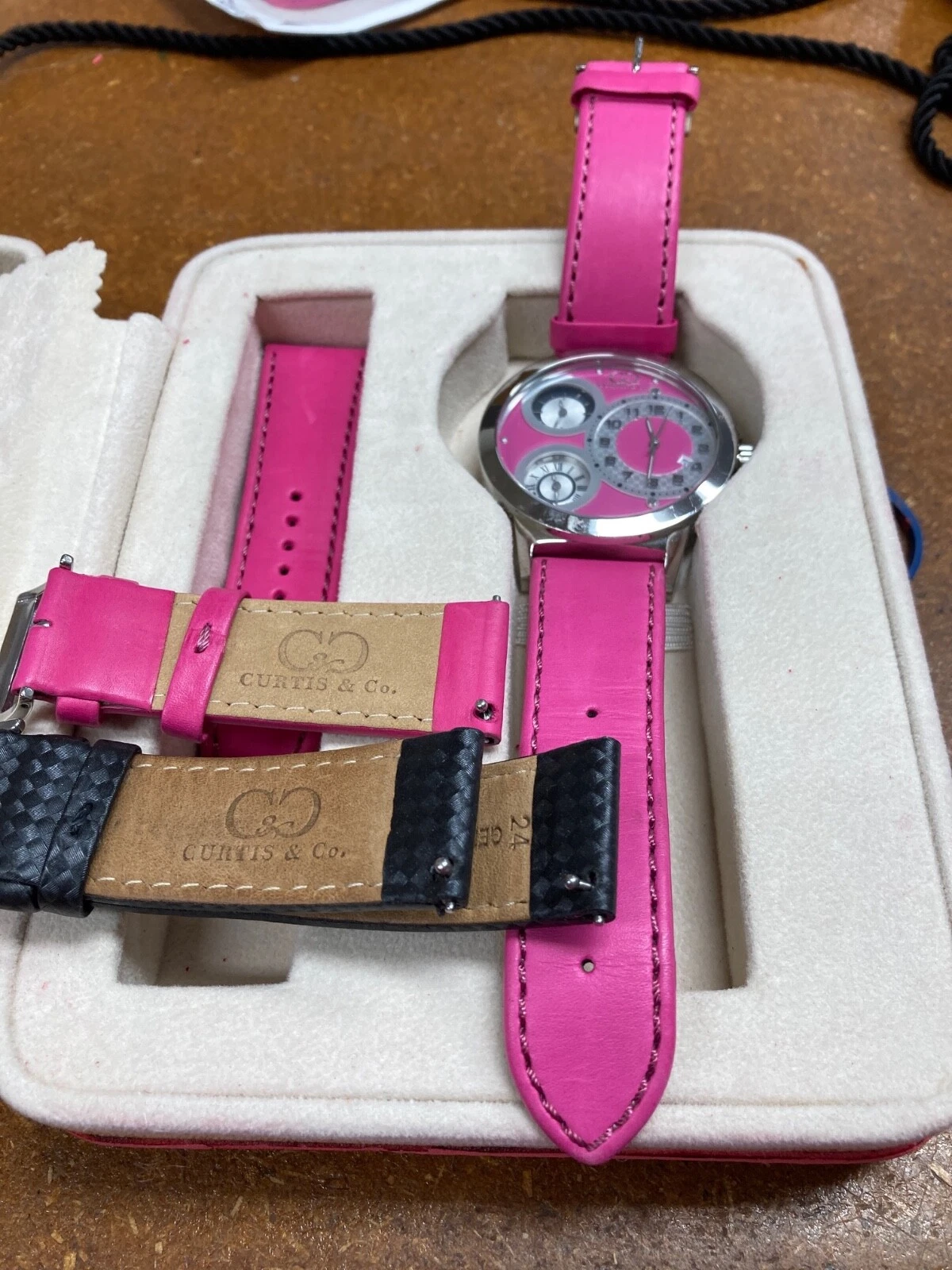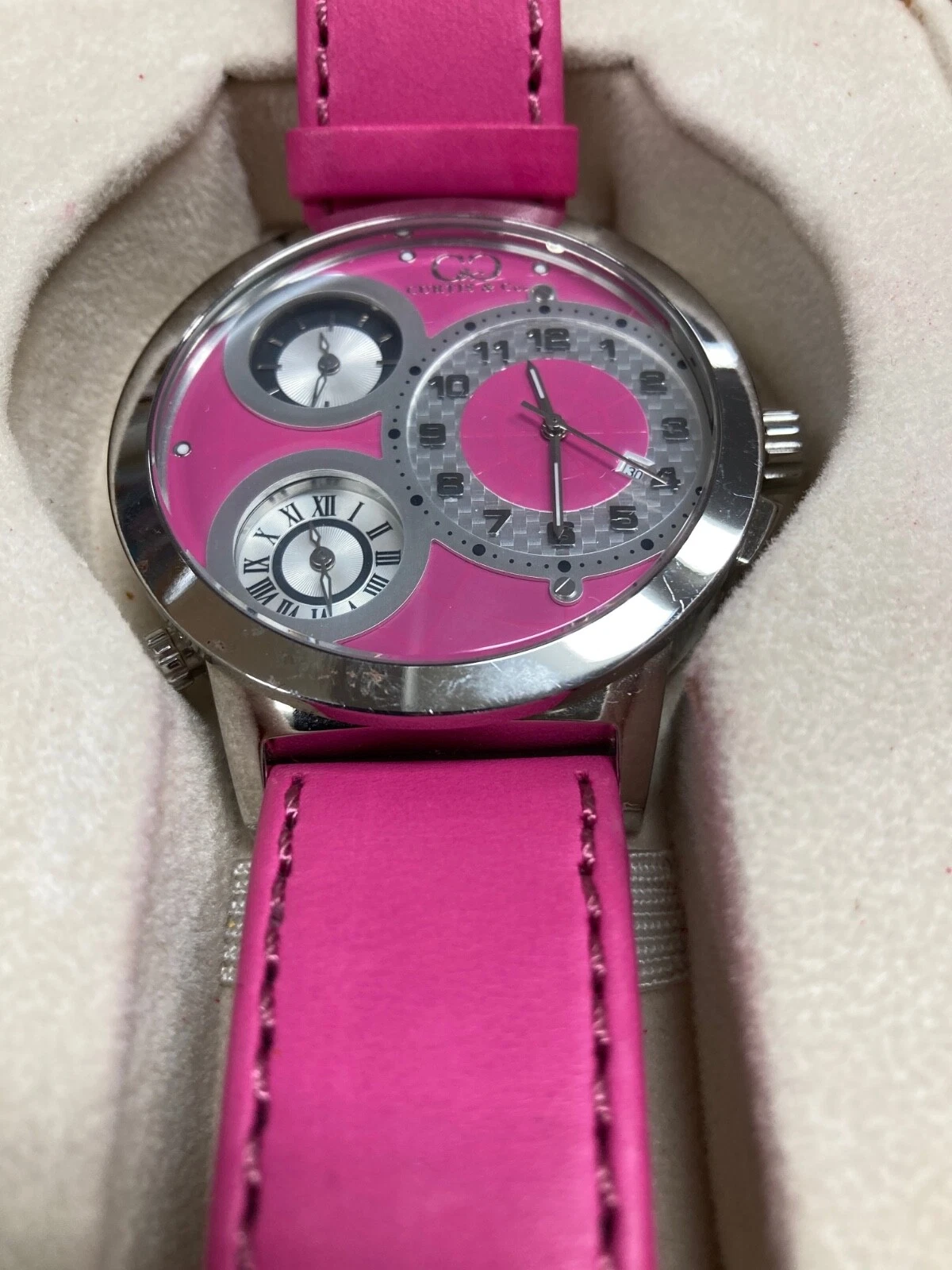 Curtis & Co 50mm Big Time World 3-Time Zone Wrist Watch Pink with 2 Extra Bands