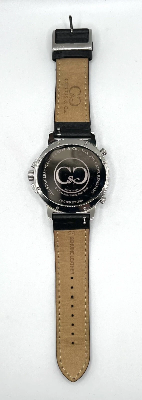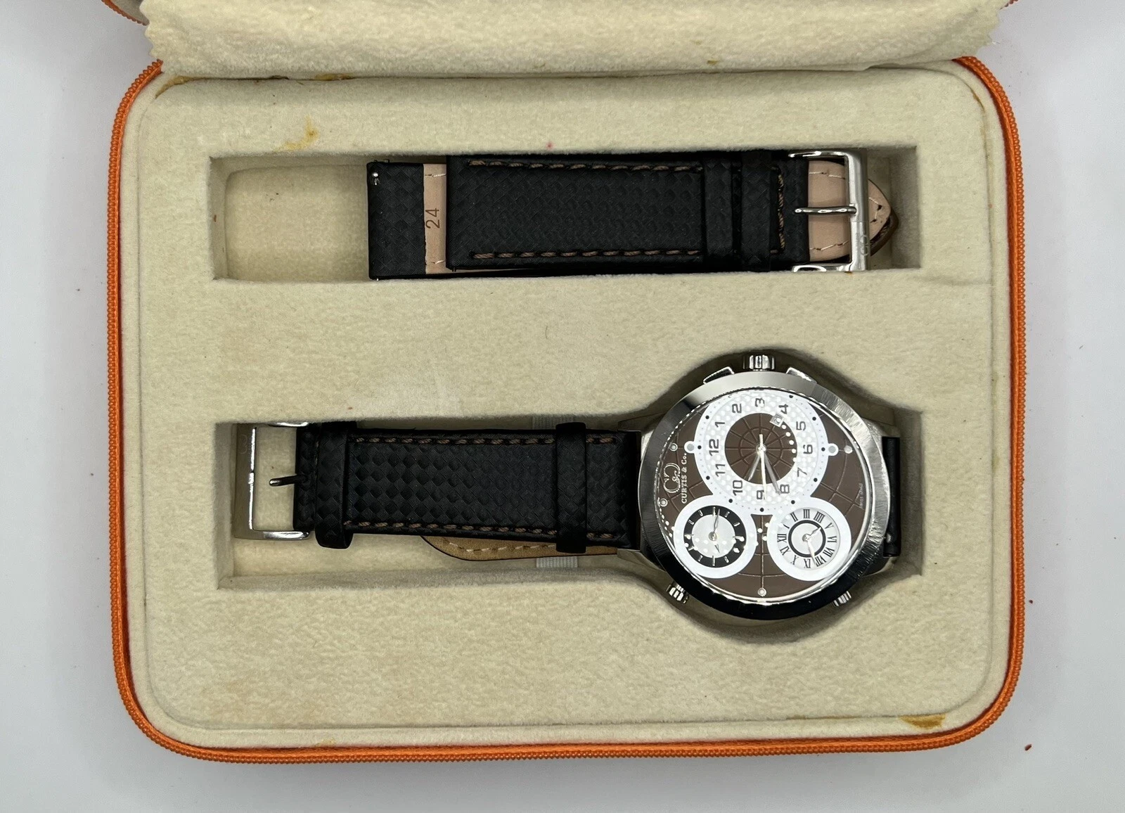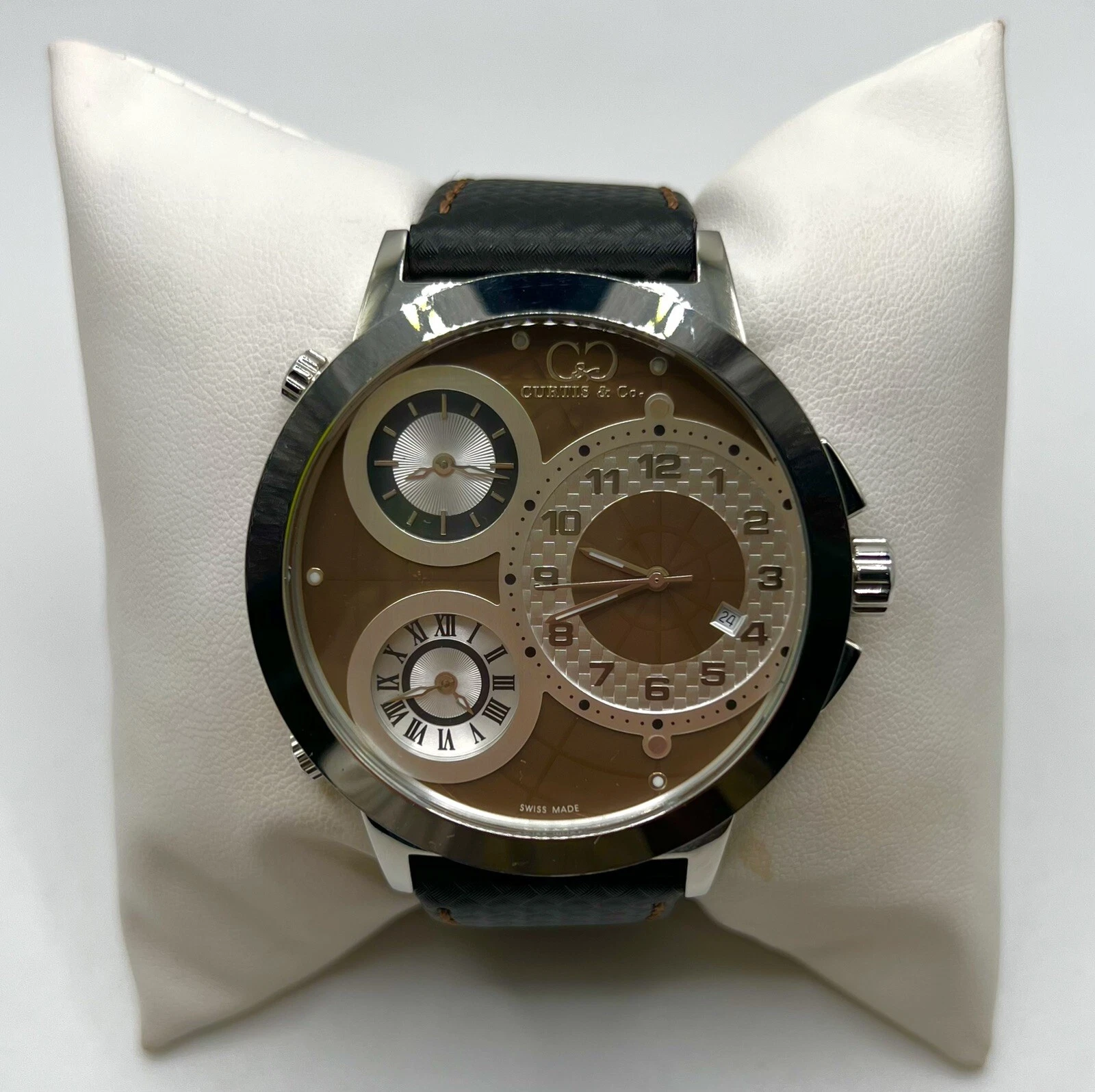 Curtis & Co Stainless Steel Big Time World 3 Time Zone Watch Brown