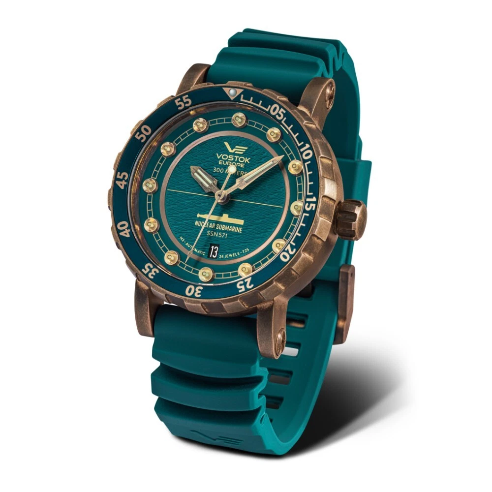 Vostok Europe Nuclear Submarine Green Leather/Silicone Strap Men Watch