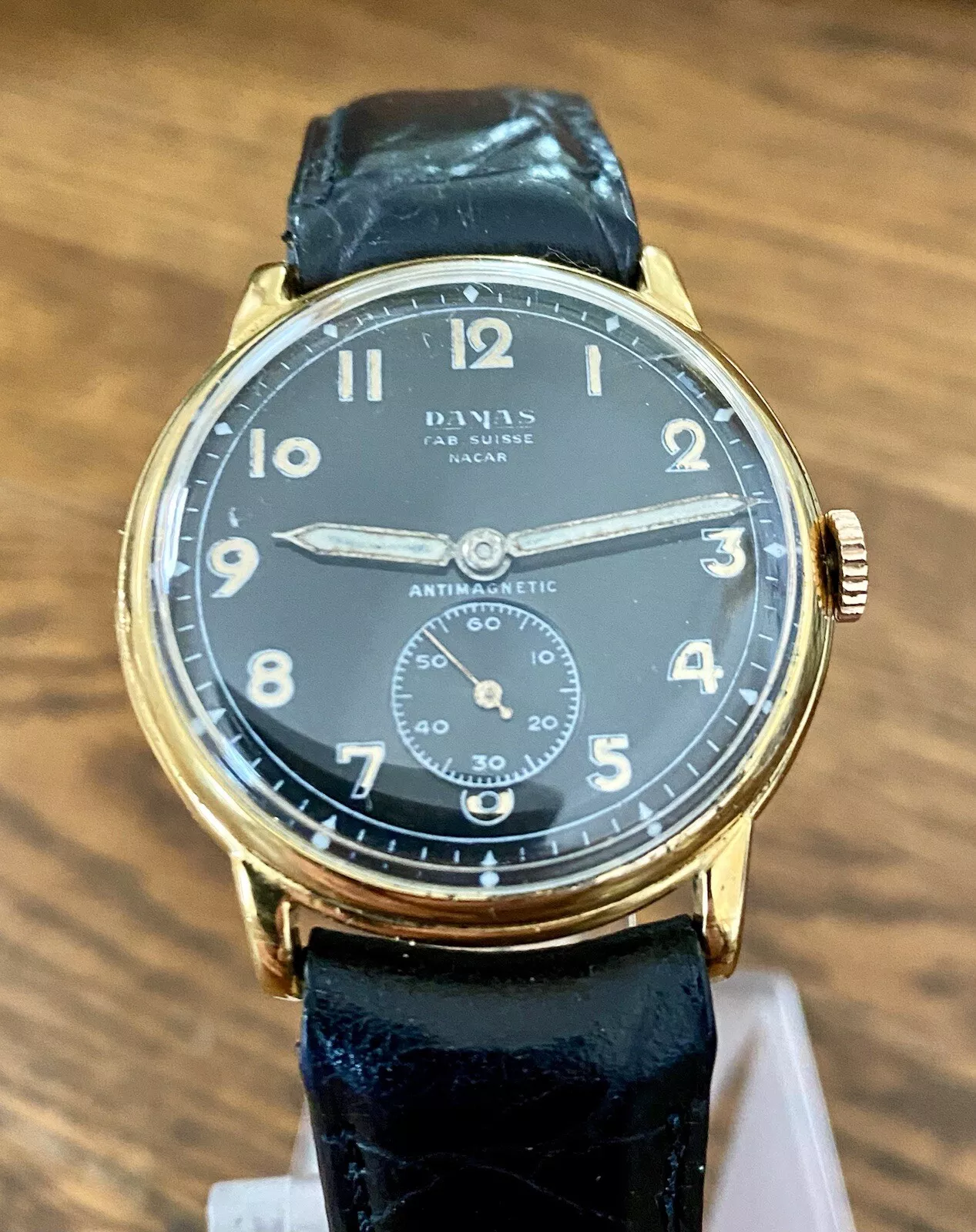 VINTAGE DAMAS RARE WW2 ERA MILITARY STYLE MEN'S SWISS WATCH 15 Jewel