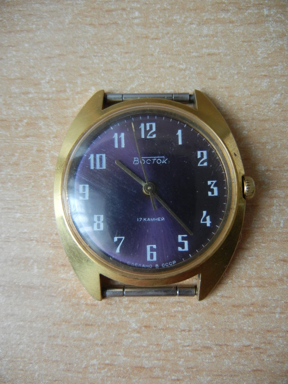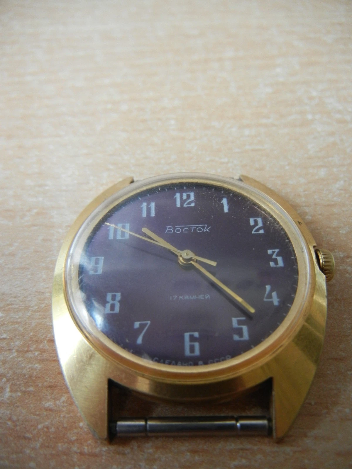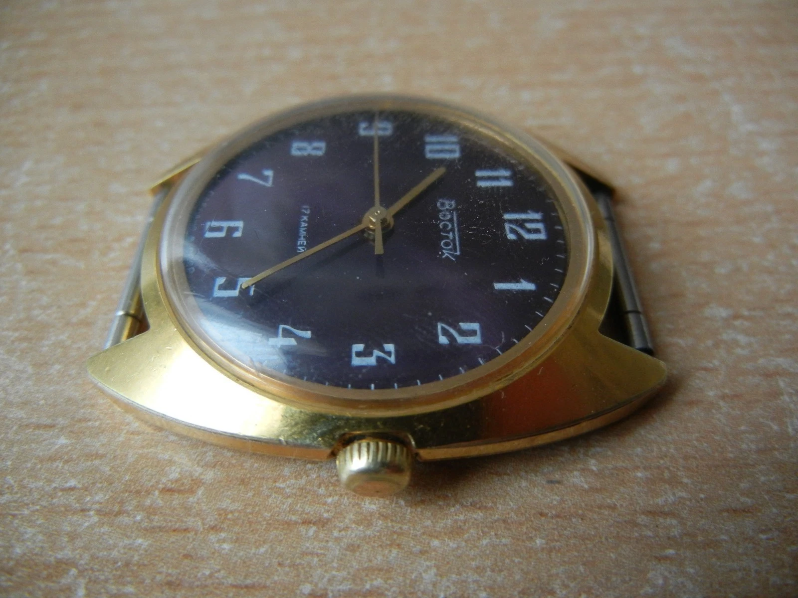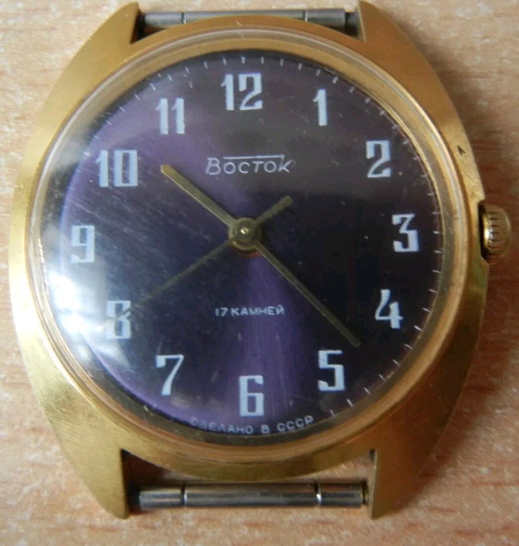 Vintage WATCH 17 j. RUSSIAN Men's Wostok 2409A violet dial Gold plated USSR СССР