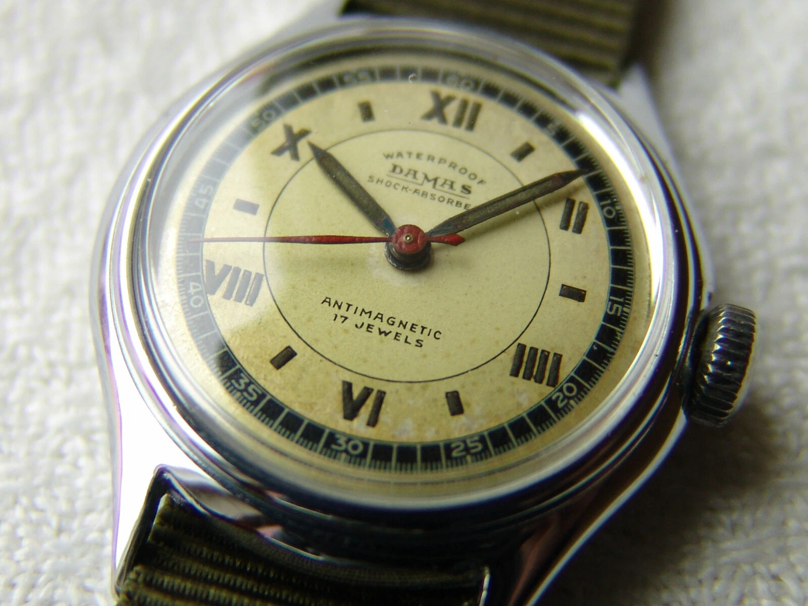 WWII ERA men's DAMAS TRAMELAN WATCH military style WRISTWATCH GOOD CONDITION
