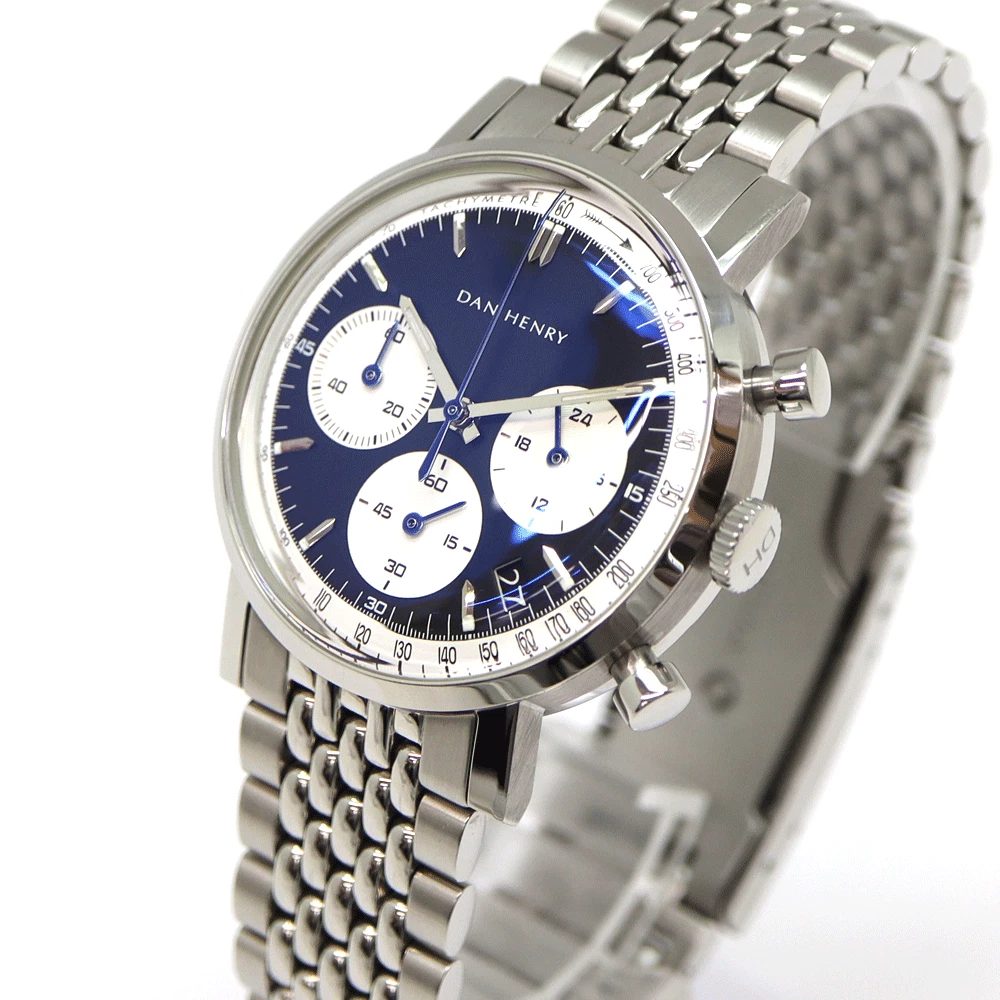 DAN HENRY Wristwatch 1964 Panda Date Quartz Black Dial Stainless Steel