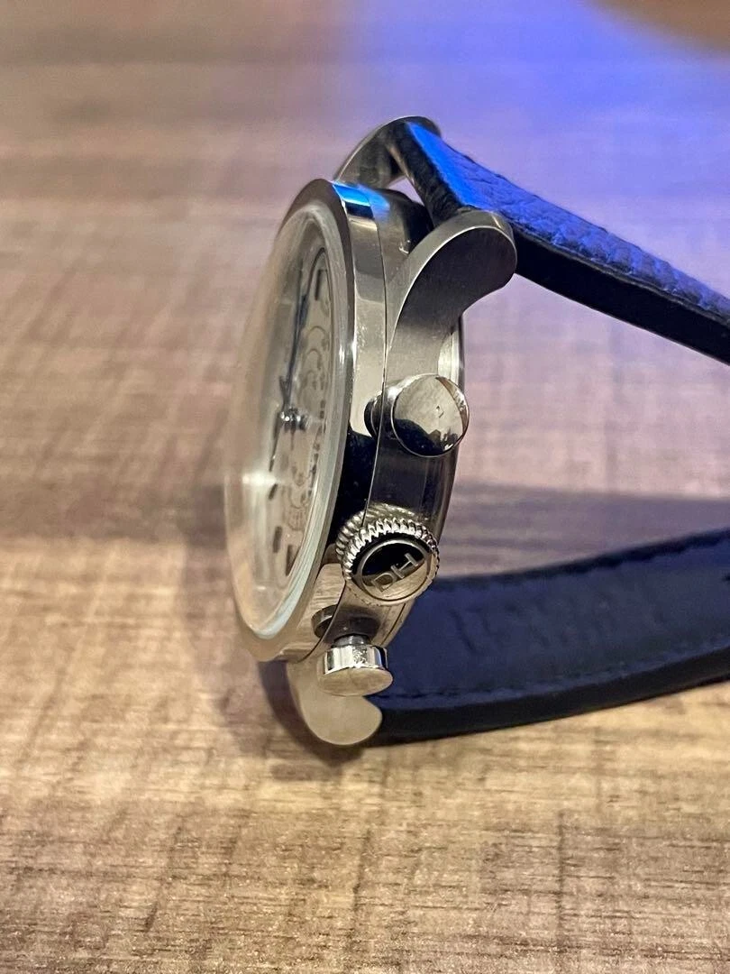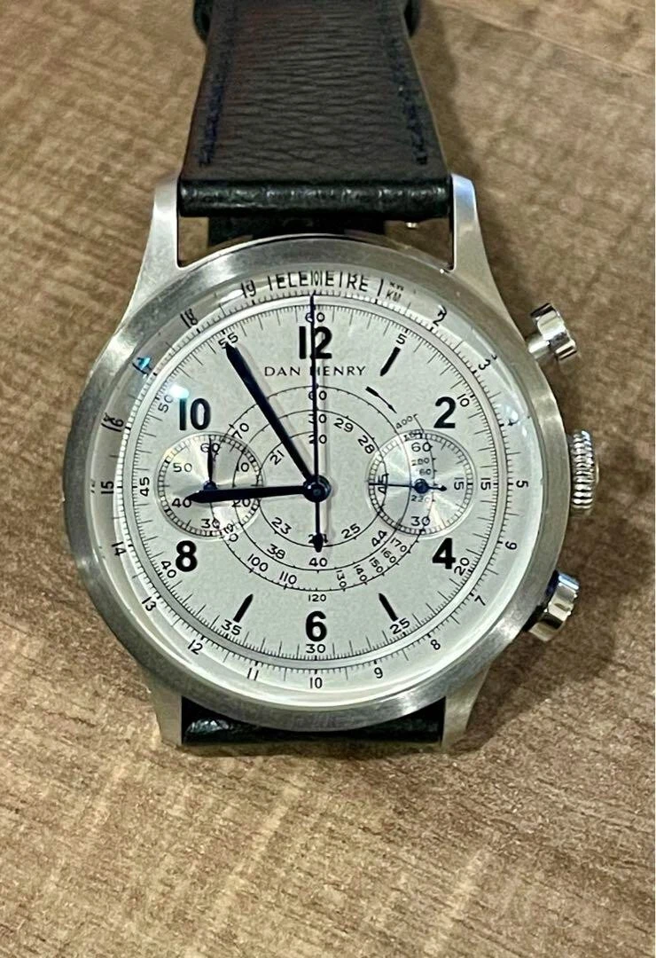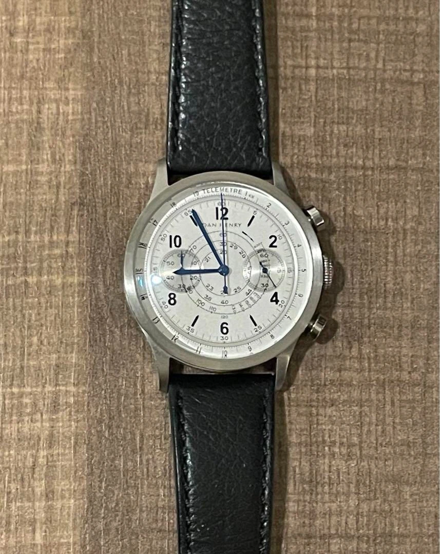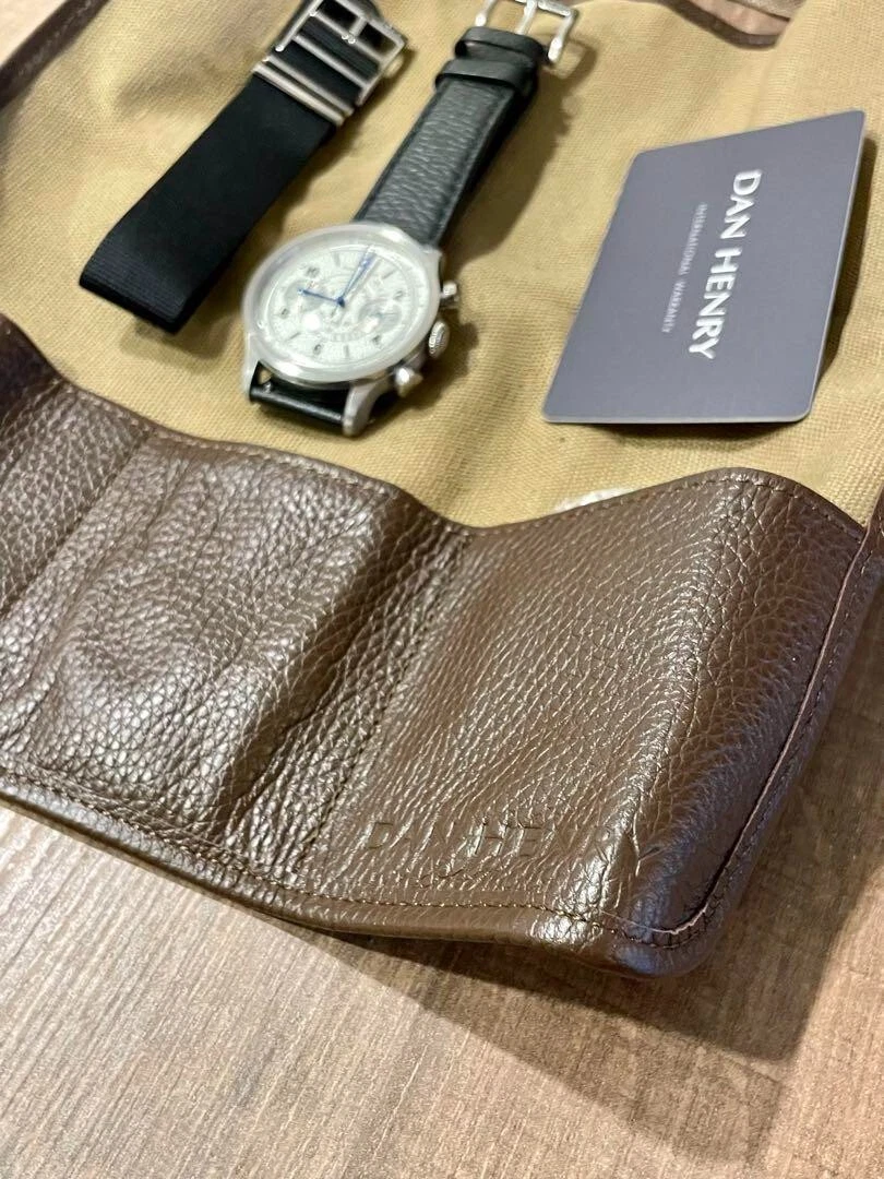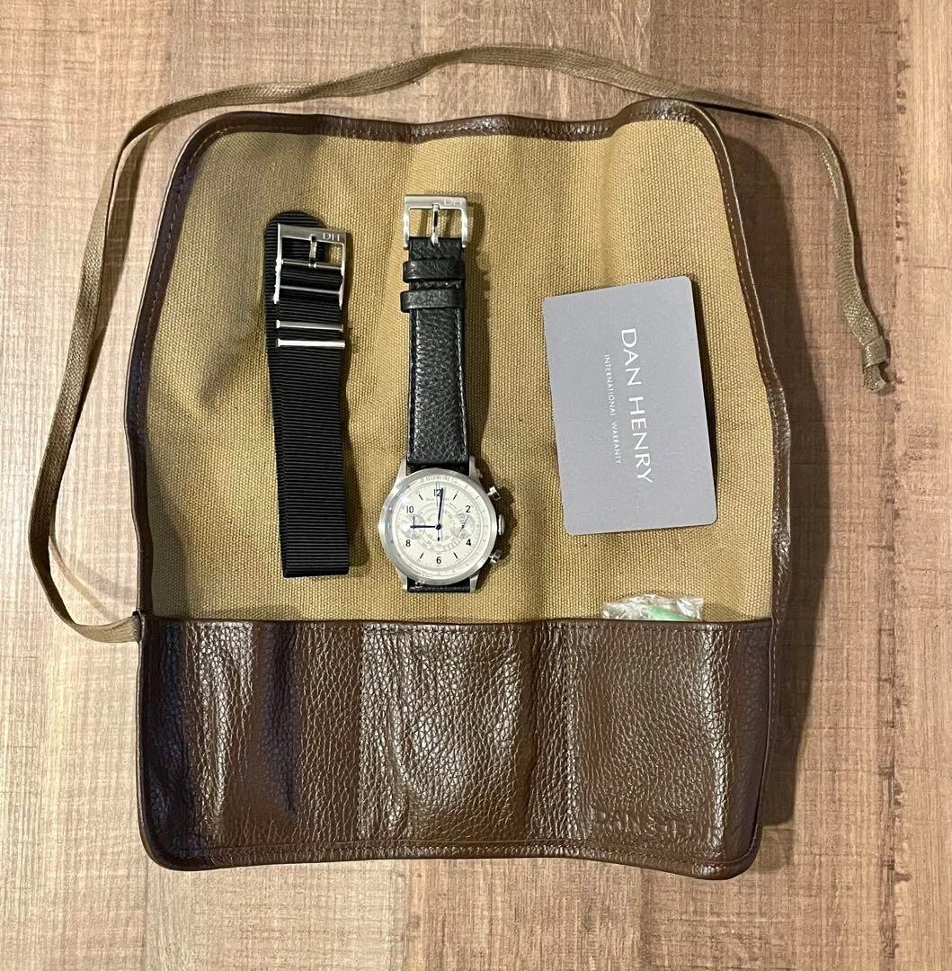 DAN HENRY 1939 41mm quartz analog watch + case, belt very good