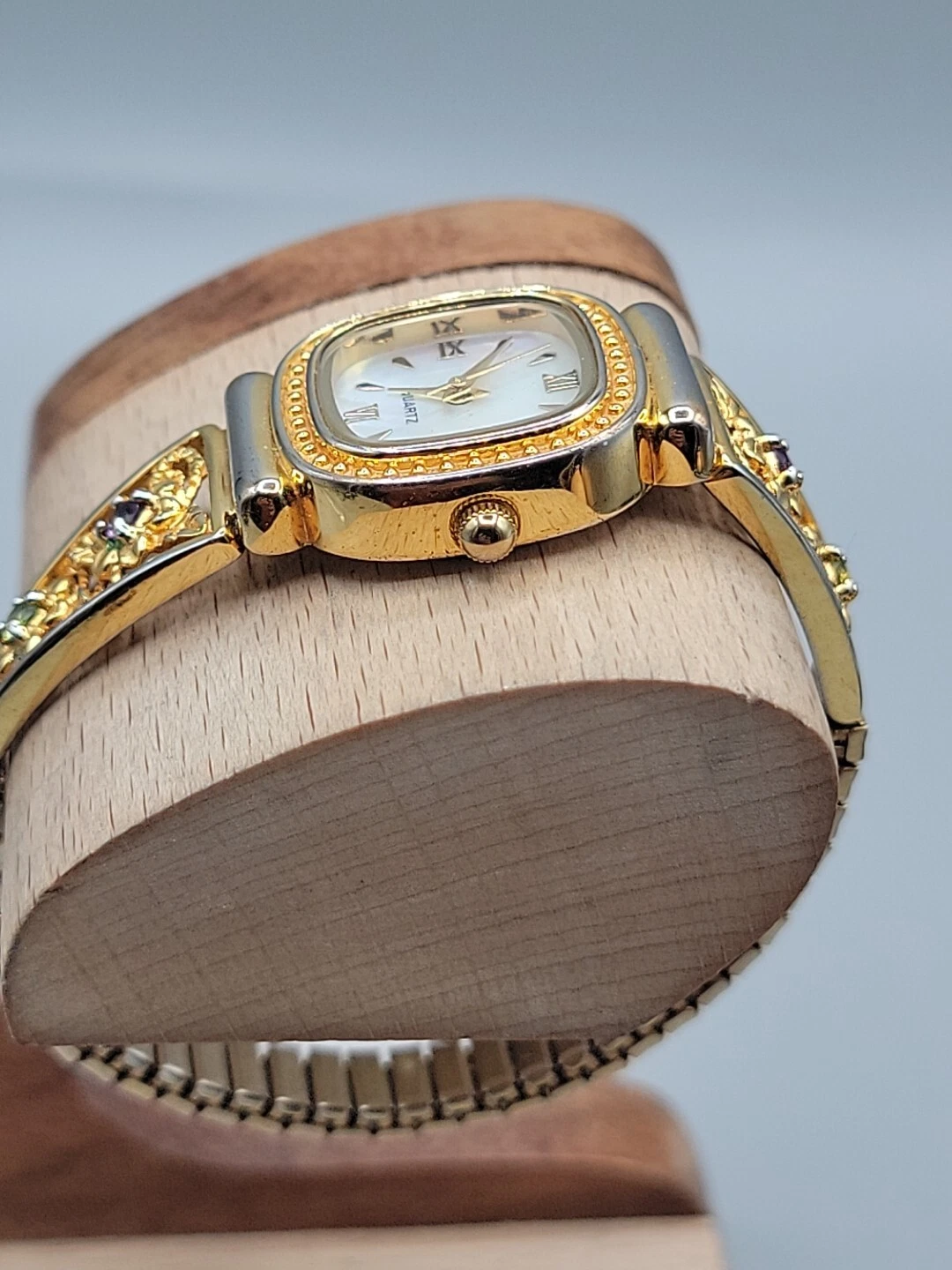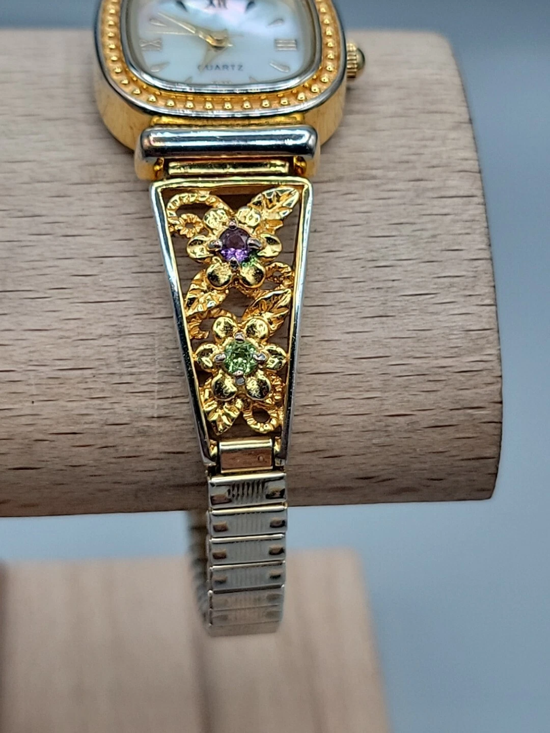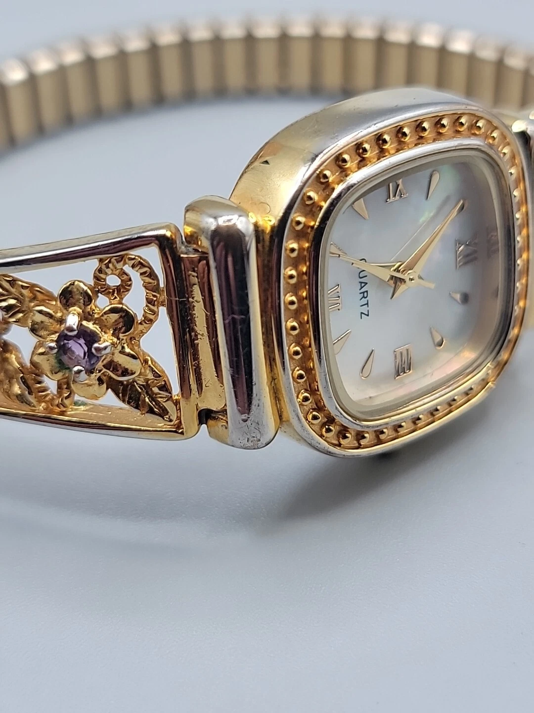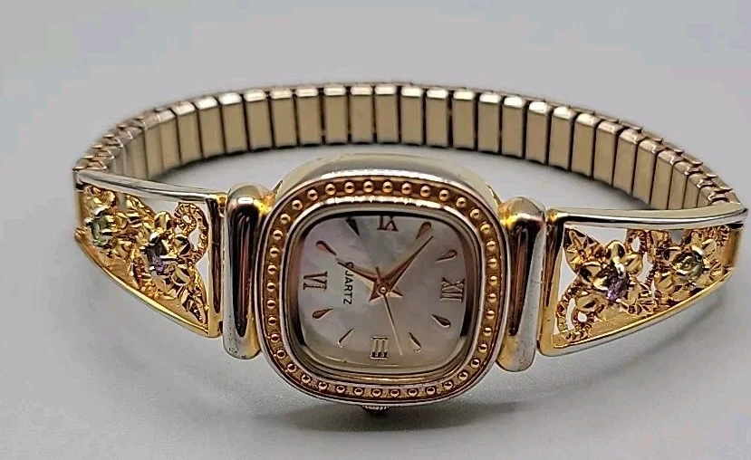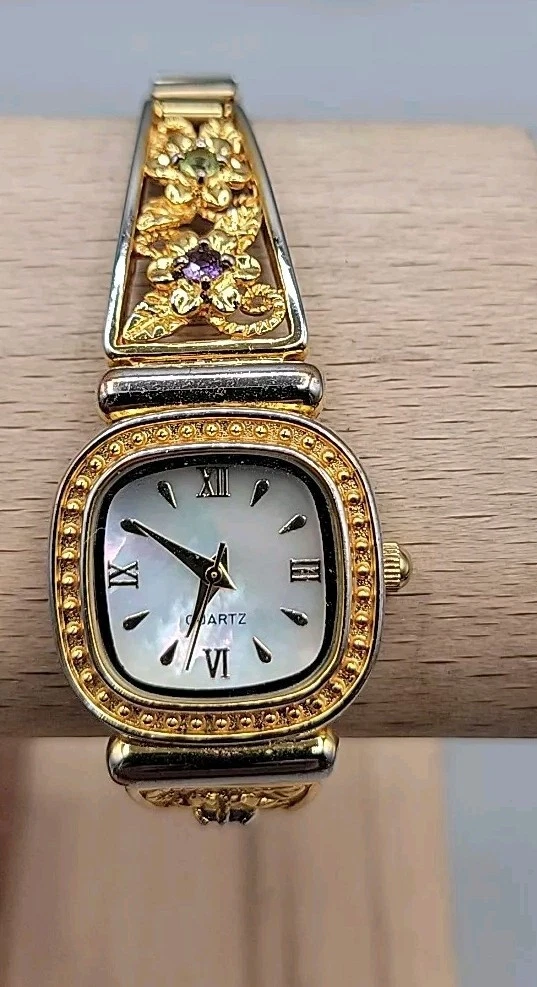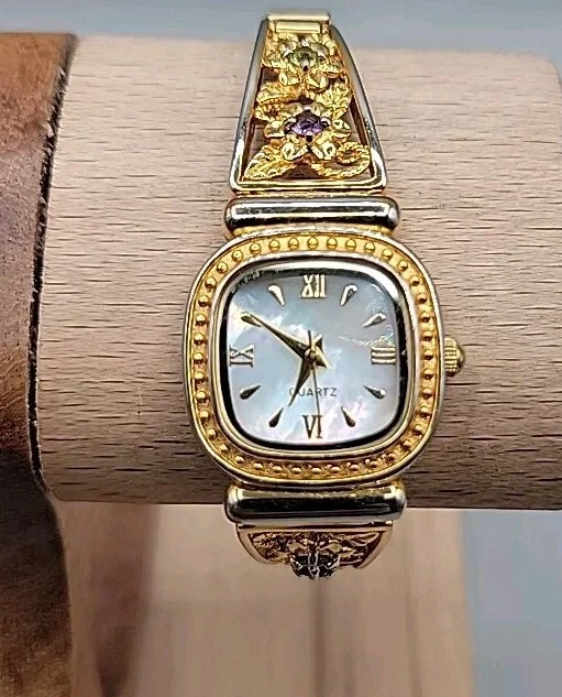 Danbury Mint Ladies Quartz Watch 23mm MOP Gold Plated Gemstone Accented 7"