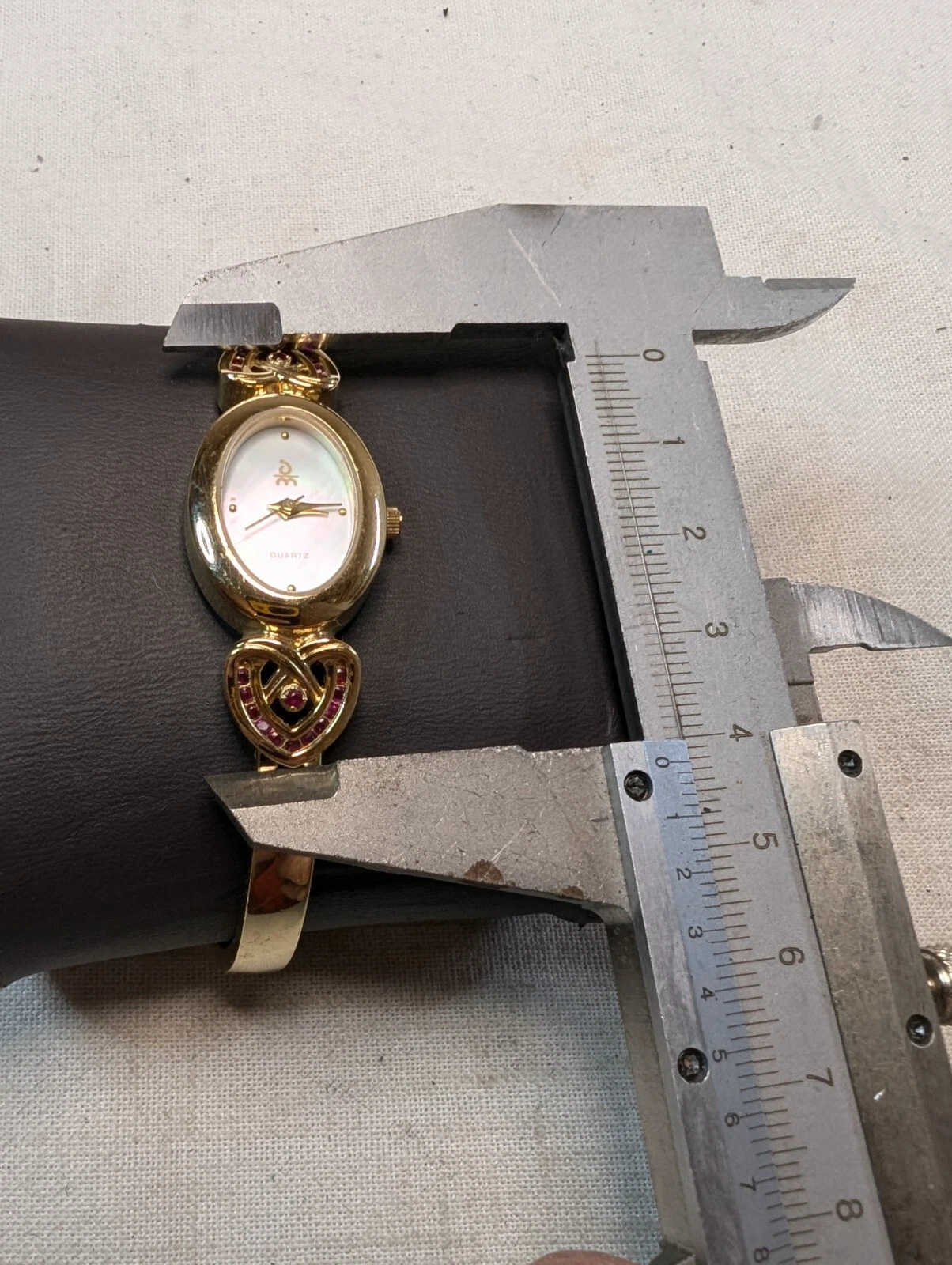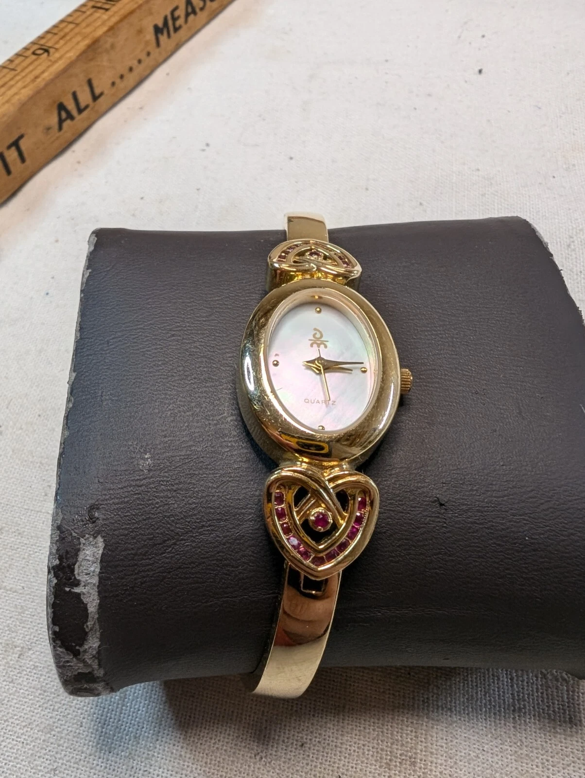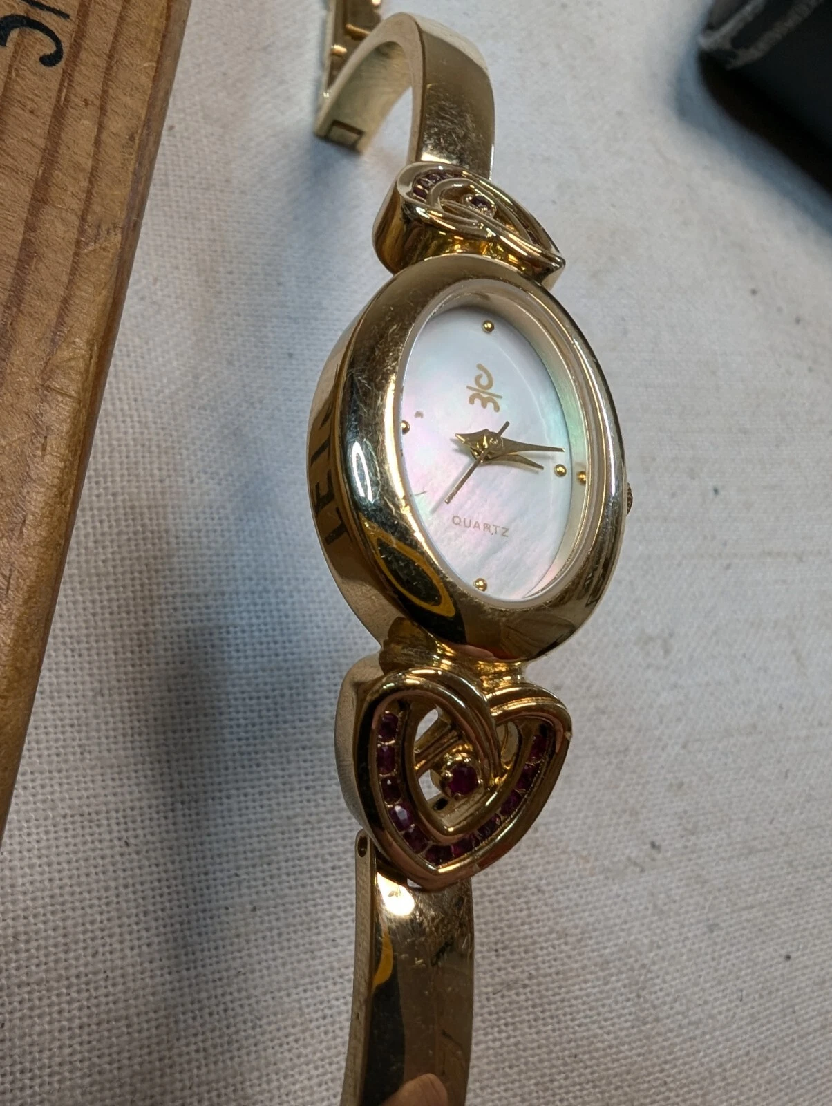 Danbury Mint Ladies Mother of Pearl and Rubies Heart Watch for Women - Fresh Bat