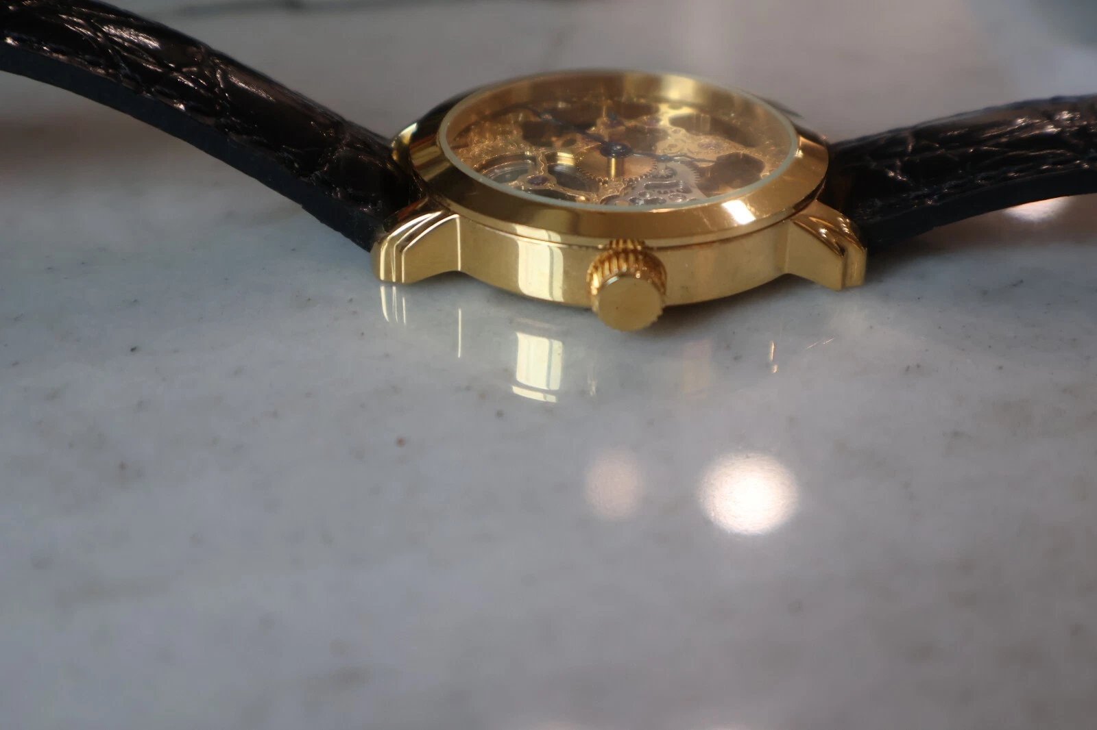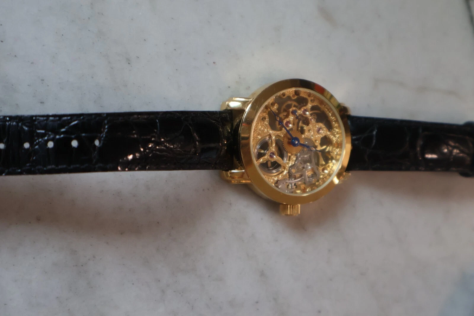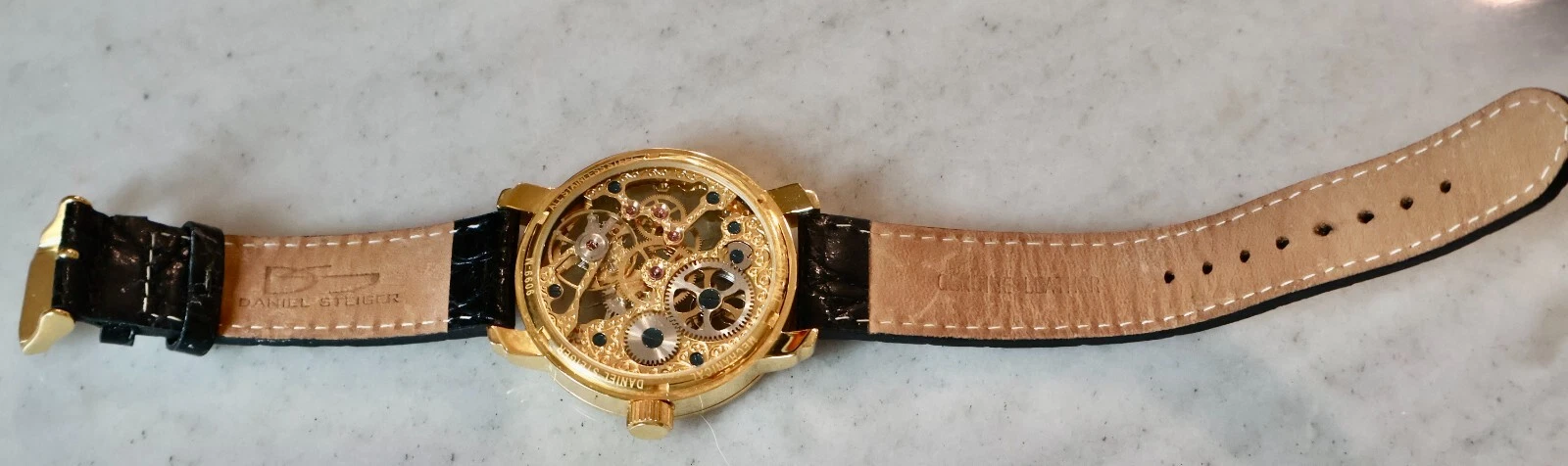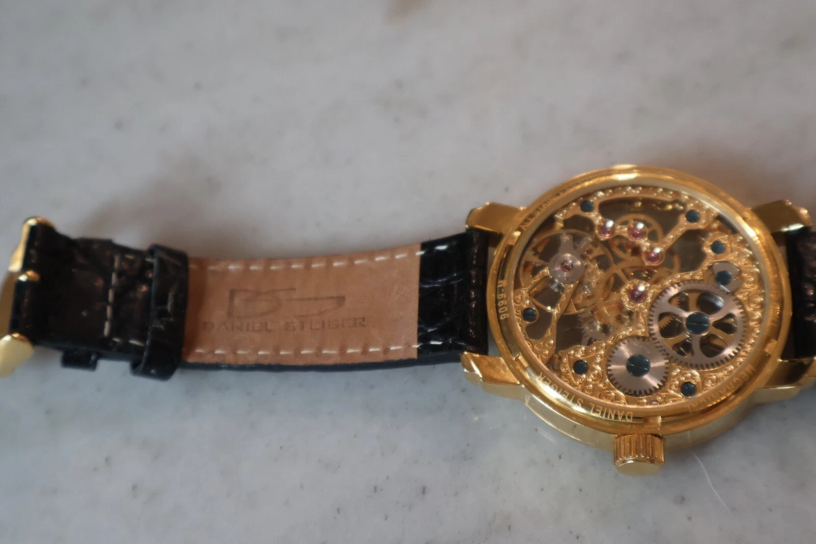 Daniel Steiger Men's Dress Watch Skeleton Gold Tone Black Leather