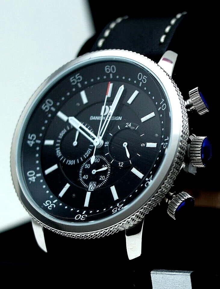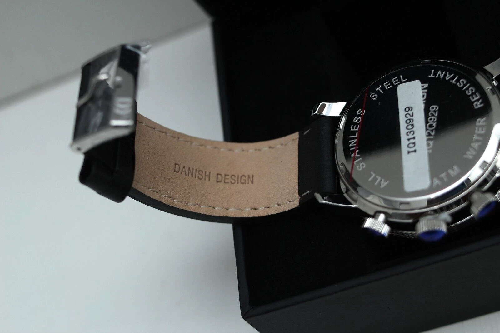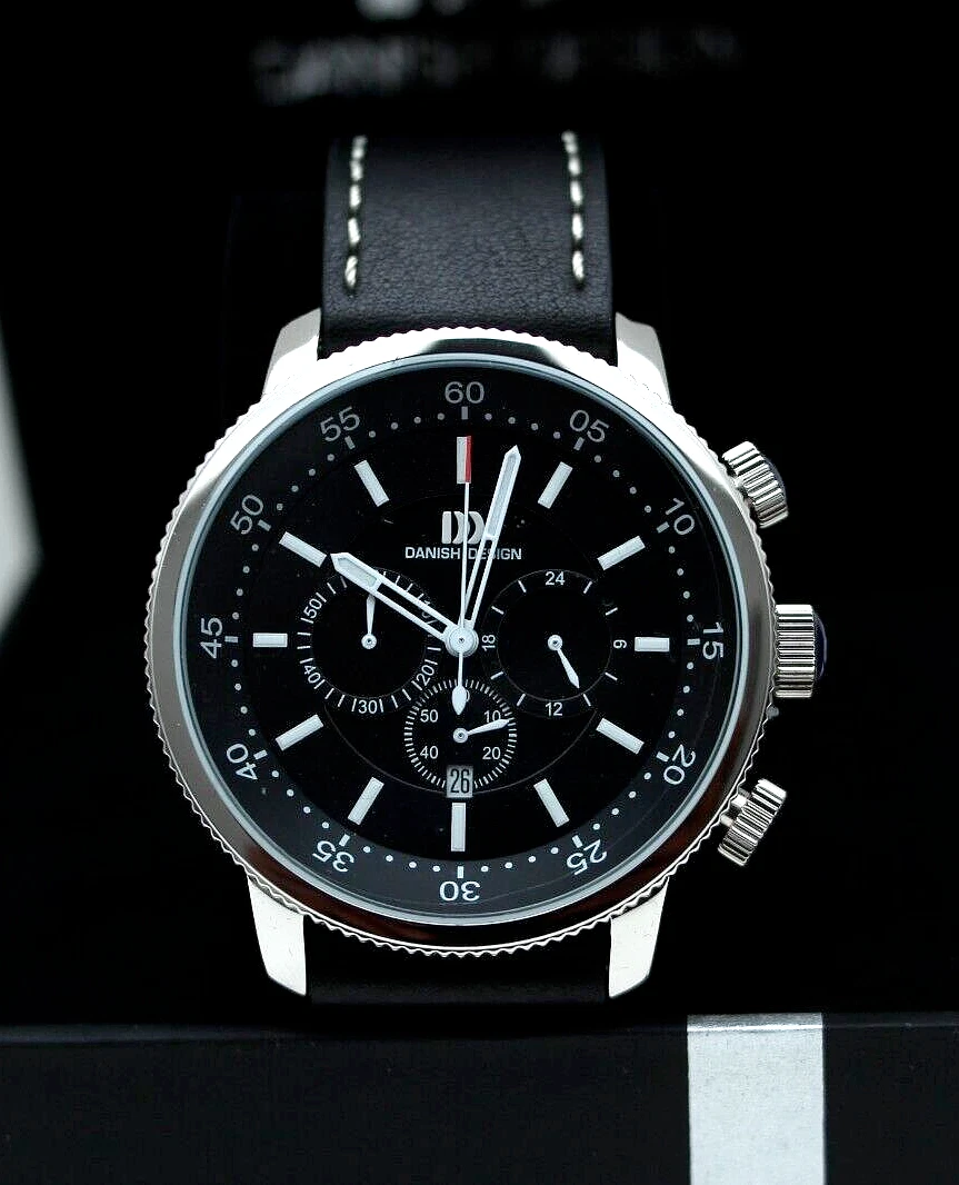 Danish Design Men's Quartz Watch Black Dial Chronograph Leather Strap DZ120102