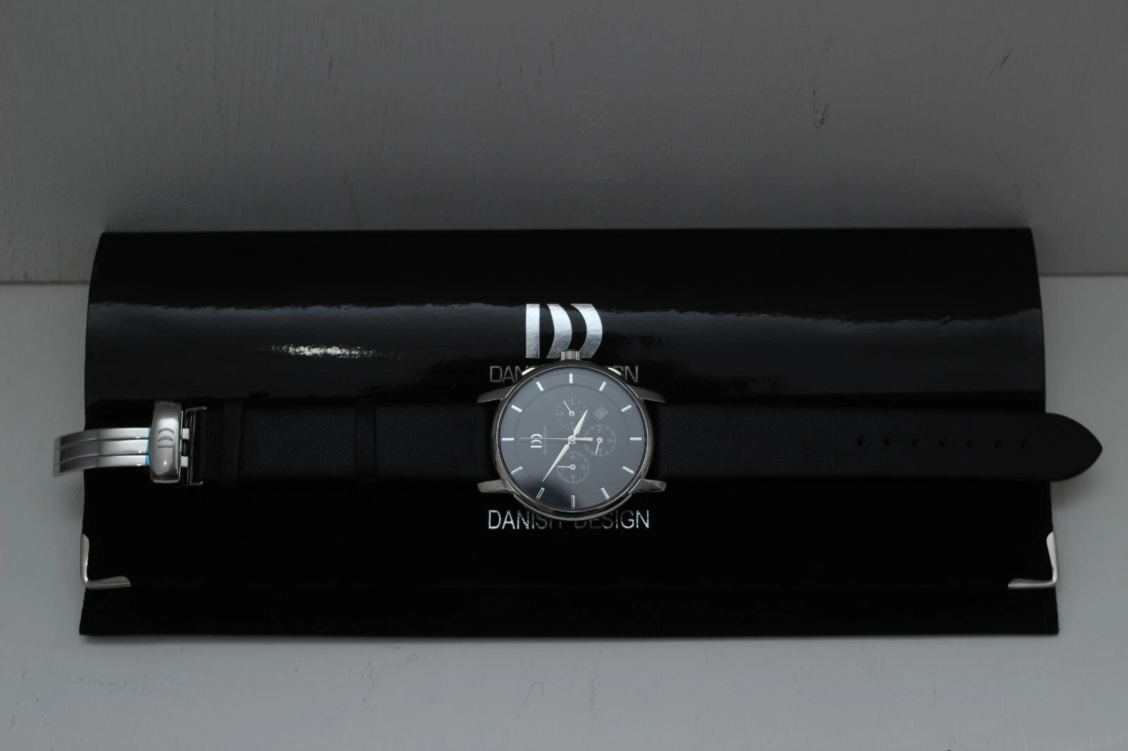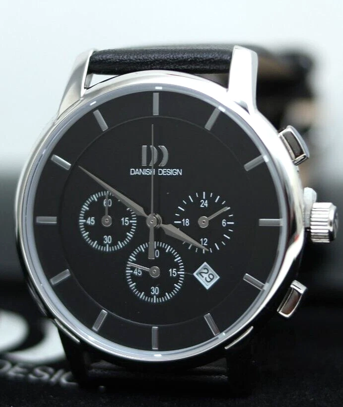 Danish Design Luxury Gents Black Leather Watch Chronograph 3314326 B0049MO13C