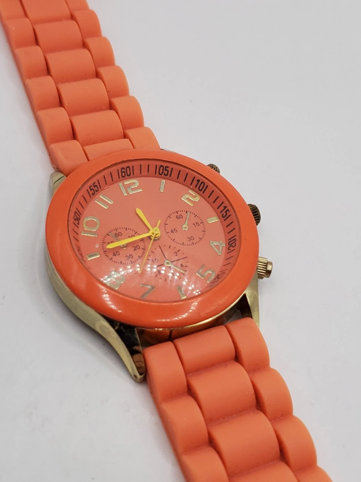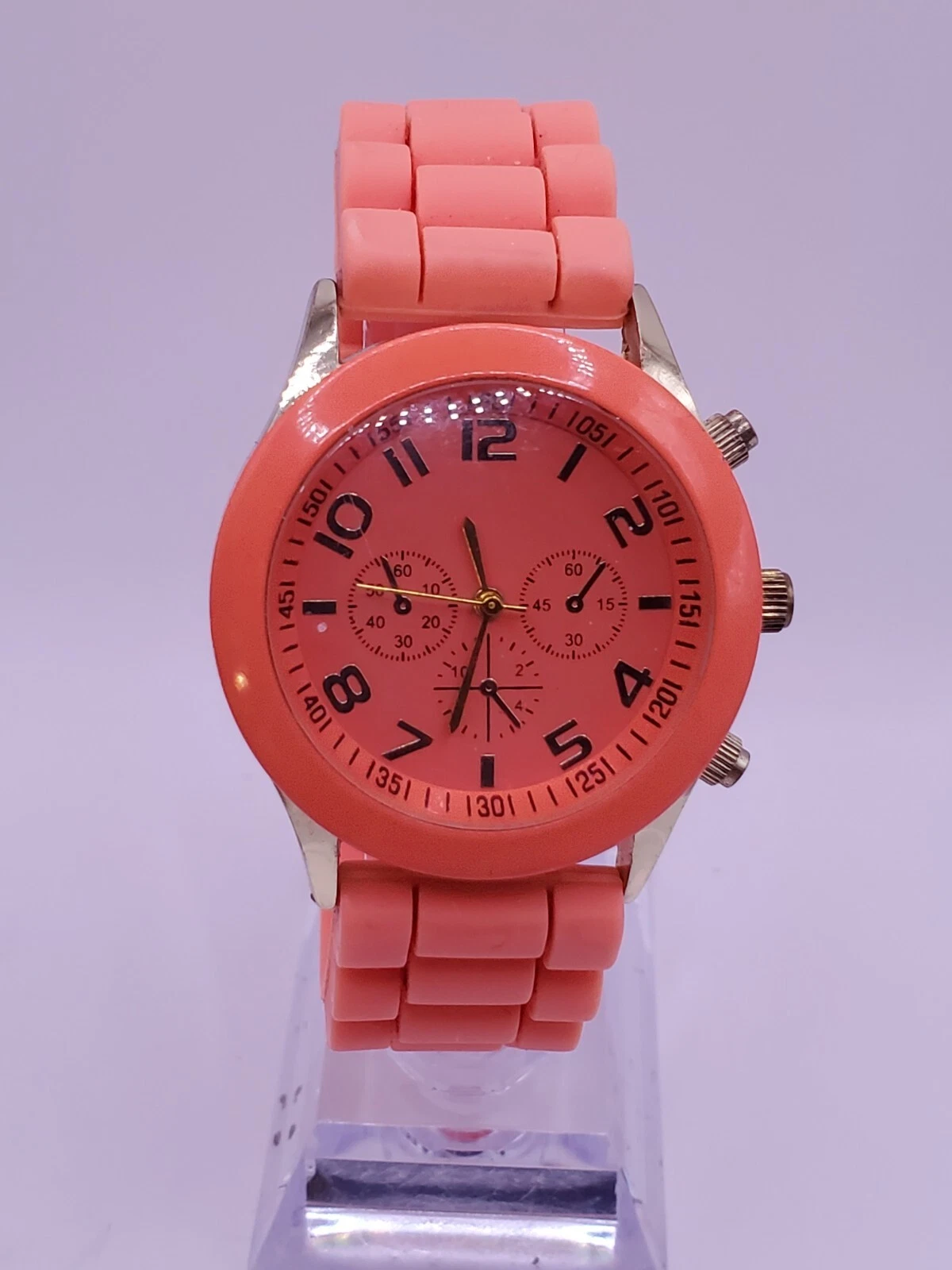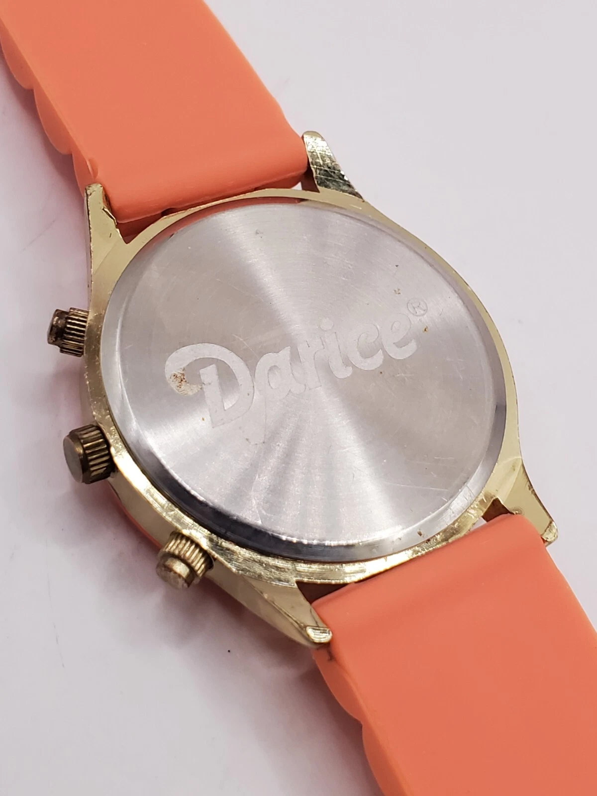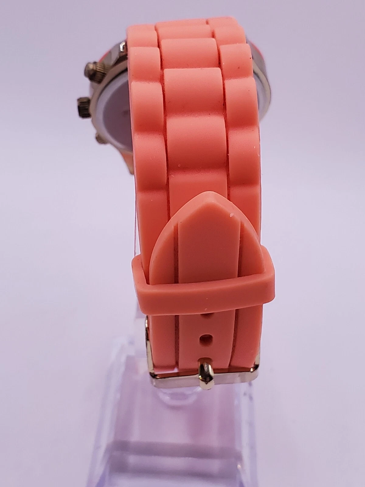 Darice Ladies Quartz Watch 37mm Round Gold Tone Coral Silicone Band