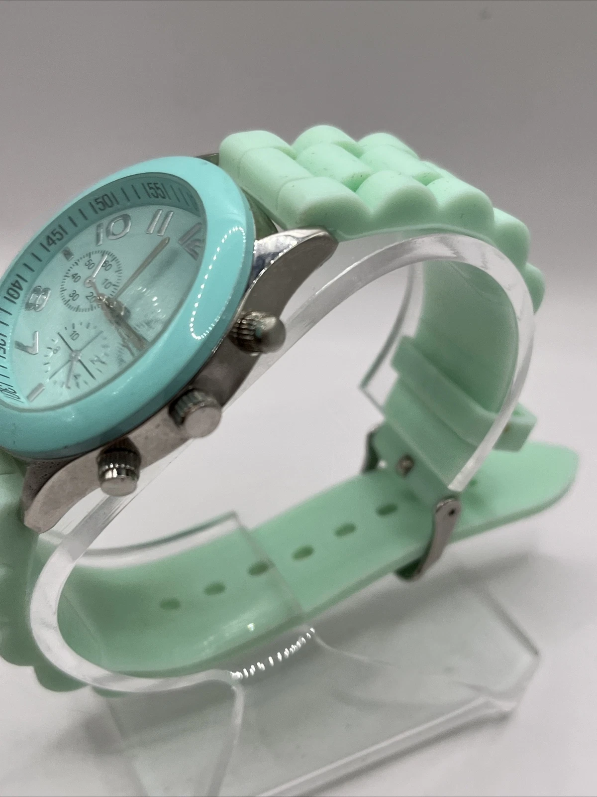 Darice Women's Mint Green & Silver Wrist Watch Silicone Band- New Battery