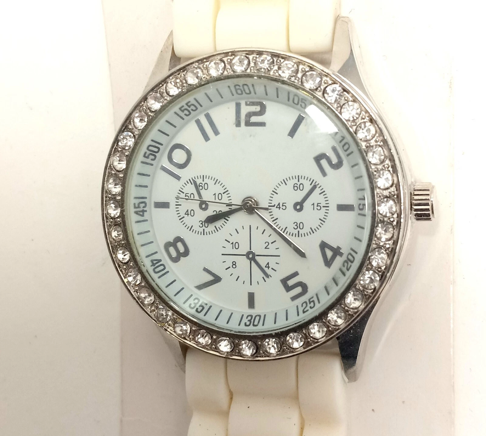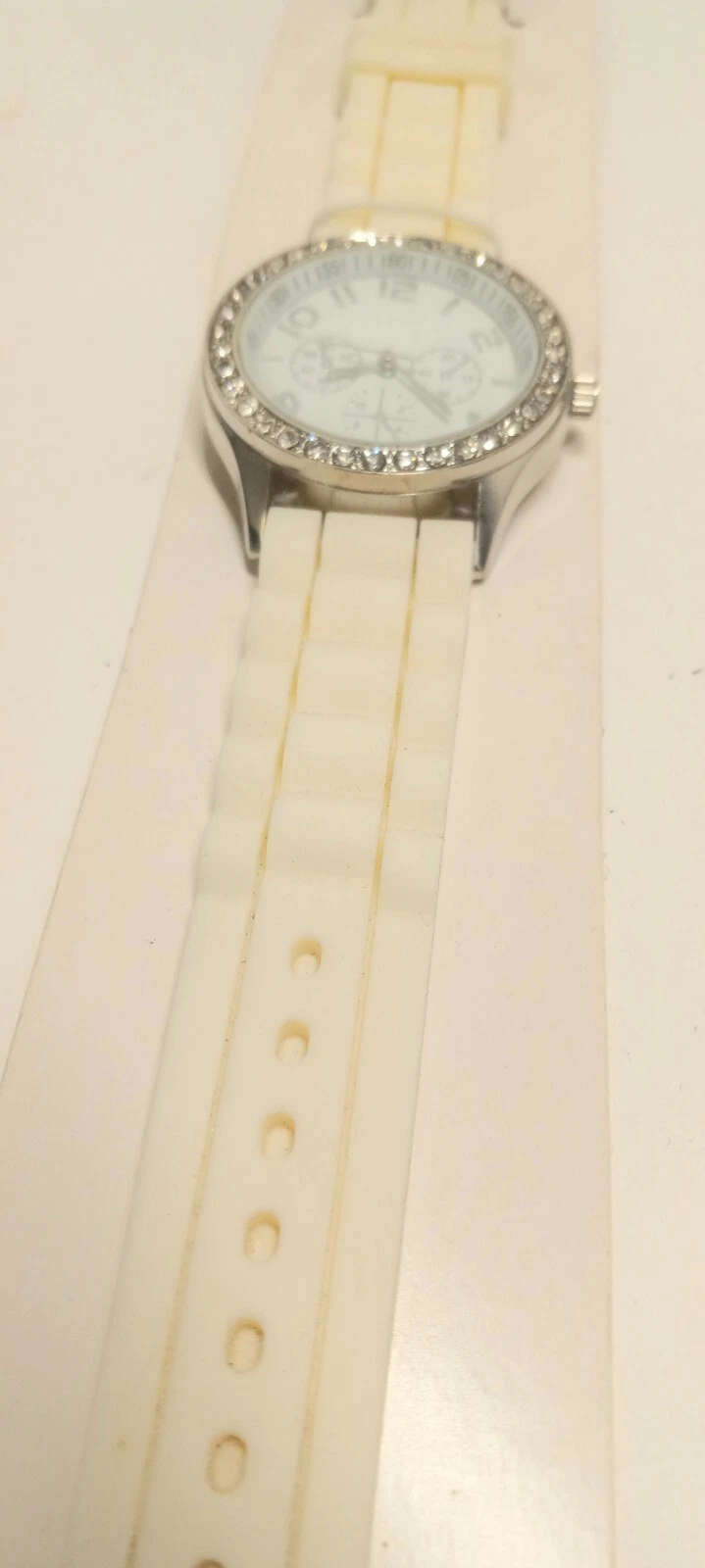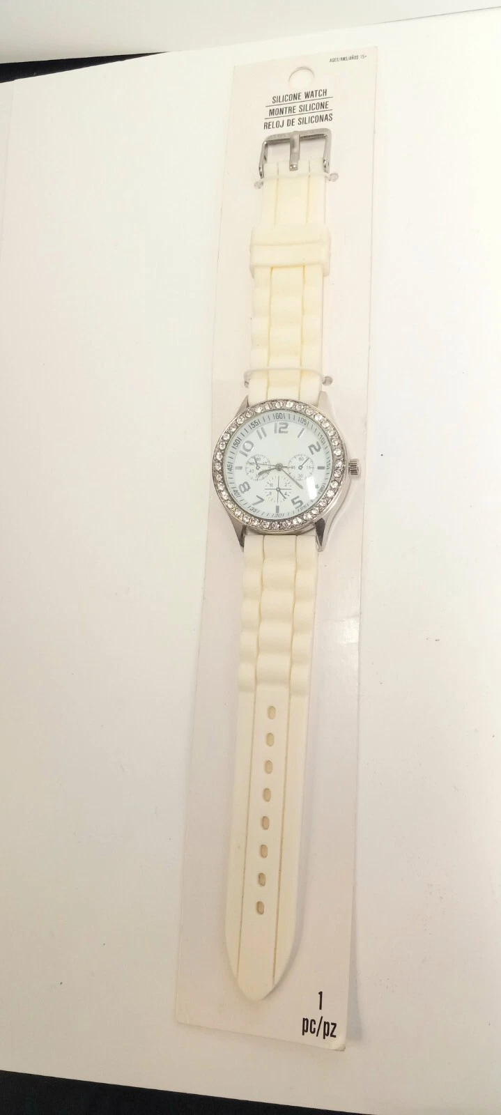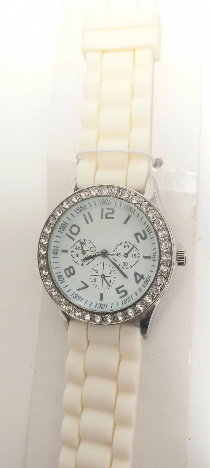 Darice Women's Watch Silver Tone Cryal Bezel Silicone Band Quartz Wristwatch