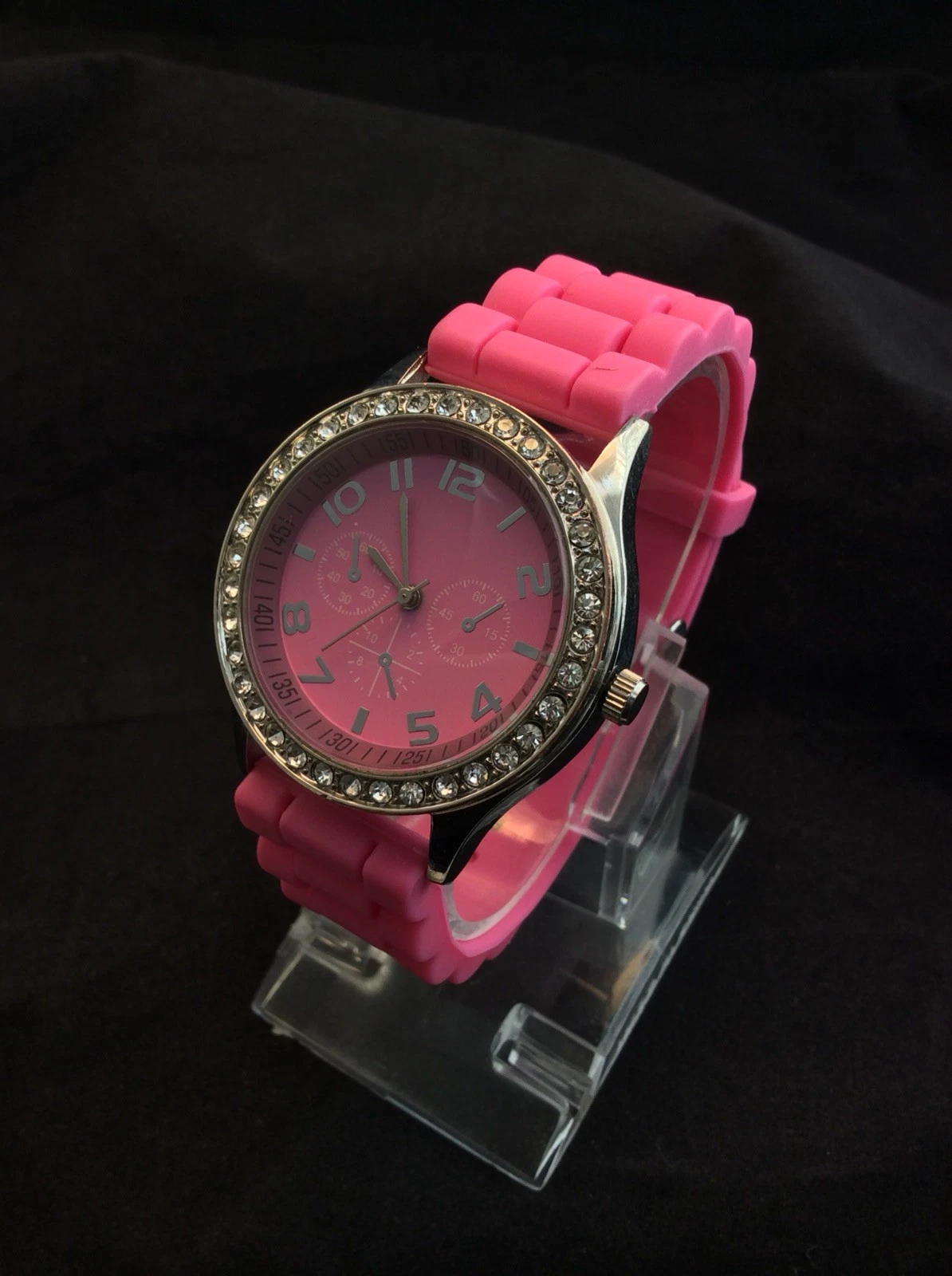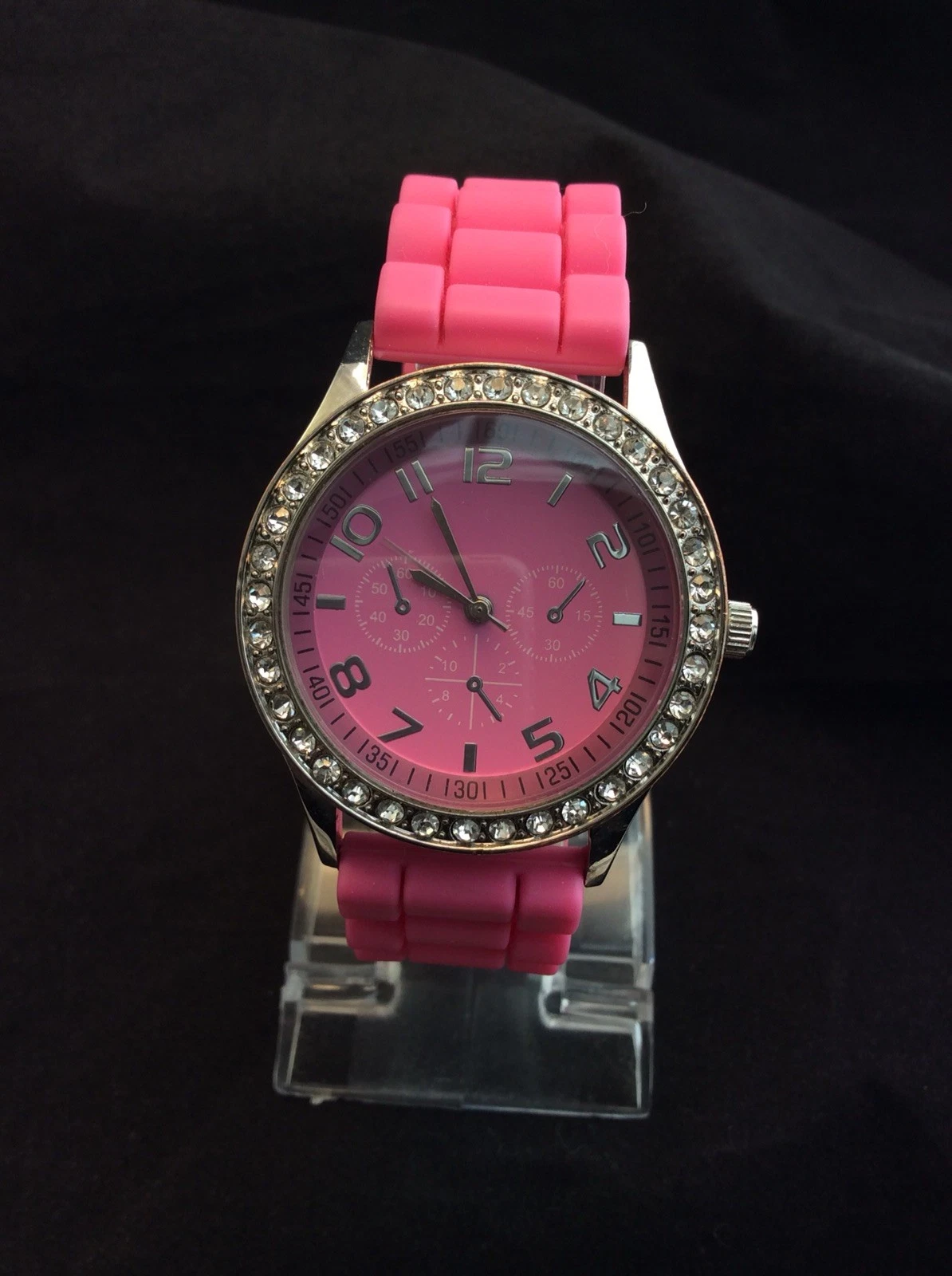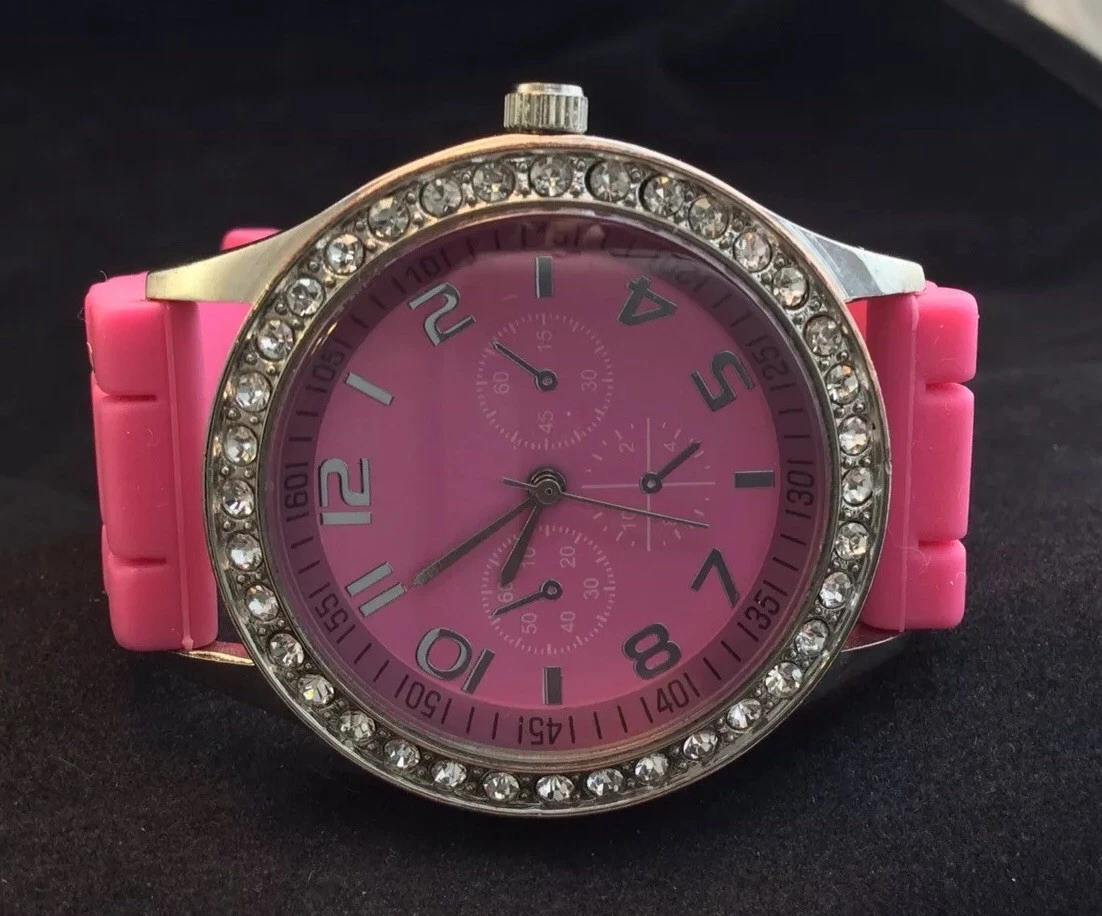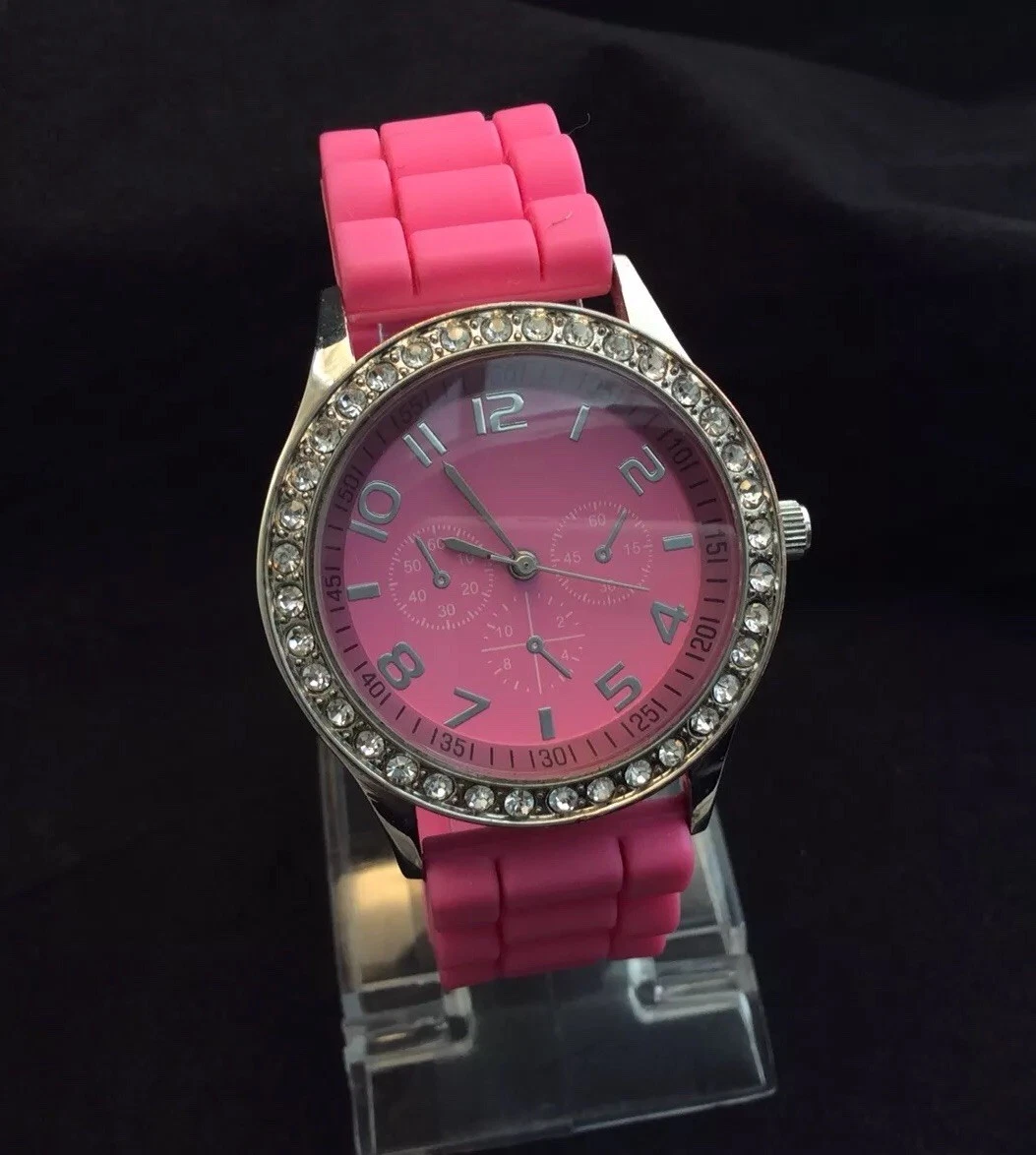 Woman's Darice Pink Chronograph Quartz Watch With Pink Silicon Band New Battery