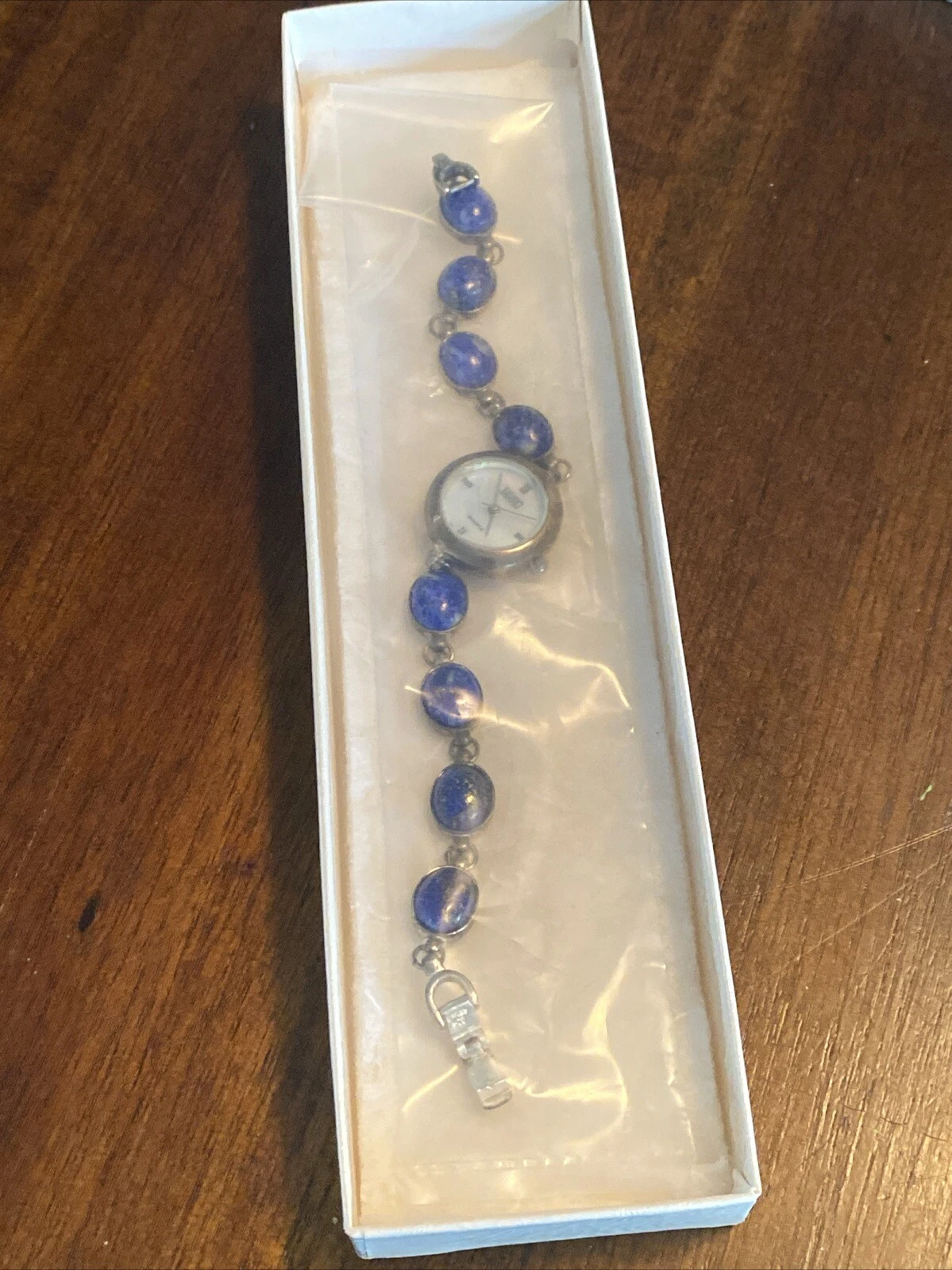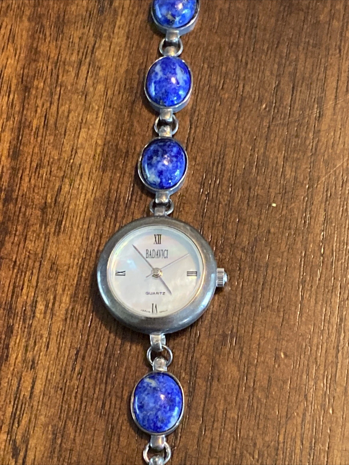 WTG Native American Sterling Silver 925 Mother Pearl Lapis Watch Needs Battery