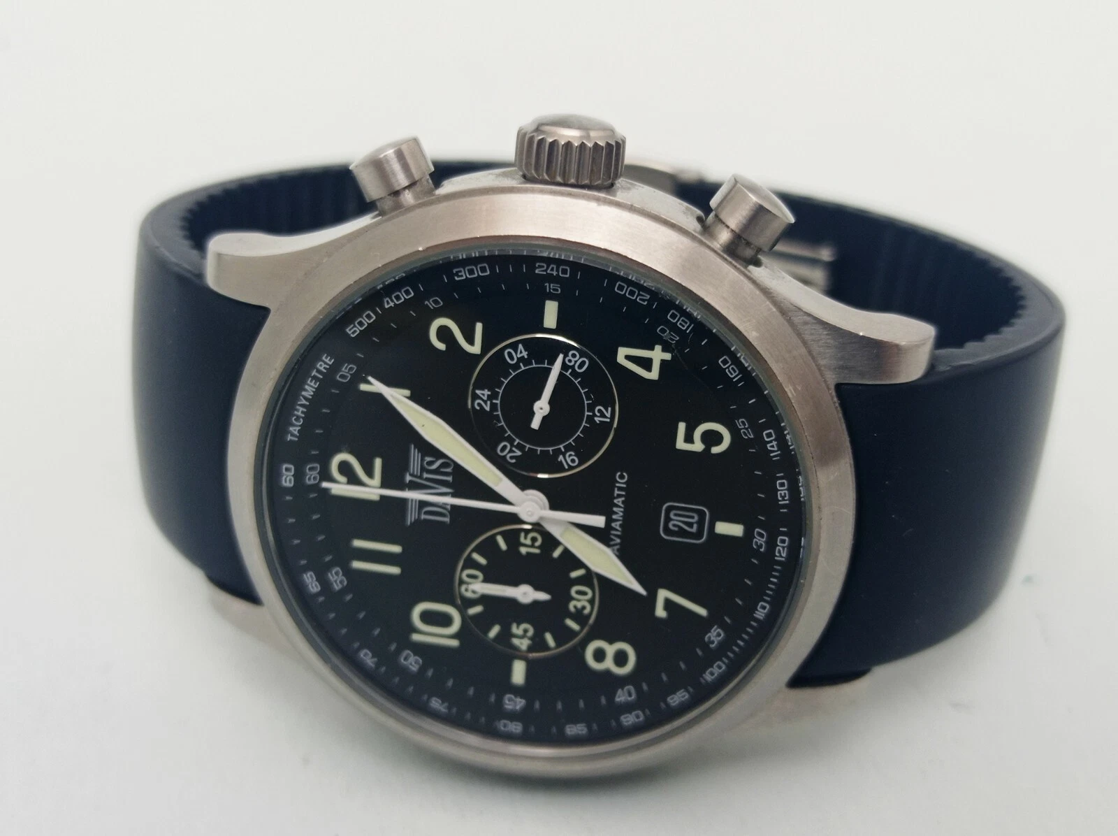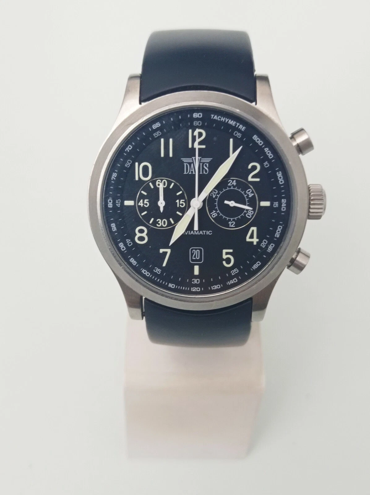 DAVIS Aviamatic 1020 Chronograph Quartz cal.OS21A Black Dial 48mm Excellent