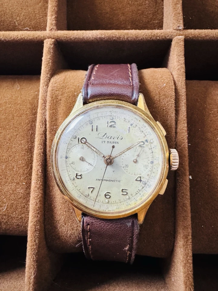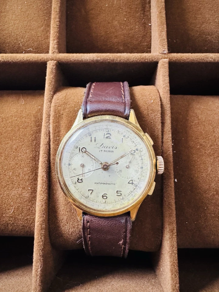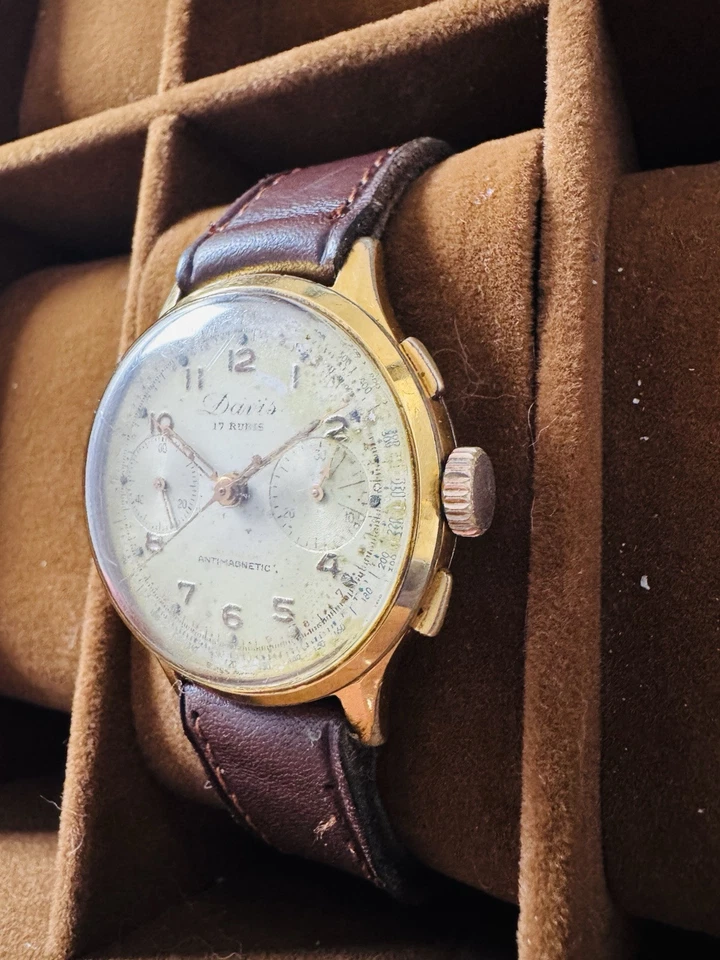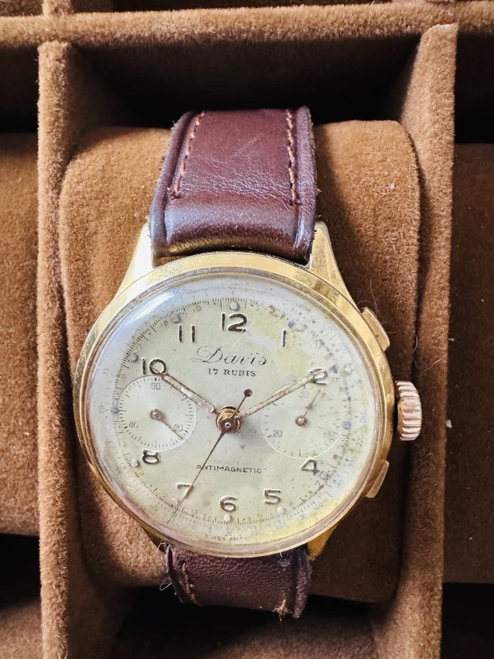 Excellent Davis 17 Rubis Chronograph Suisse Made Gents Watch WW2 Era Circa 1940s