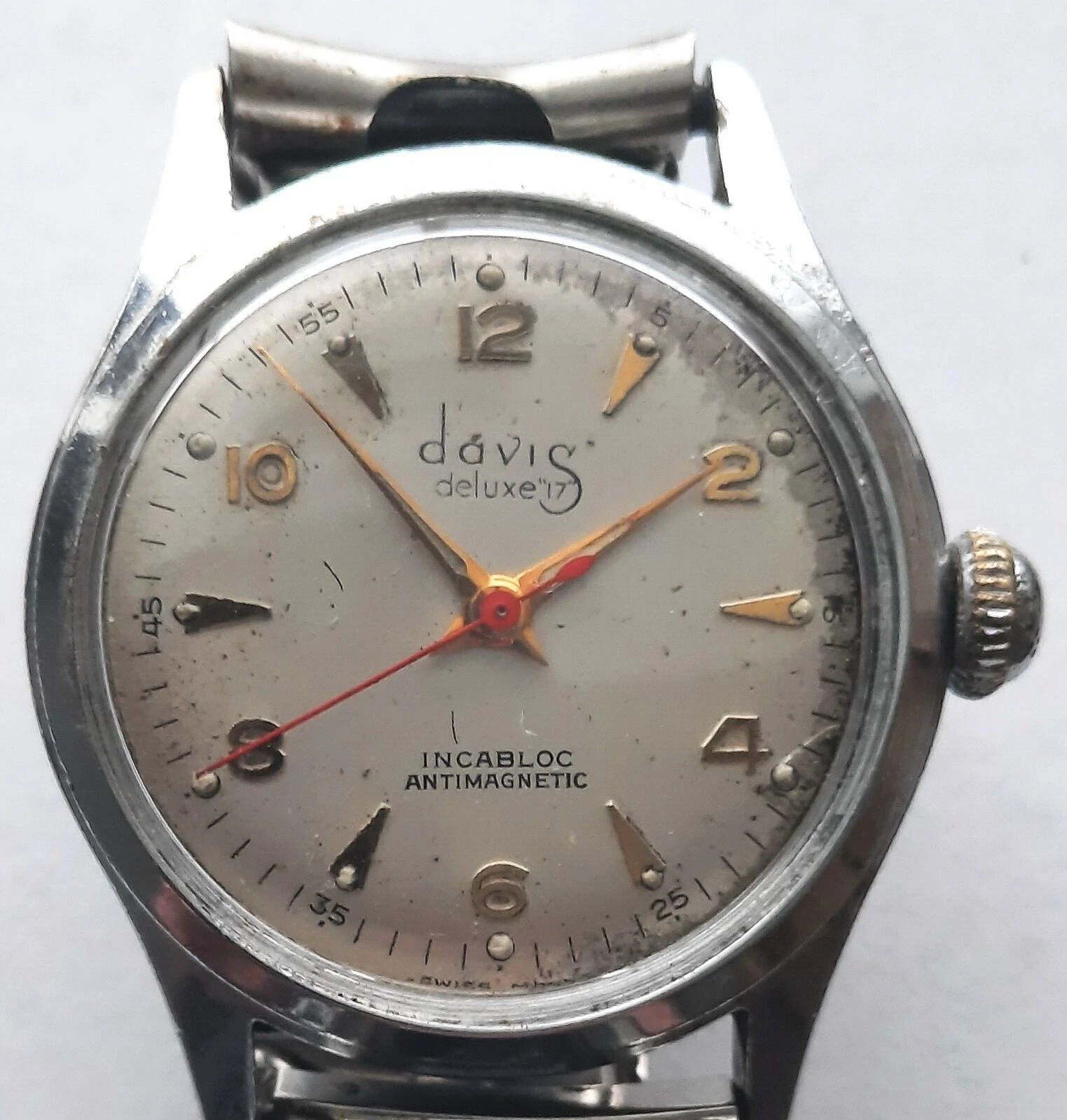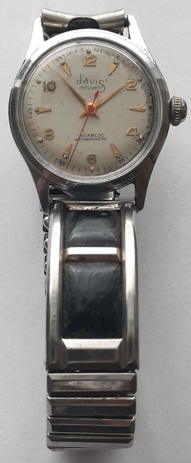 Vintage Men's Davis Deluxe 17 Jewel Watch w Incabloc Mvmt & Unique Flex Band FPO