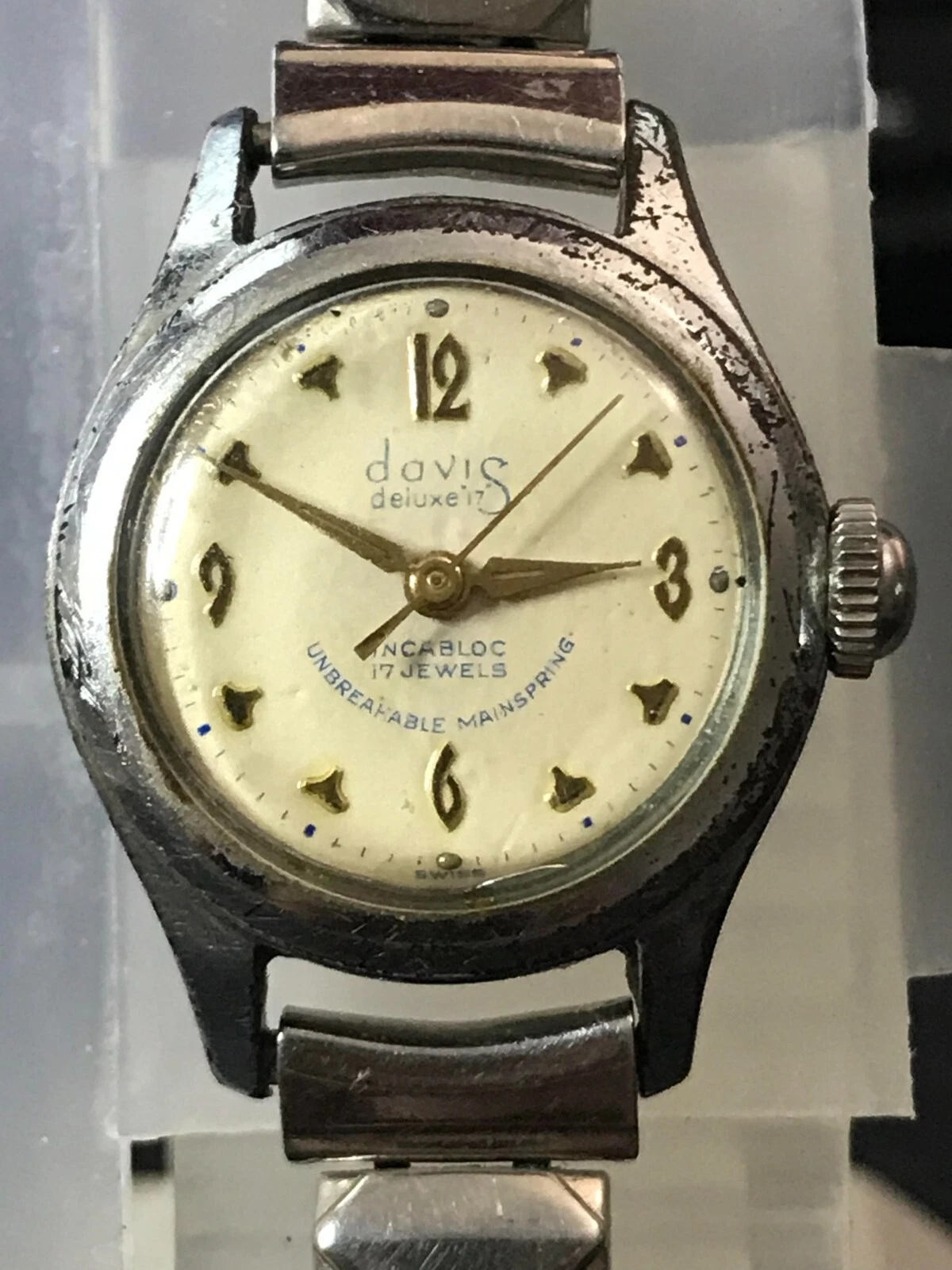 Davis Deluxe 17 Jewel Watch Incabloc Mvmt & Unique Flex Band, Not Run (Lot2293)